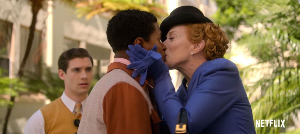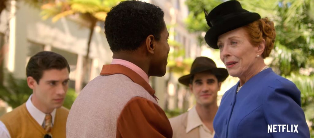 Un altro personaggio principale della serie è lo sceneggiatore Archie Coleman interpretato da Jeremy Pope. Un punto interessante arriva presto quando il personaggio di Holland Taylor, Ellen Kincaid, viene presentato a lui, sembra scioccata e dice: “Sei di colore. Lo adoro,” prima di dargli un grande bacio sulle labbra. Tuttavia, non tutto è perfetto in questa realtà alternativa, poiché le cose prendono una piega quando una croce infuocata viene mostrata nel giardino davanti alla casa di Camille e Raymond. Archie viene anche mostrato mentre tiene la mano di un uomo sul tappeto rosso prima di urlare: “F*** questi bianchi al potere! Non giocano secondo le regole, perché dovremmo farlo noi?”