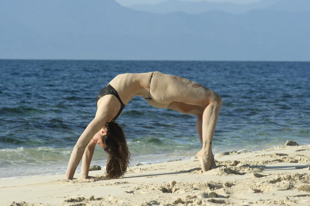Perché toglierlo se poi tanto copri i tuoi seni con le mani? Inoltre quella foto di contorsione è inquietante, sembra appartenere a un film horror.