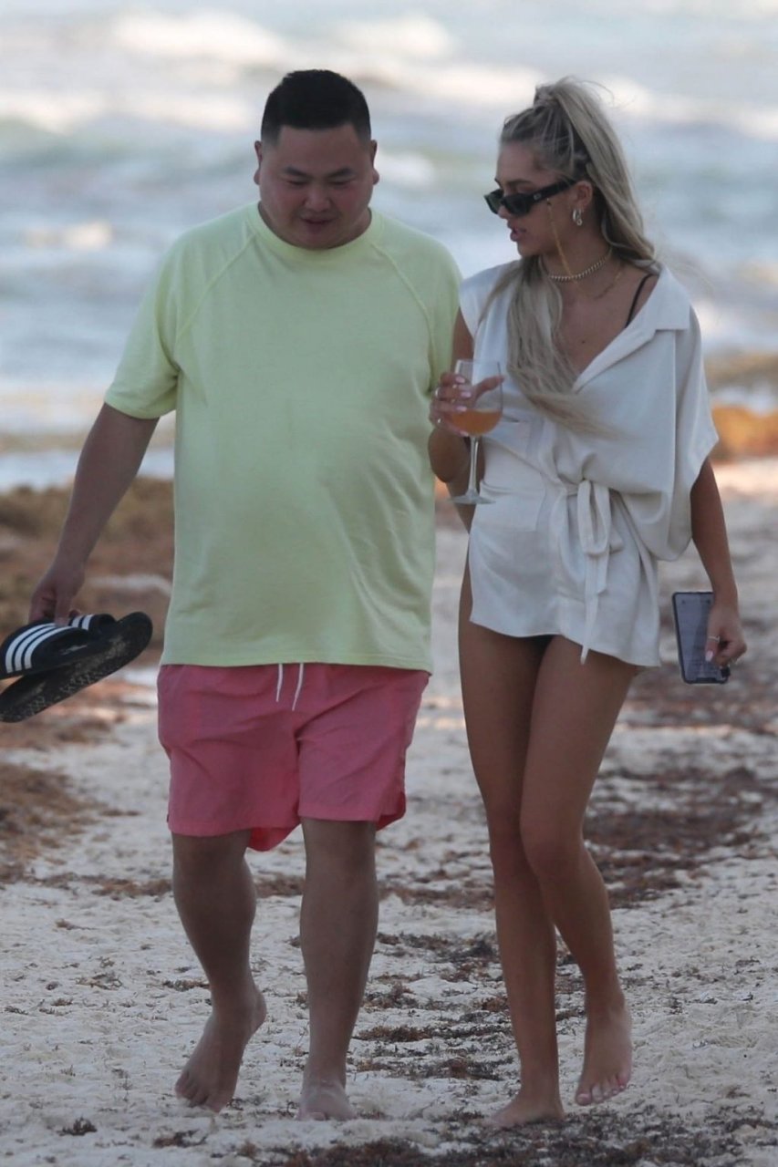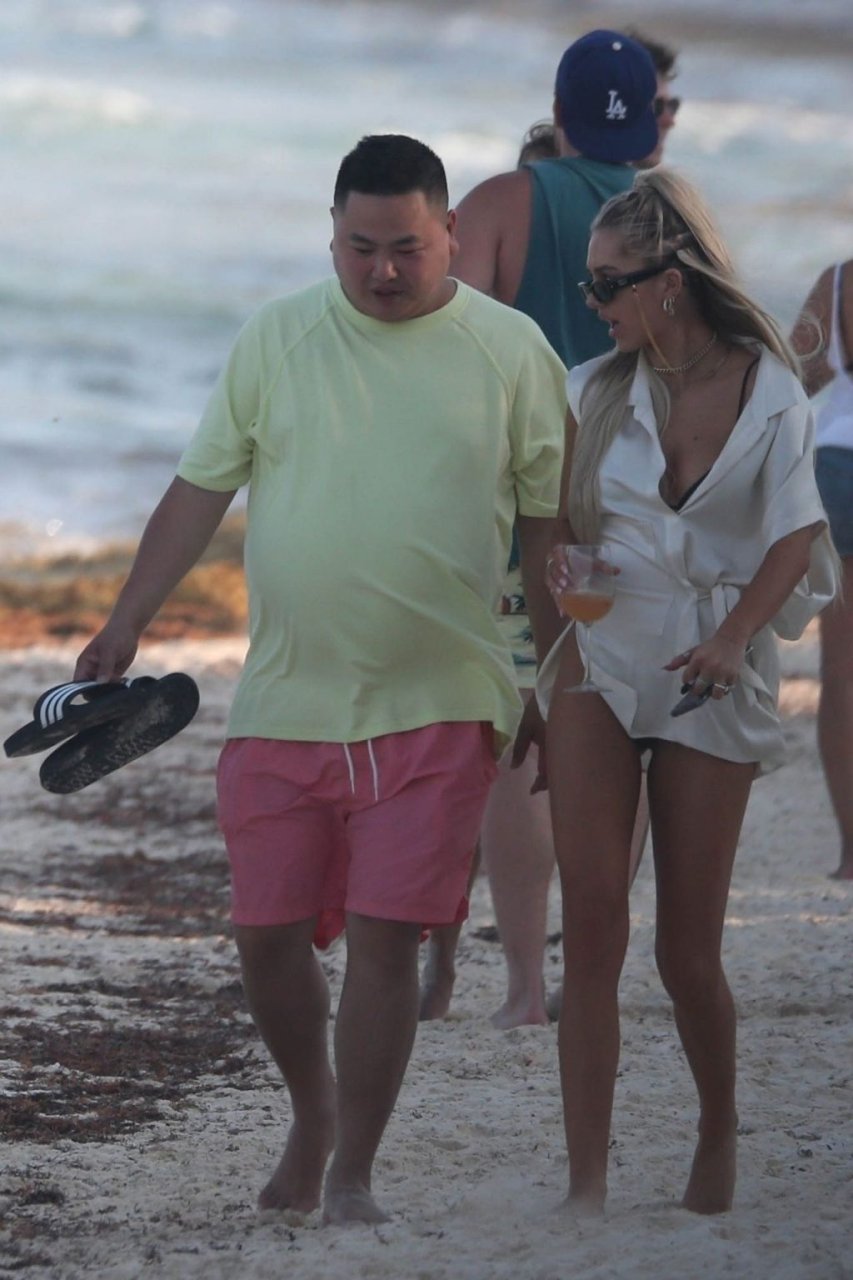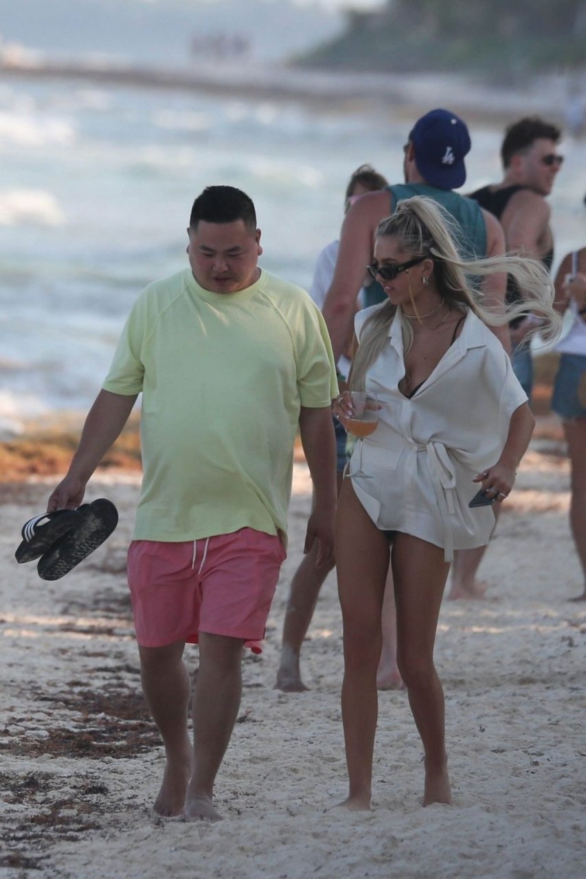 Delilah Belle e un’amica sulla strada per una festa sulla spiaggia a Tulum, 28/04/2019. Le due fanno il pregame prima della grande partita.