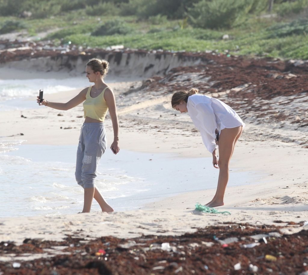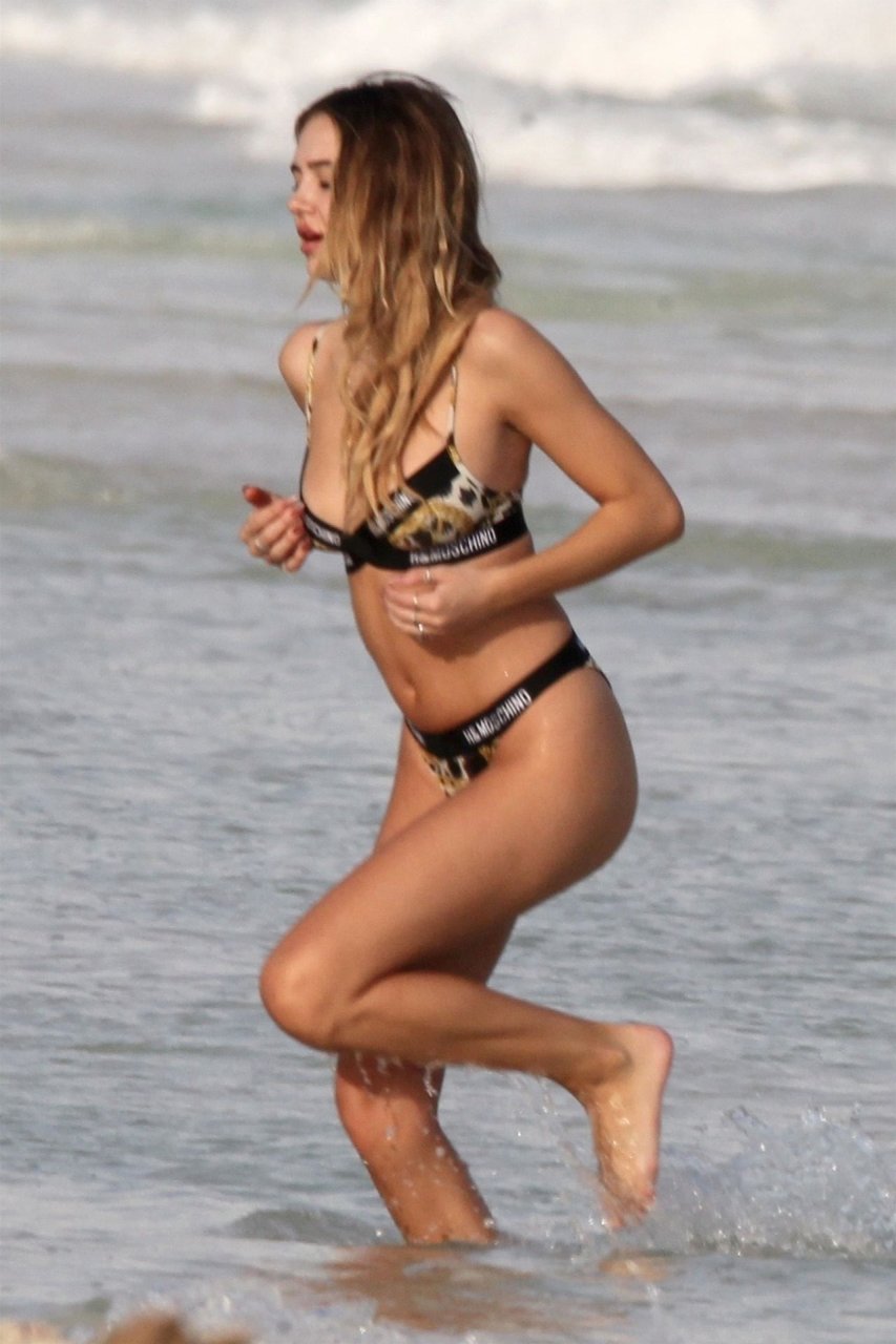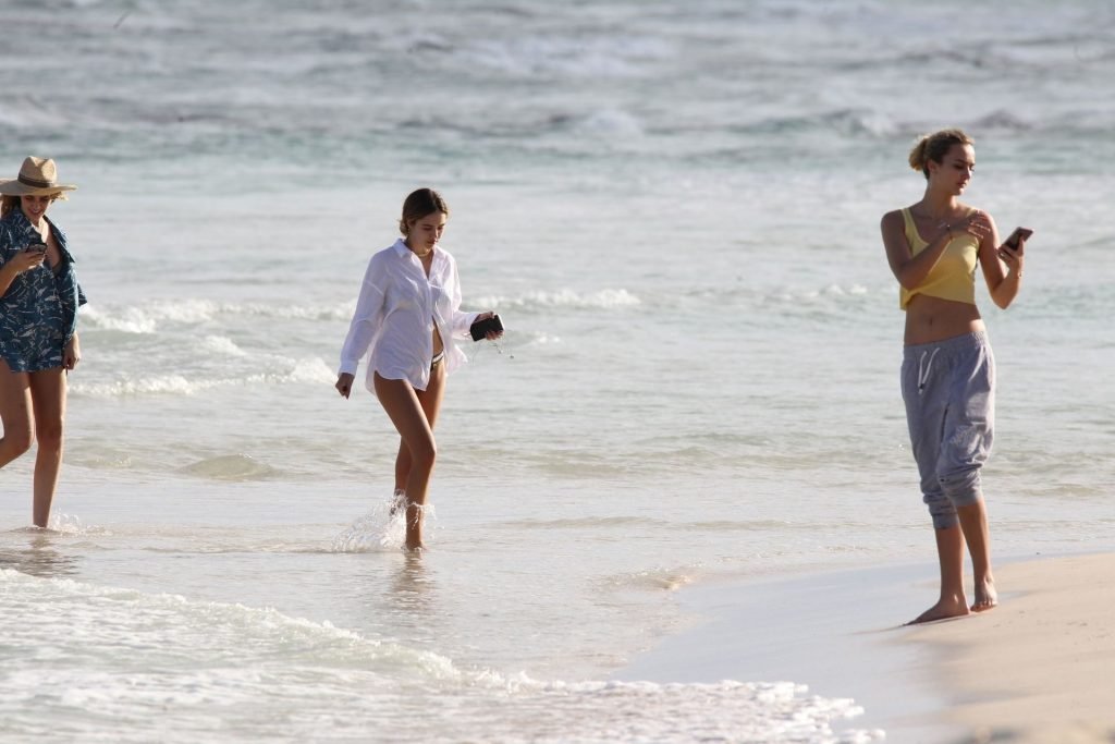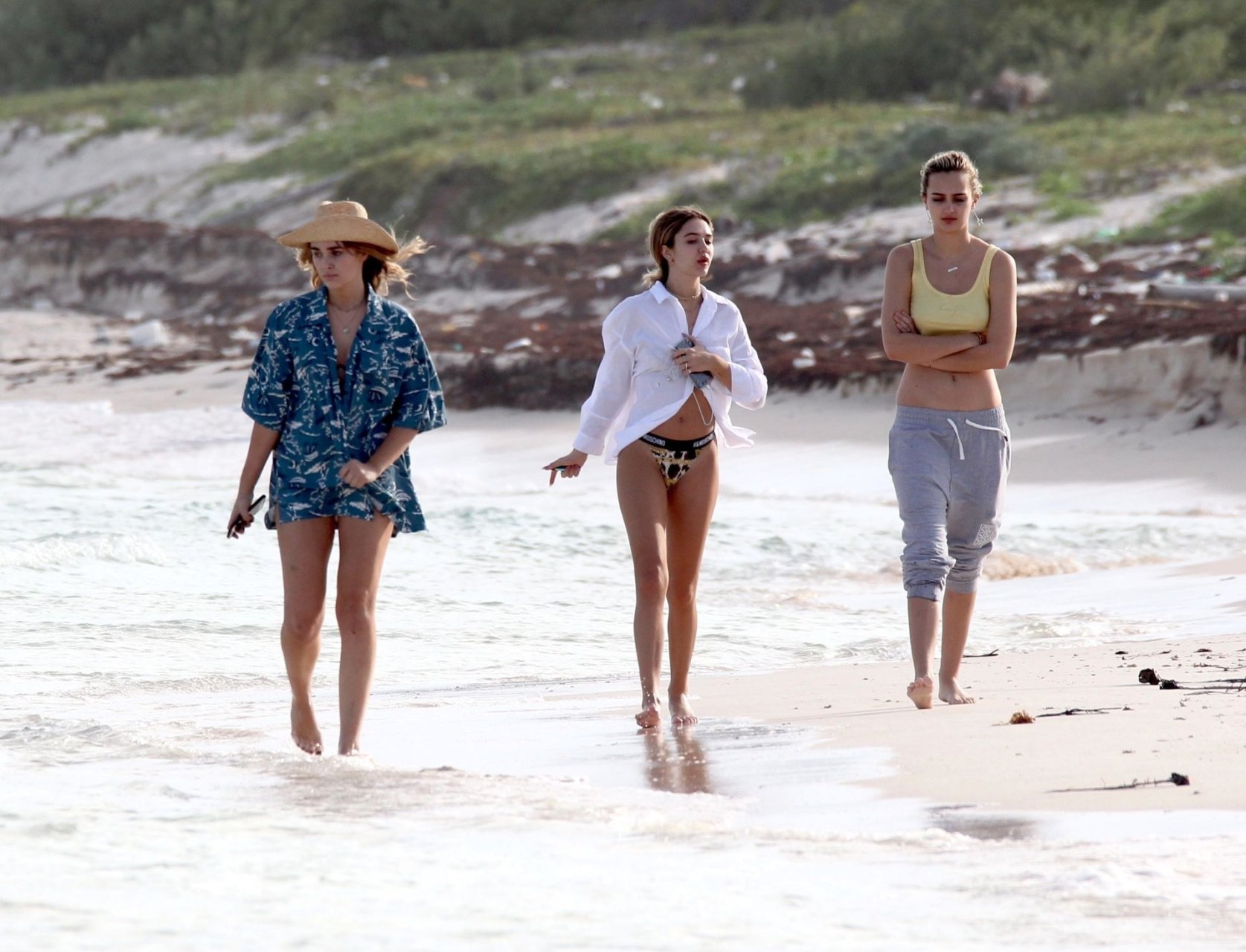 Model Delilah Belle Hamlin (20) è apparsa splendida mentre indossava un bikini leopardato H&M x Moschino e mostrava la sua figura impeccabile sulla spiaggia con un gruppo di amici a Tulum, Messico, 01/10/2019.