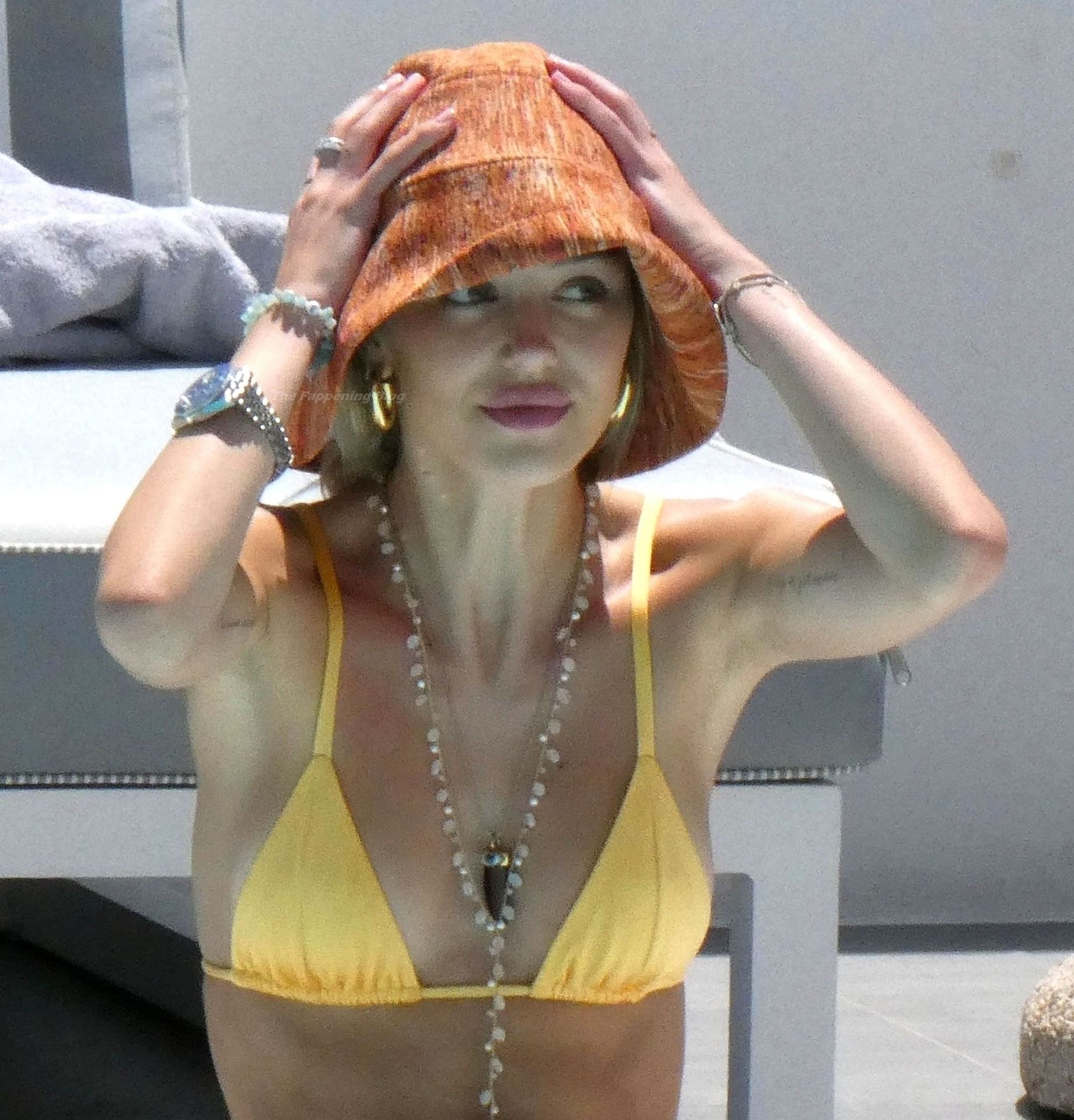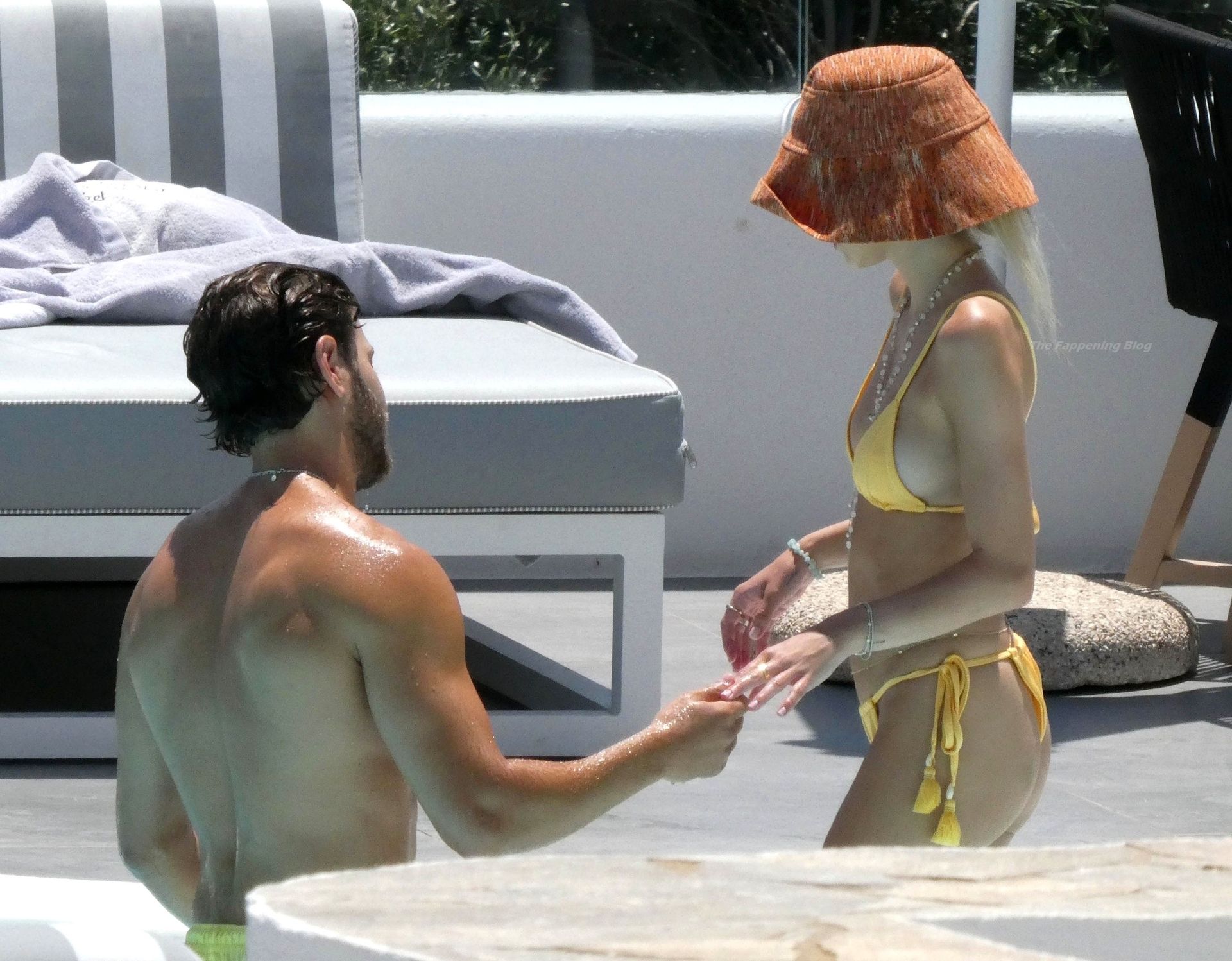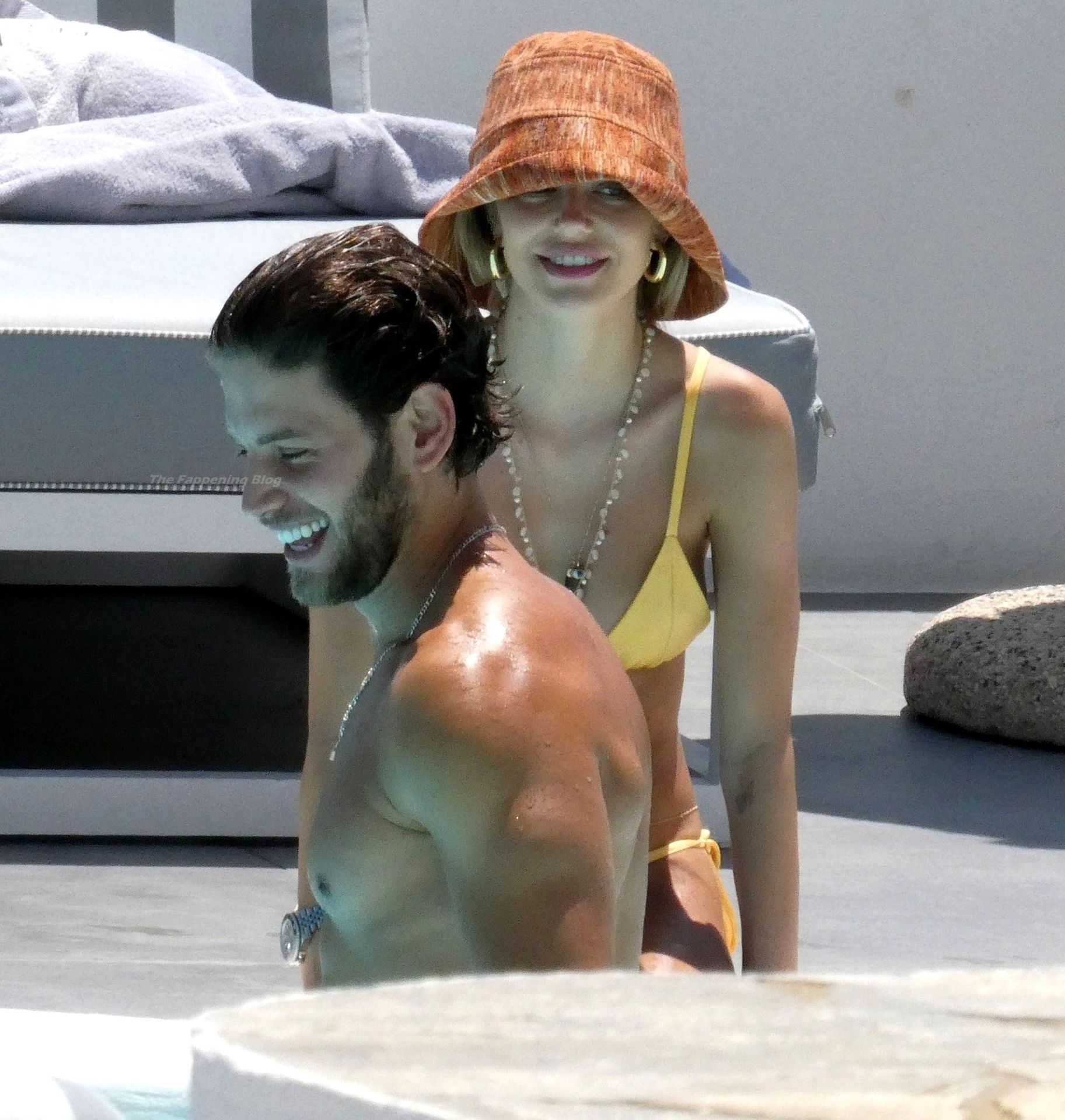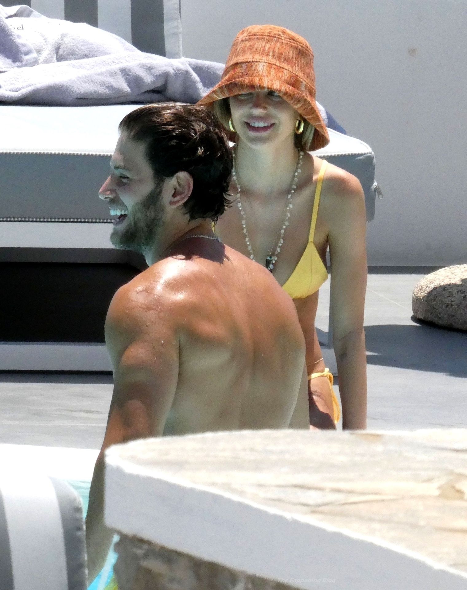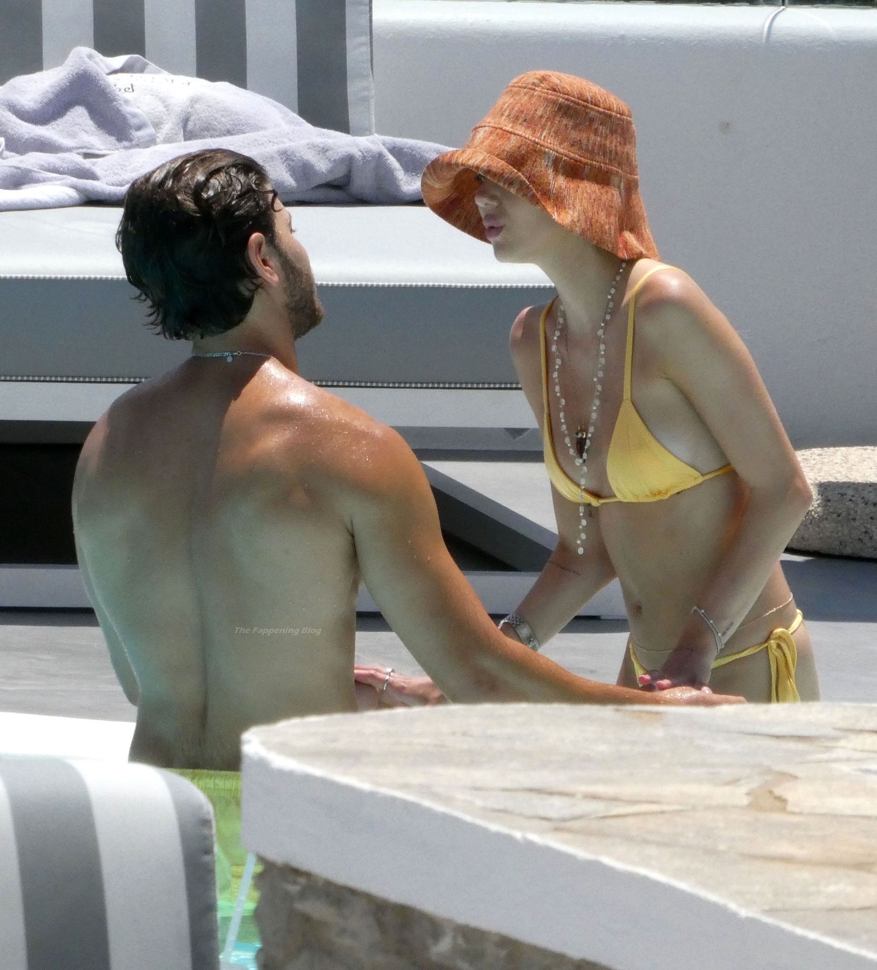Baciandosi a bordo piscina con una dimostrazione affettuosa e mostrando i loro fisici da spiaggia, Delilah Belle è stata vista indossare un piccolo bikini giallo succinto ed Eyal senza maglietta mentre si mostrava un po’ affettuoso con Delilah.