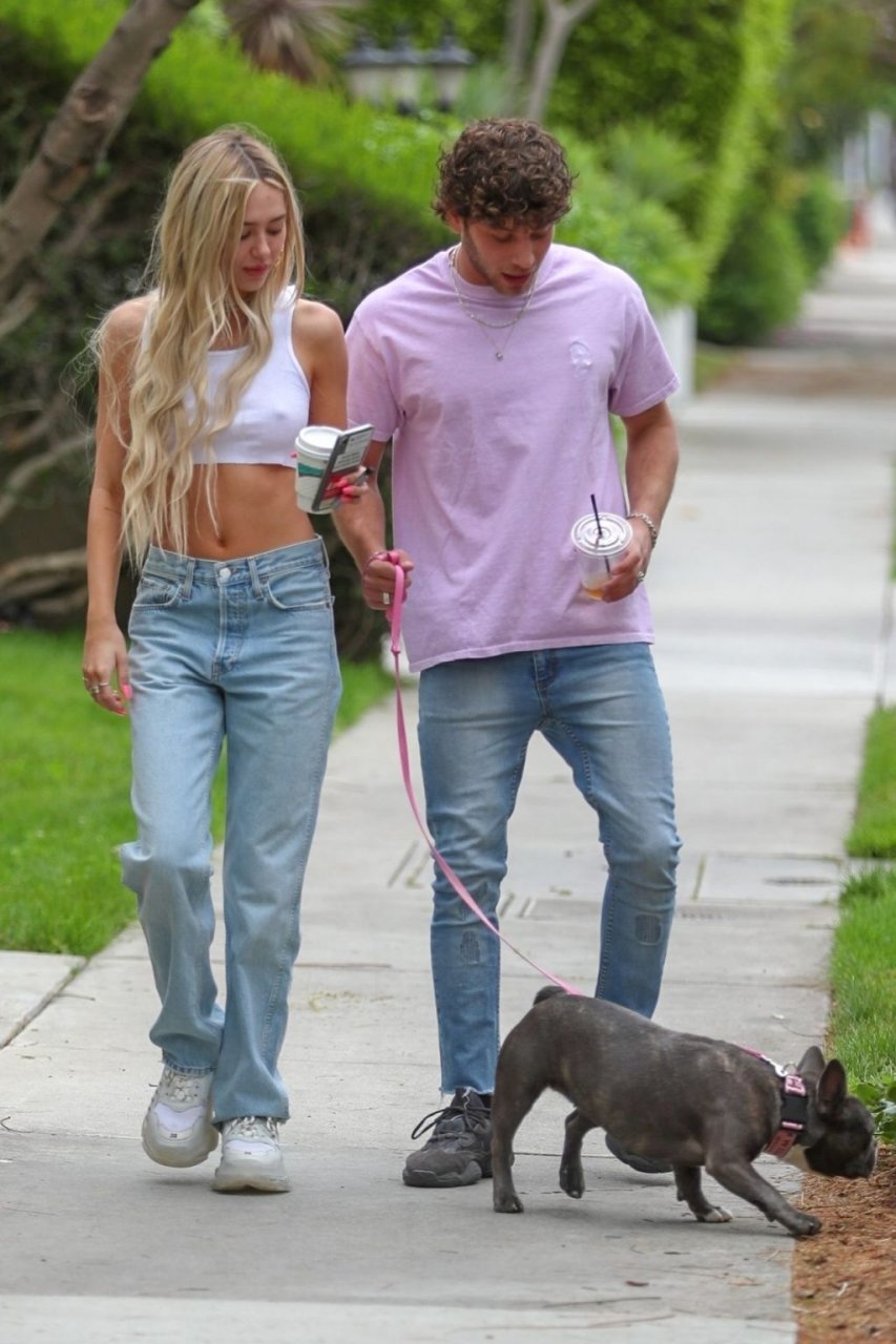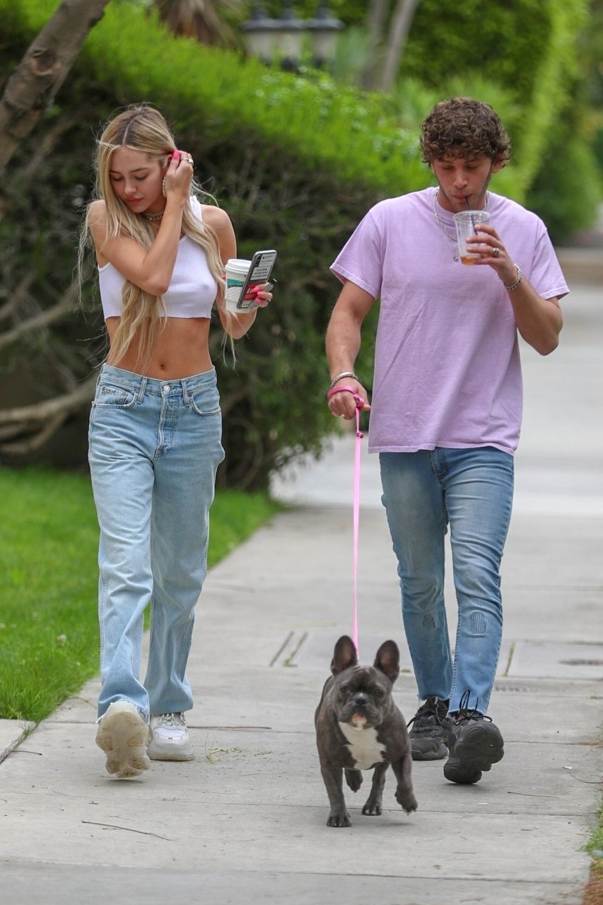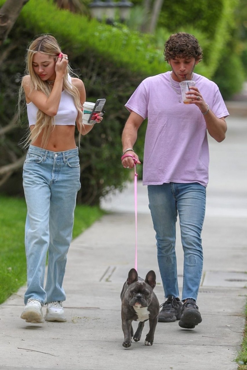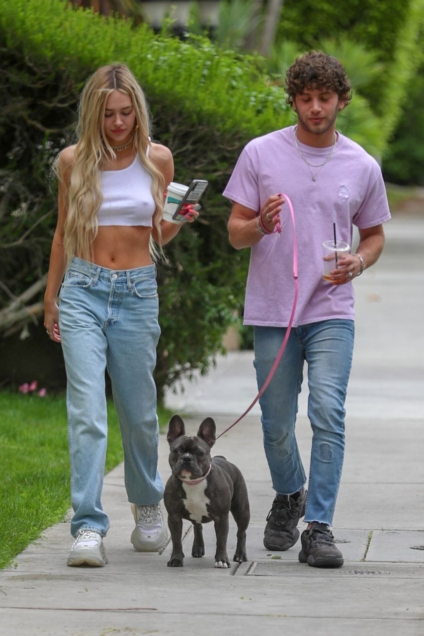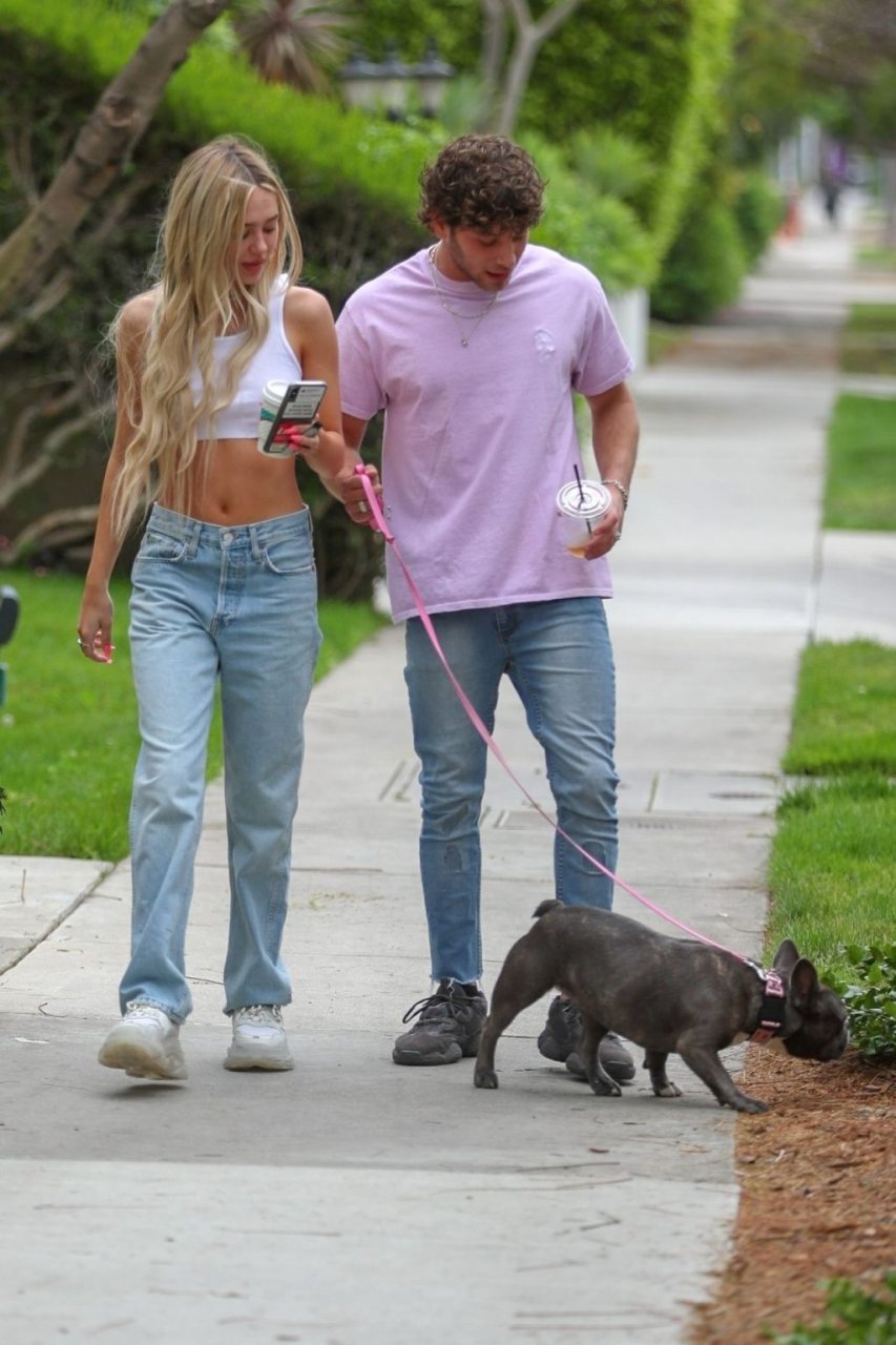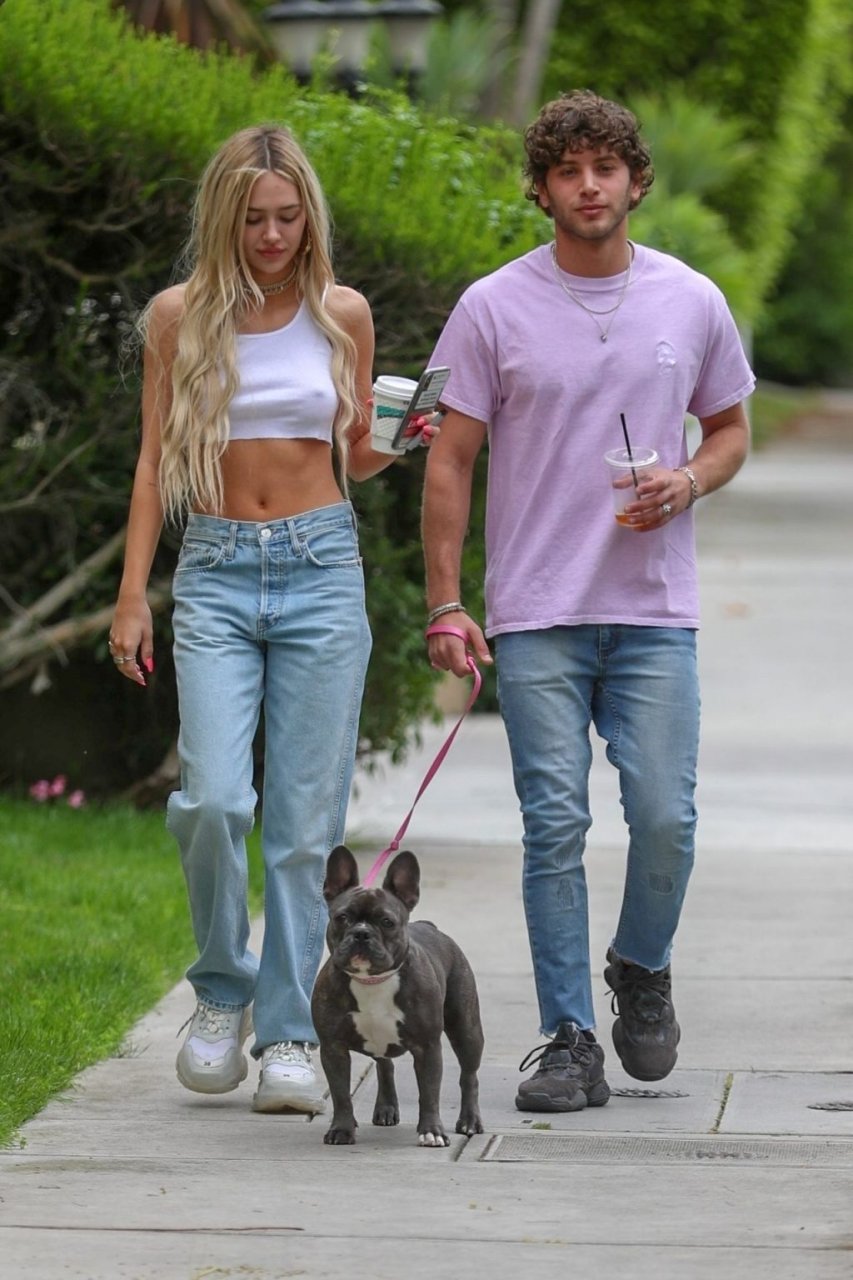 I due sono usciti con sneakers di design, Delilah ha scelto le Balenciaga e Cully indossava le Yeezy 500. Delilah tiene in mano un caffè mentre i due passeggiano per West Hollywood dopo aver mangiato, 16/04/2019.