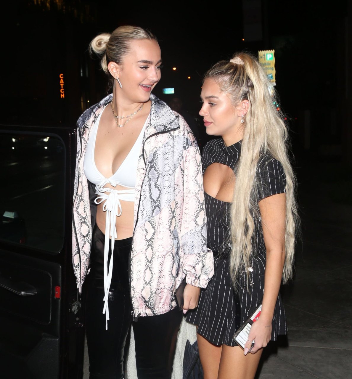 Delilah Hamlin non si sente timida mentre mostra molta pelle durante una serata con le ragazze a Hollywood, 05/03/2019. Delilah mette in mostra il suo décolleté e le gambe in un ensemble a righe molto succinto mentre fa festa con gli amici.
