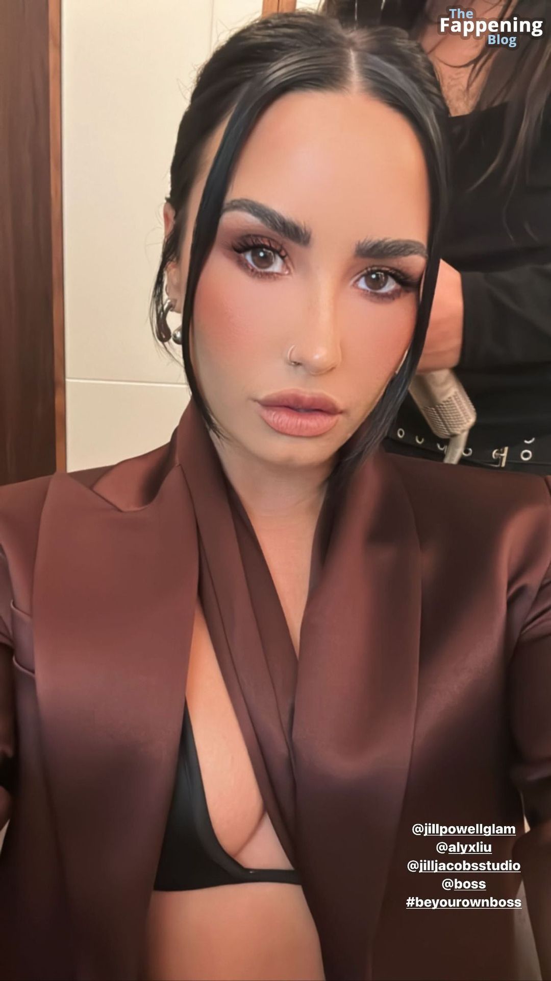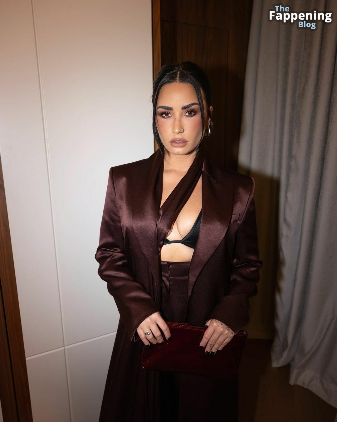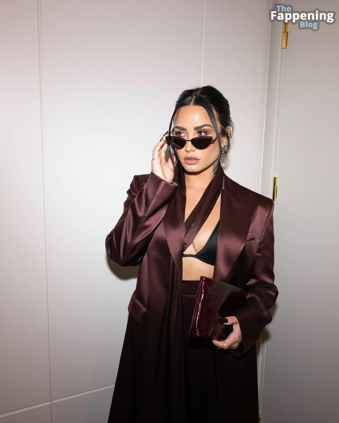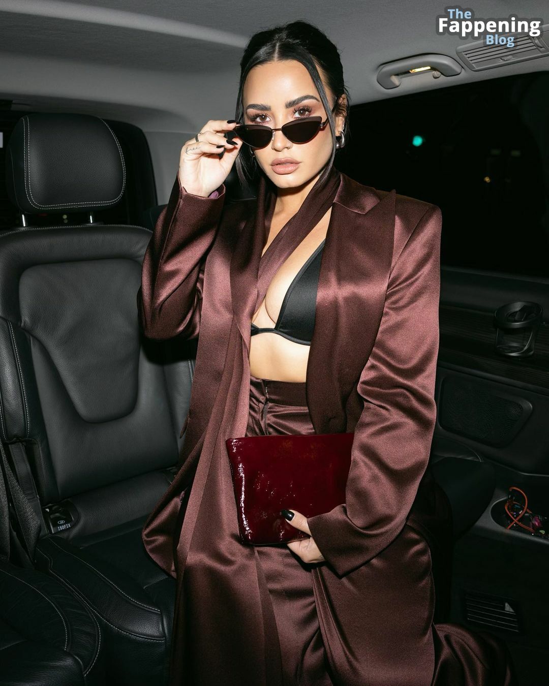 Demi Lovato sfoggia un décolleté mozzafiato, mettendo in mostra il suo seno naturale con un sexy reggiseno nero e una giacca aperta mentre esce.