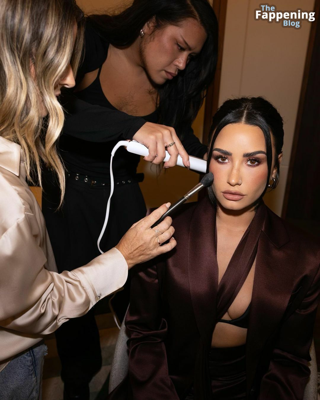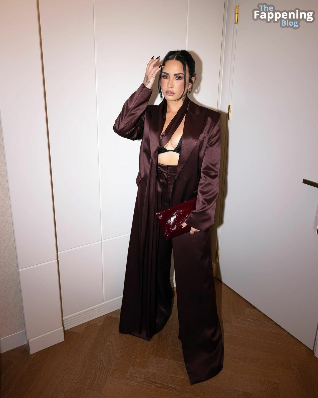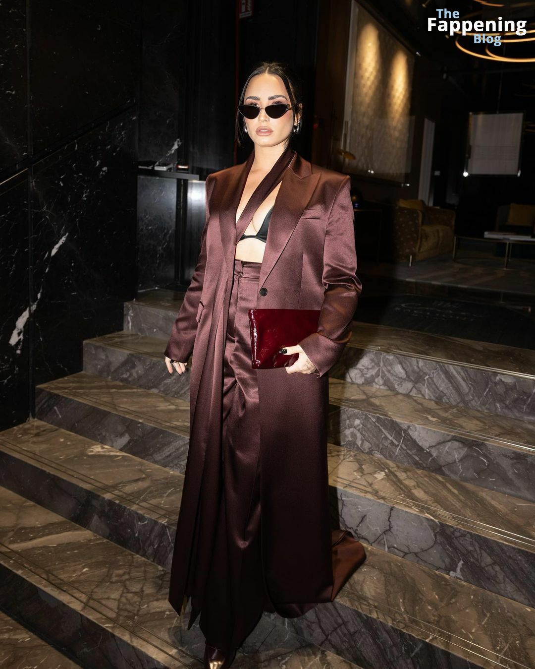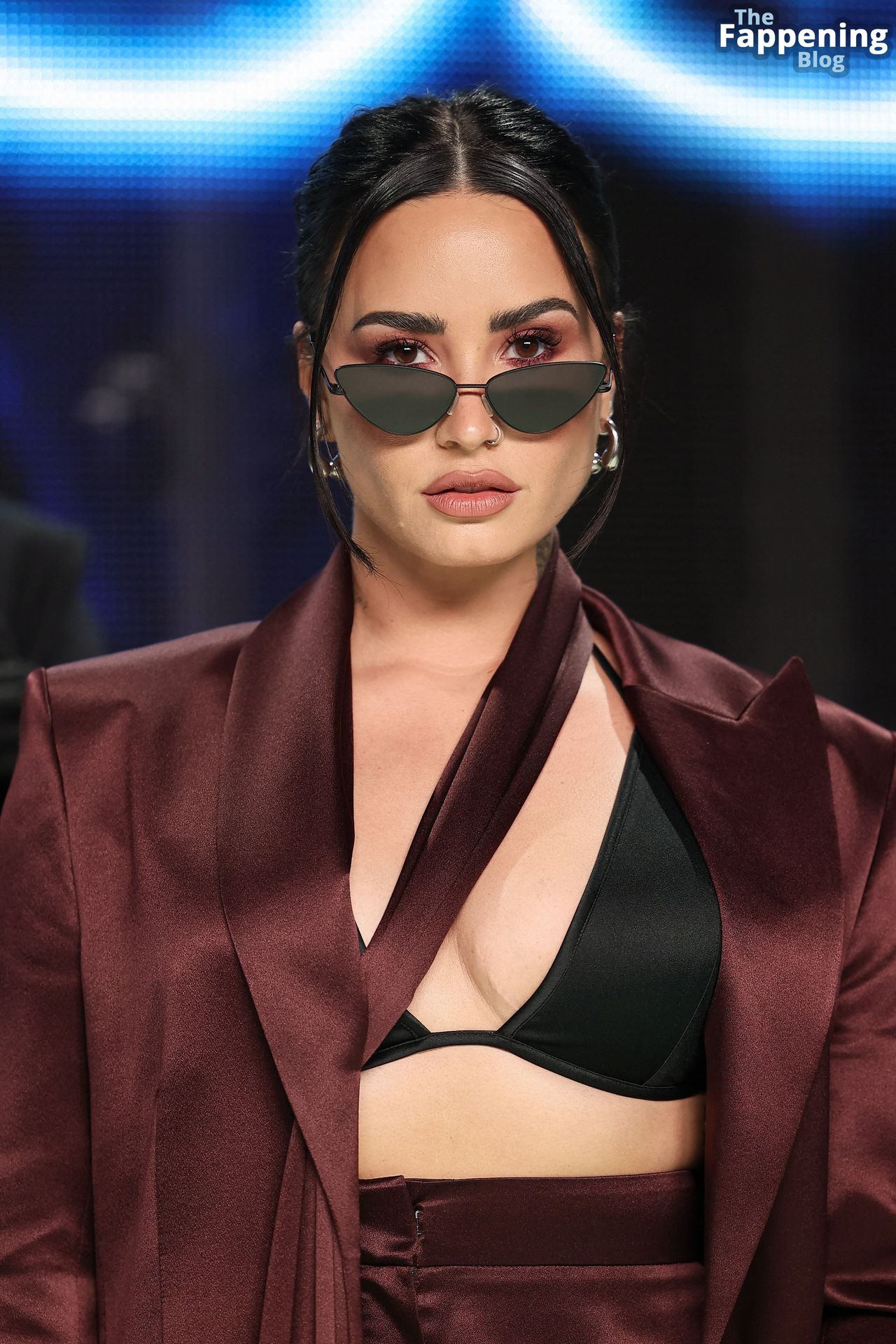 Demi Lovato sfoggia un décolleté mozzafiato, mettendo in mostra il suo seno naturale con un sexy reggiseno nero e una giacca aperta mentre esce.