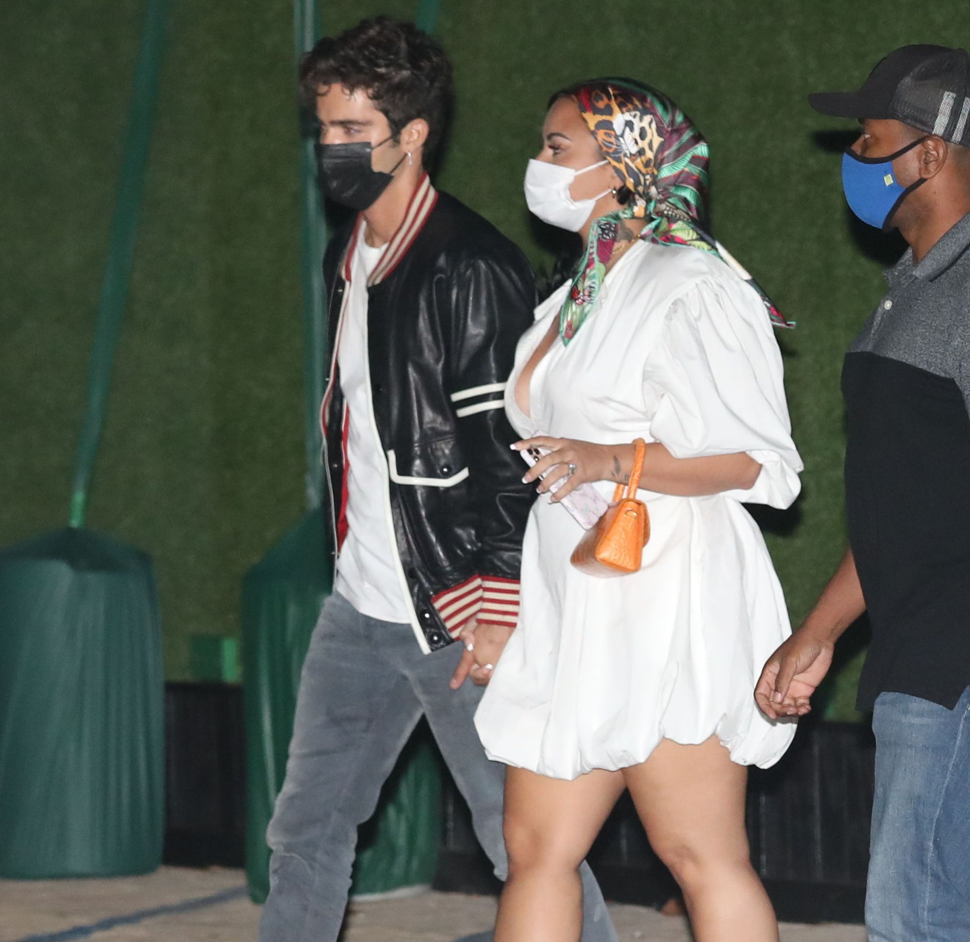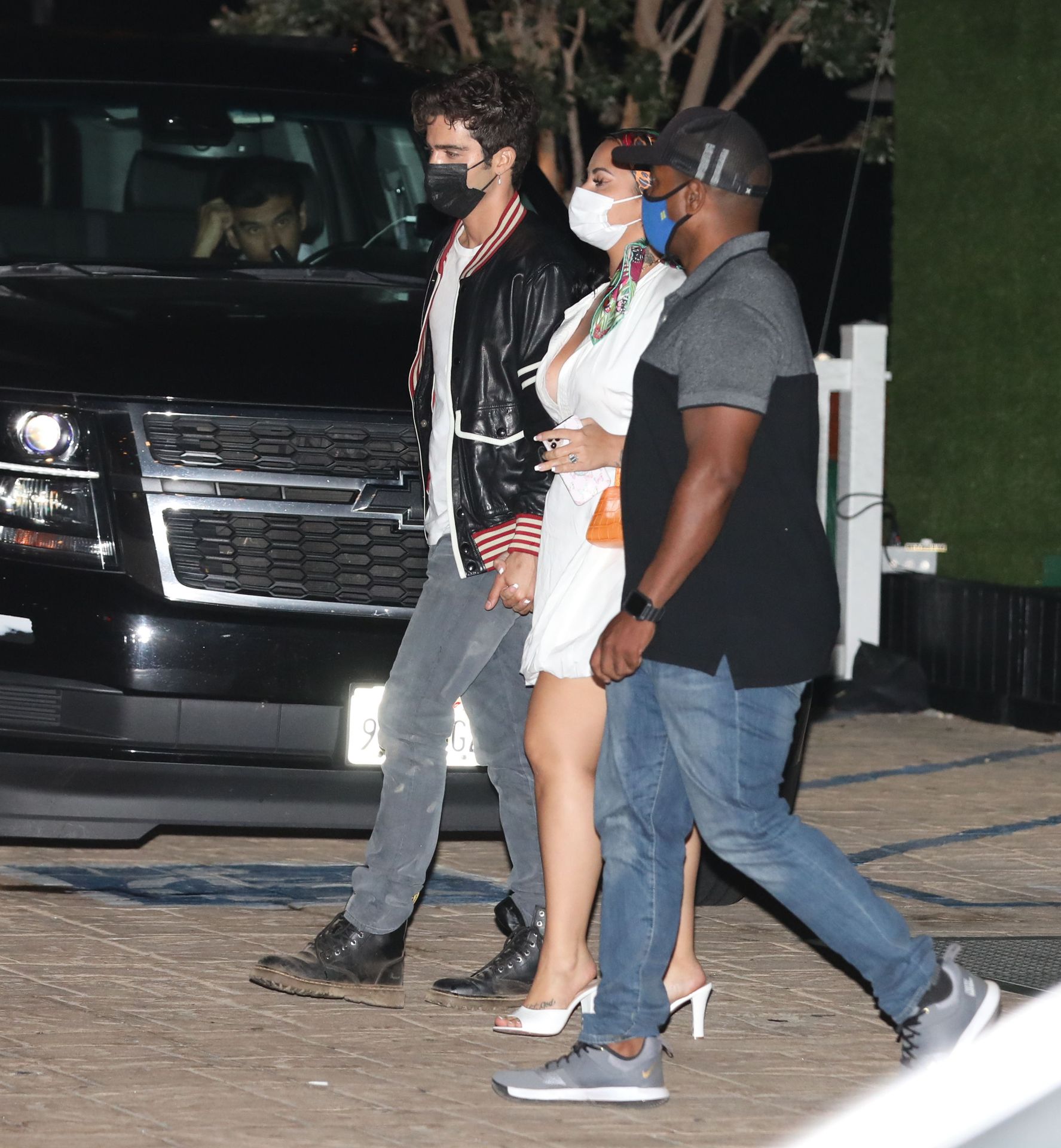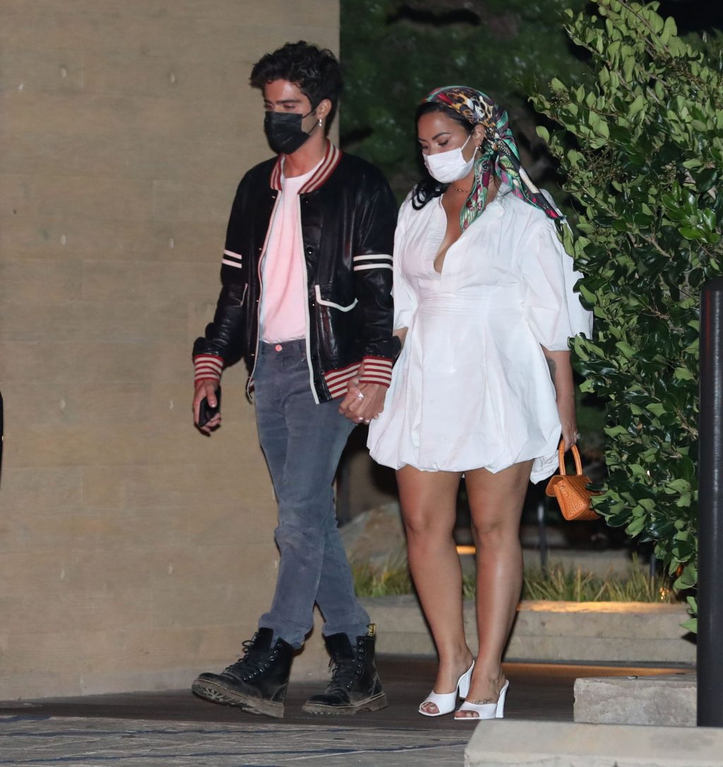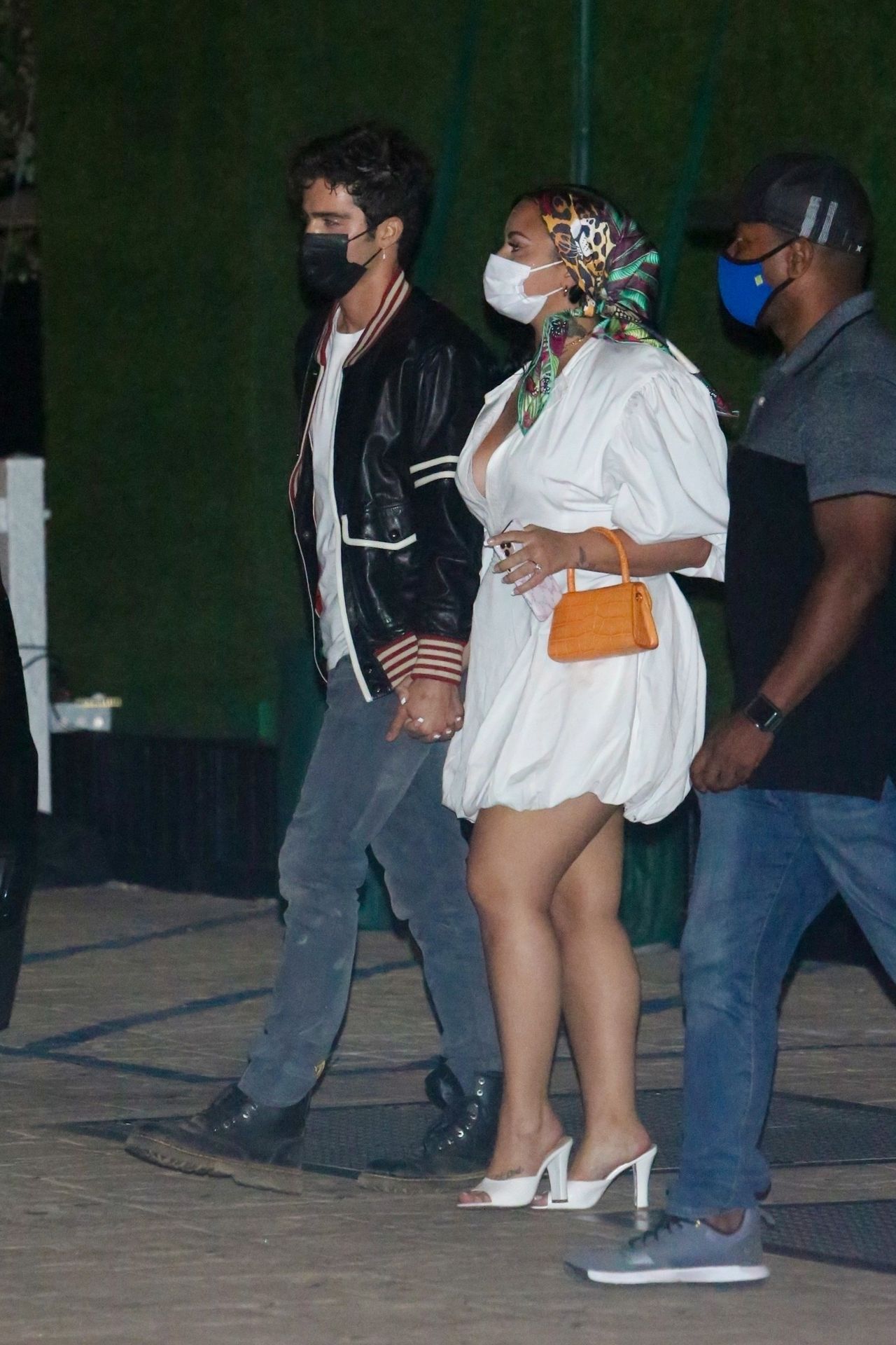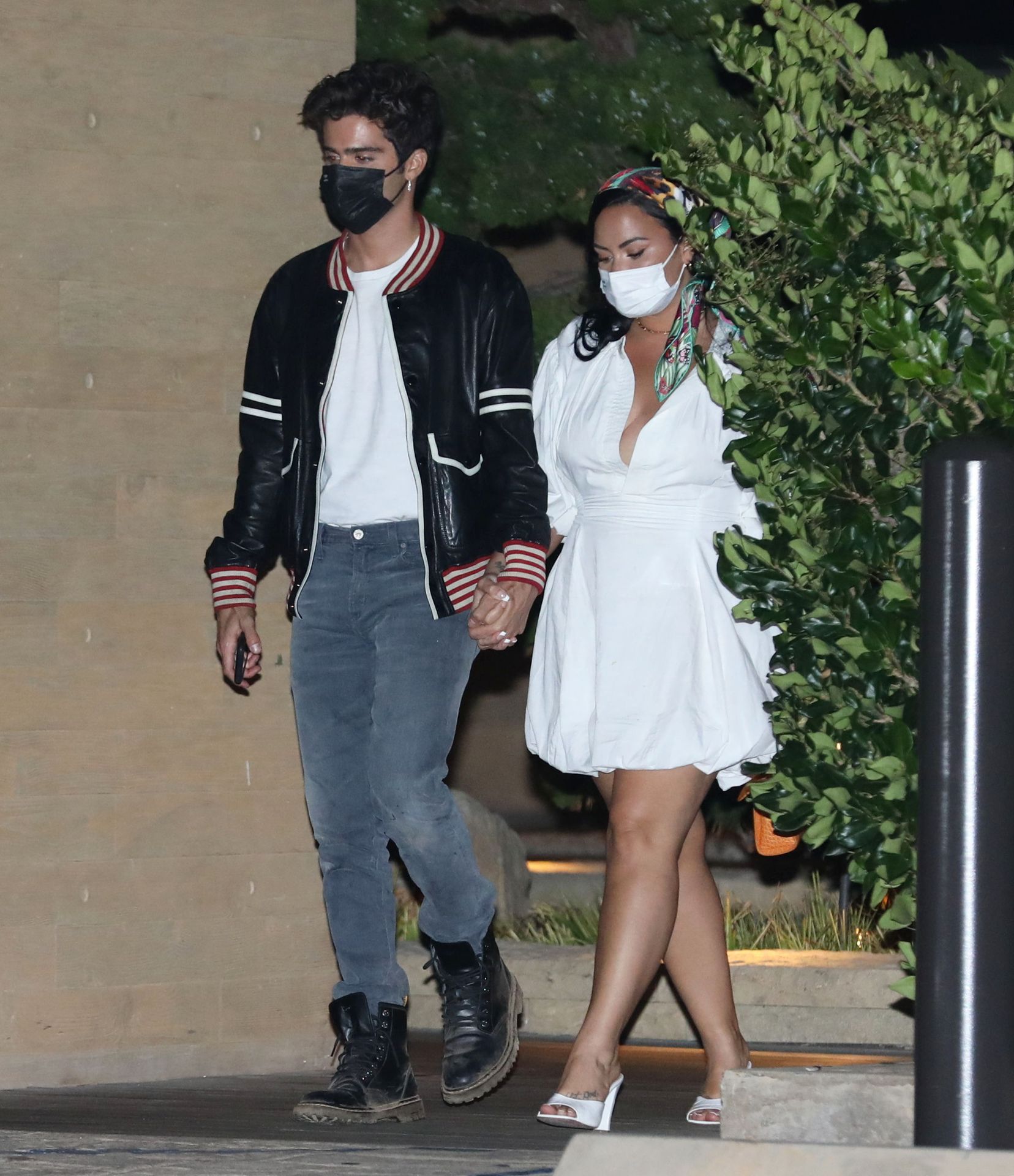 La cantante Demi Lovato e il suo fidanzato Max Ehrich si tengono per mano mentre arrivano per una cena tardiva al Nobu di Malibu, 29/08/2020.