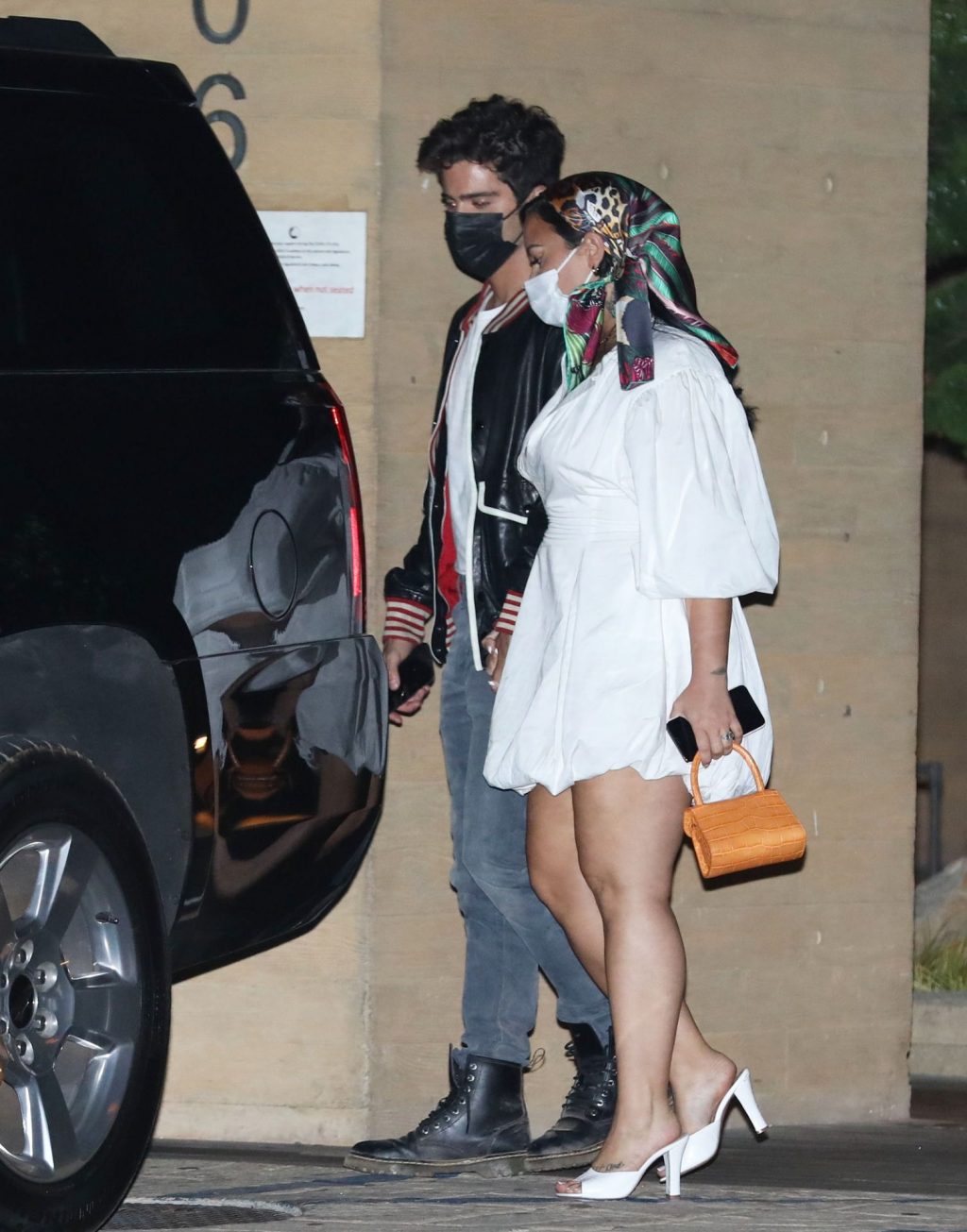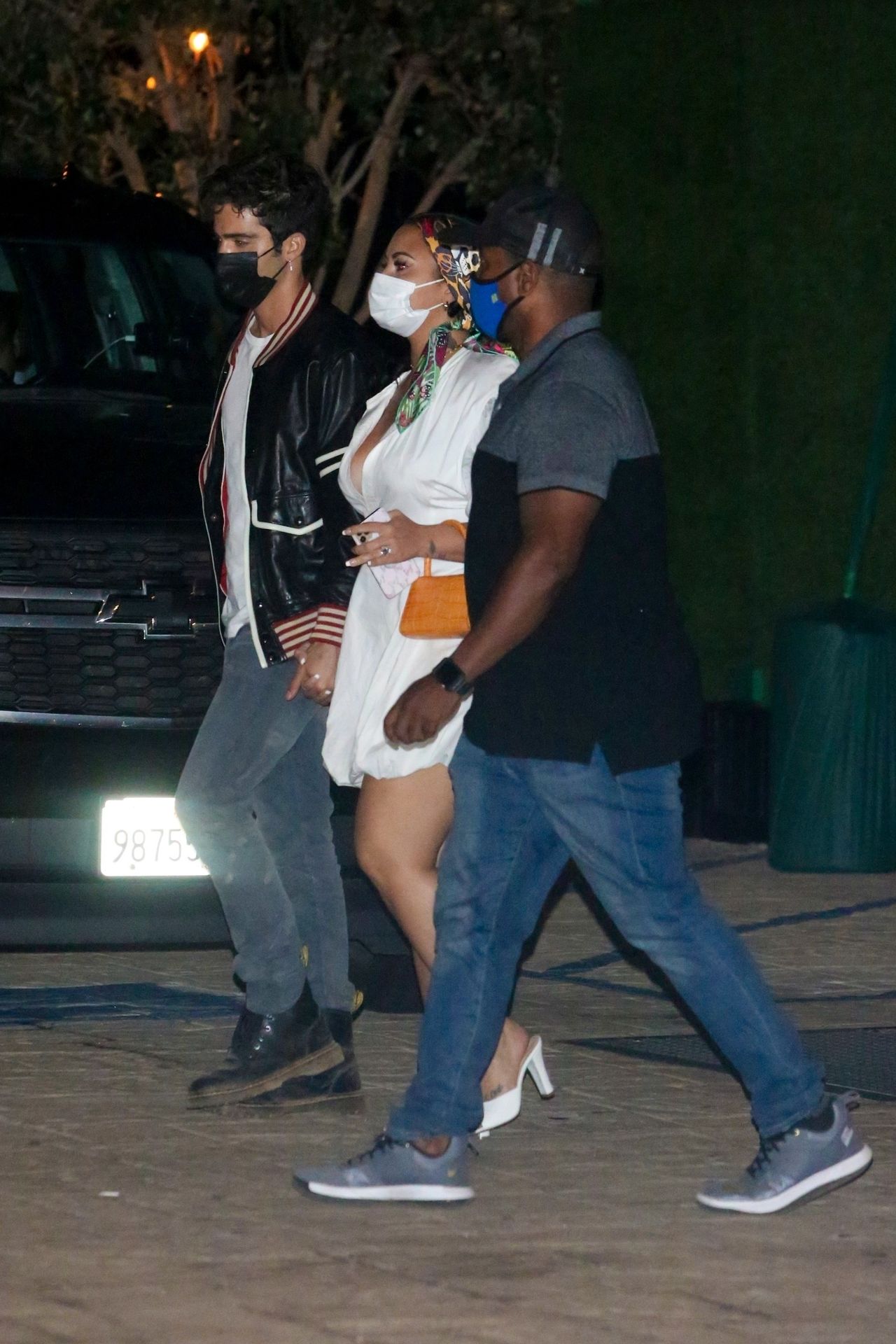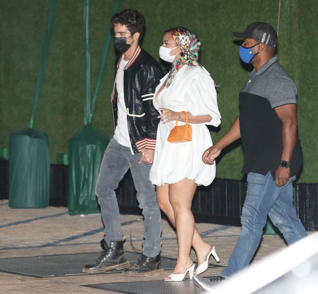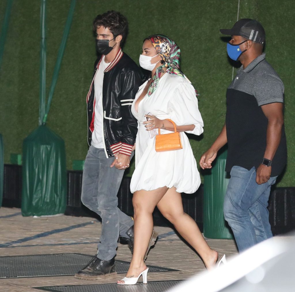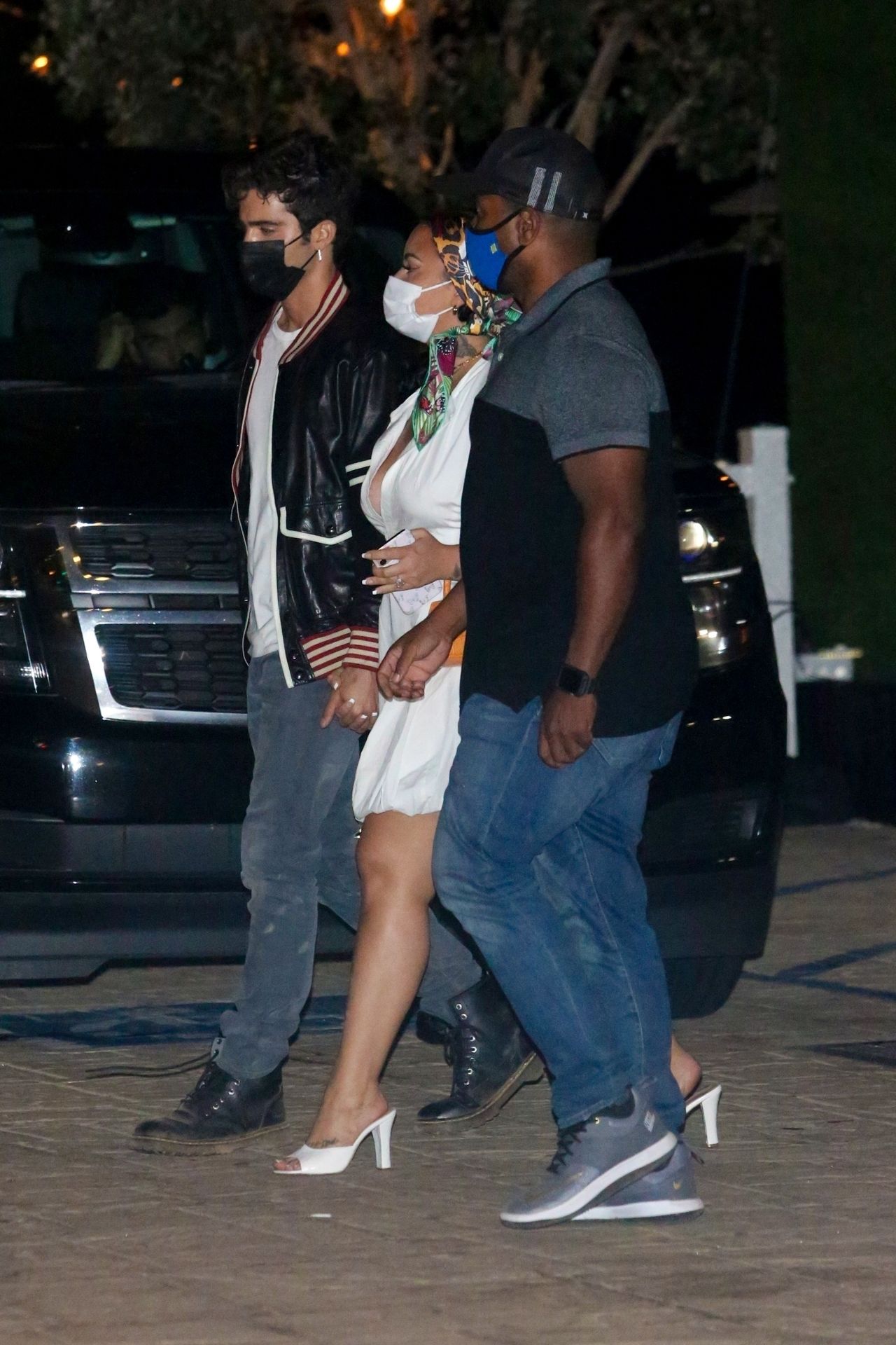La cantante Demi Lovato e il suo fidanzato Max Ehrich si tengono per mano mentre arrivano per una cena tardiva al Nobu di Malibu, 29/08/2020.