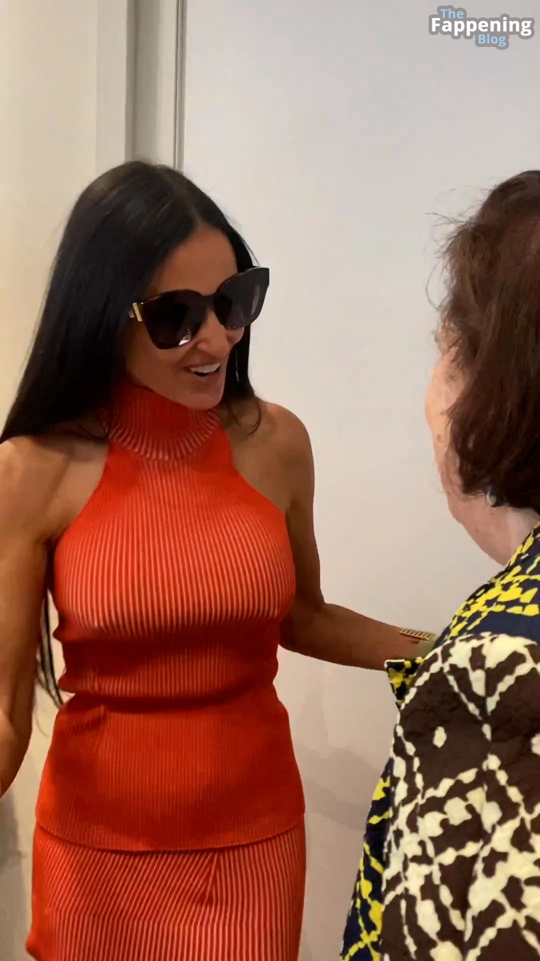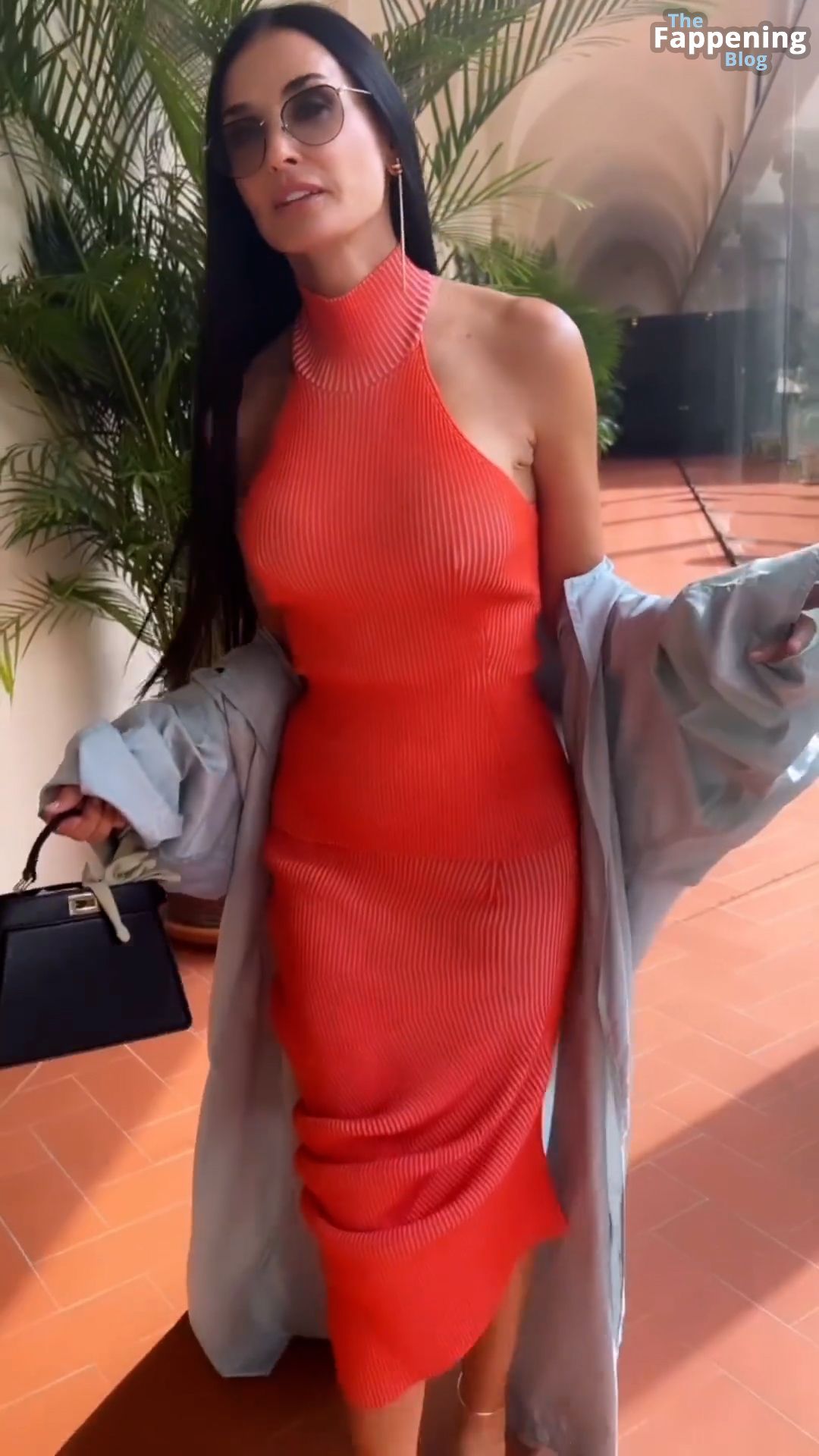 Indossando un vestito rosso aderente e sexy, è senza reggiseno e lascia che quei seni rubino la scena. I suoi capezzoli spuntano, creando un’atmosfera davvero hot mentre arriva all’evento. Demi sa come fare un ingresso trionfale e tenere tutti gli occhi su di sé. È una vera regina dello stile!