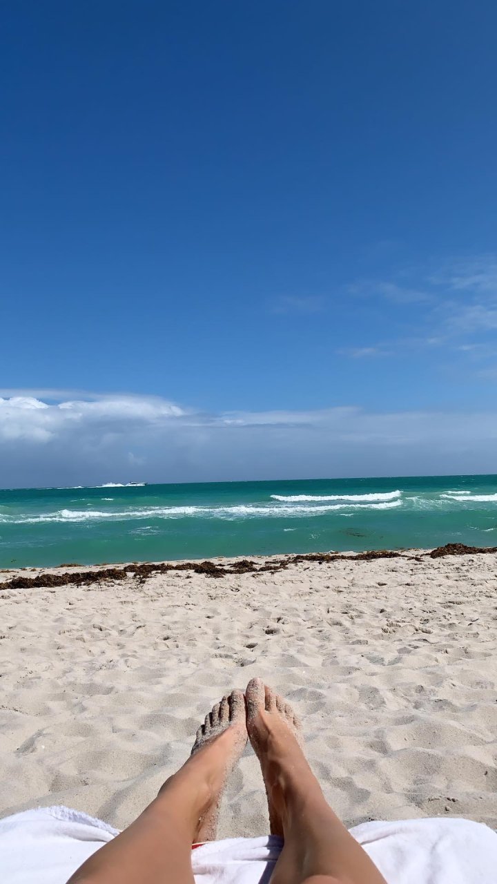 Model Devon Windsor è a Miami Beach a prendere il sole, 23/02/2019. Devon indossa un sexy bikini rosso a due pezzi mentre fa onde sulle acque azzurre.