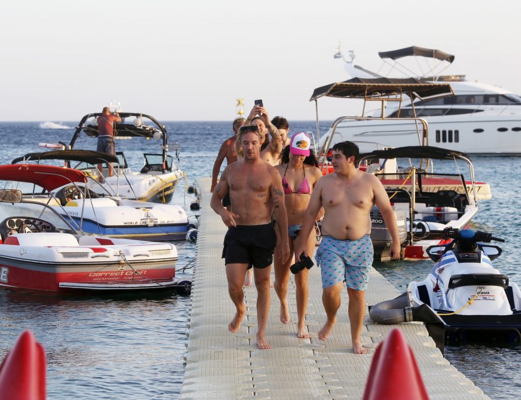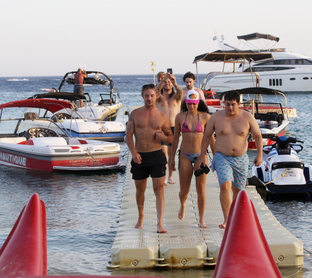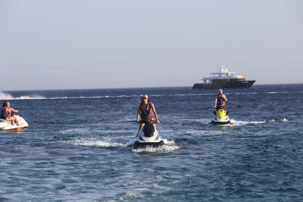 DJ Diplo è stato visto visitare il Elia Water Sports Center per fare sci d’acqua a Mykonos, Grecia, 08/04/2021. Diplo è stato visto anche con un gruppo di amici in bikini tra cui Chantel Jeffries.