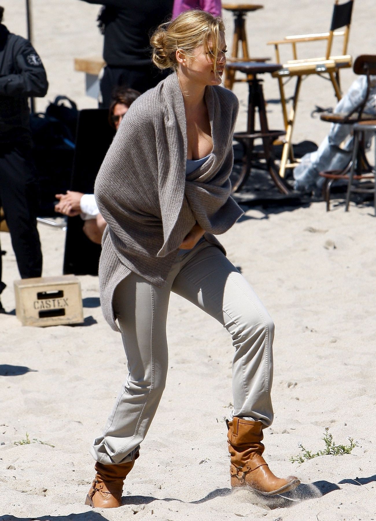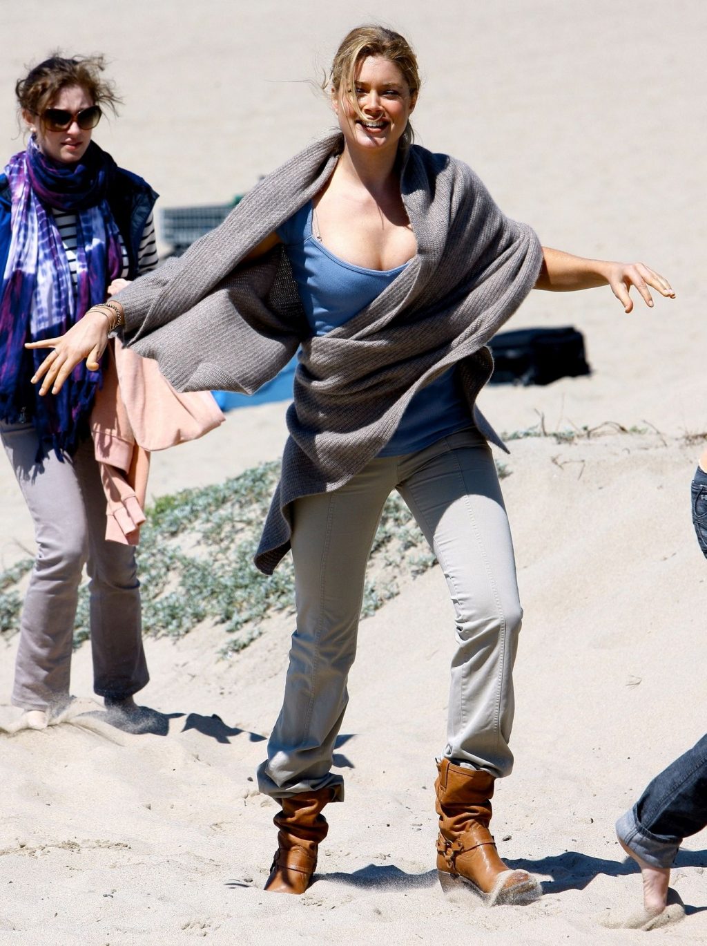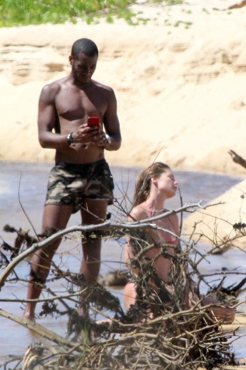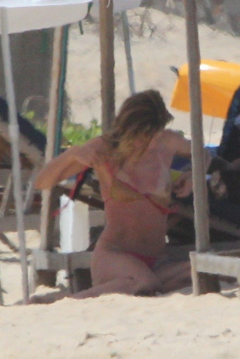 Check out how supermodel Doutzen Kroes showed her nude tits on the beach in Bahia! She was hanging with some guy, and he photographed her while Kroes was posing! Then she was changing her bikini to another one, and this was a crucial moment! Her tits were naked so that the paparazzi could catch everything!