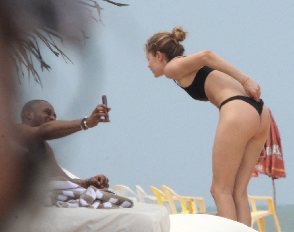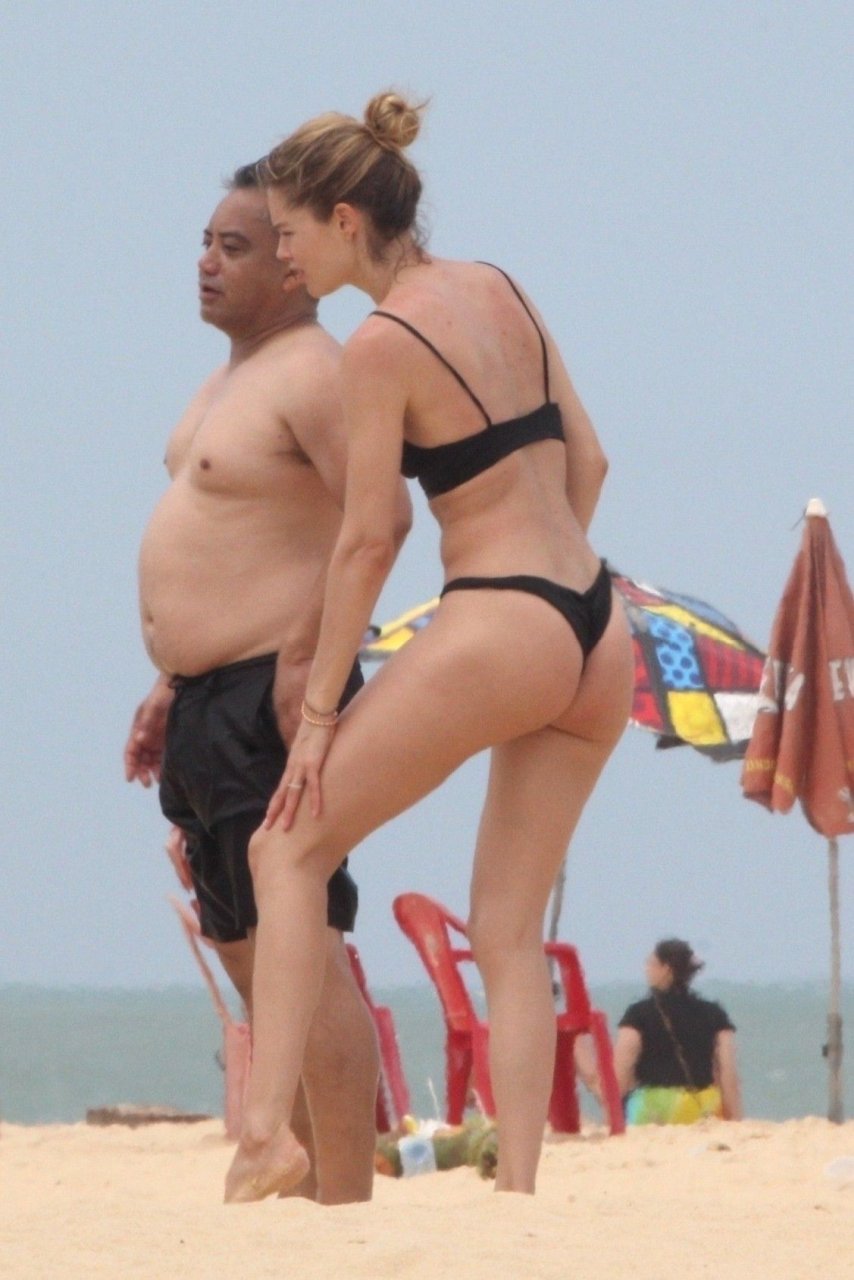 Doutzen Kroes si rilassa sulla spiaggia in Bahia, Brasile, 01/07/2018. La modella bionda di 32 anni di Victoria’s Secret mostra la sua figura in un bikini nero mentre si rilassa sulla spiaggia.