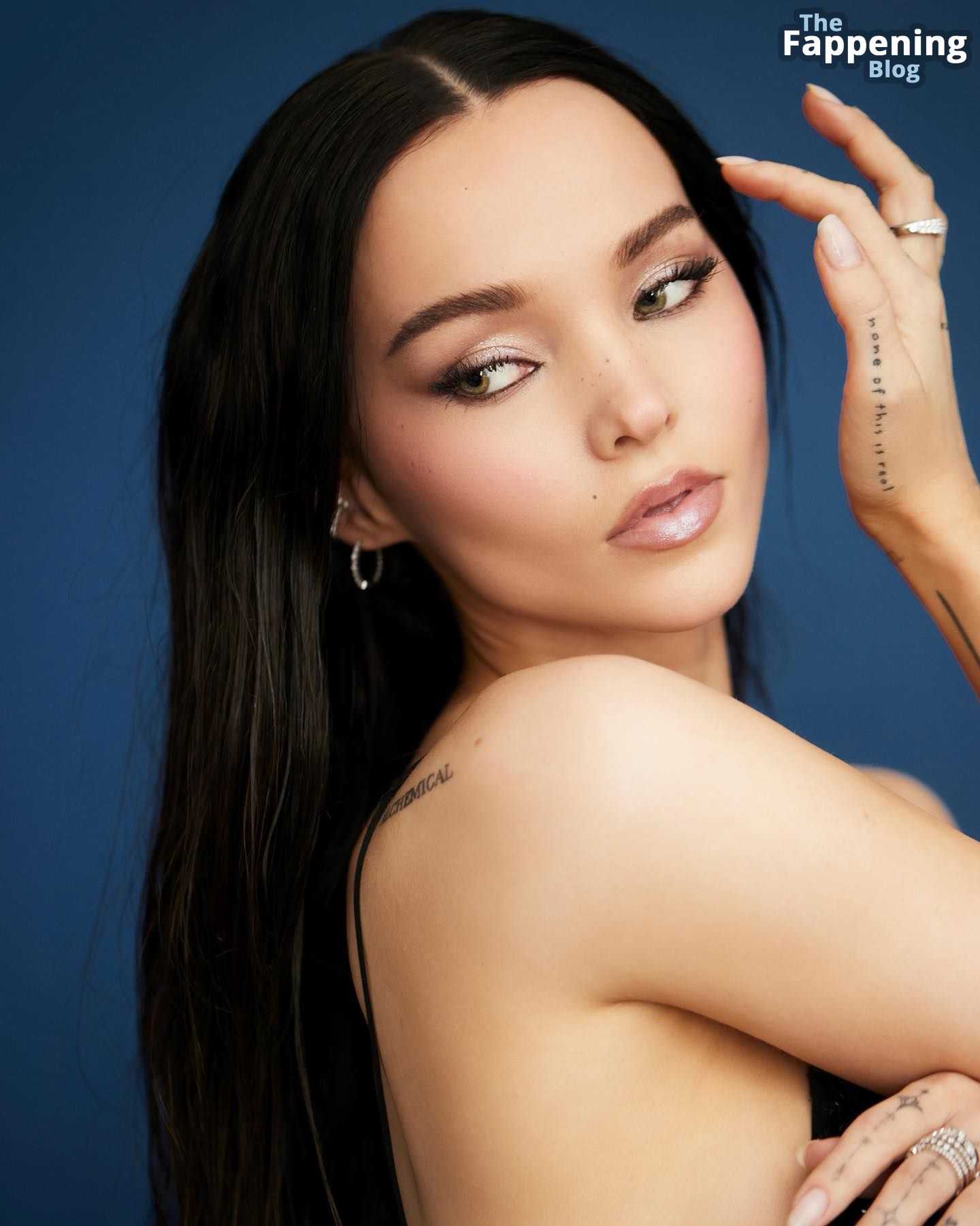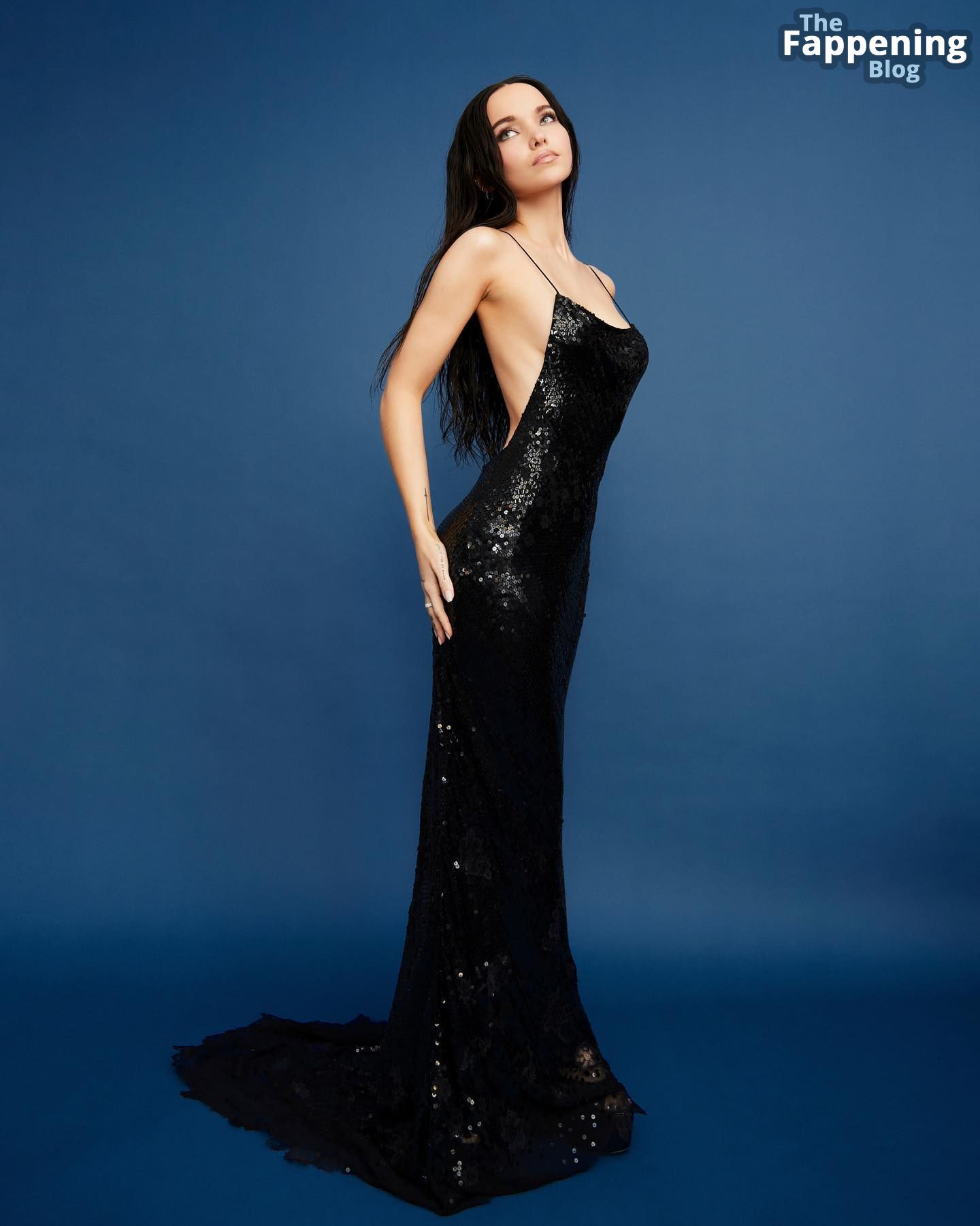 Dove Cameron sta letteralmente spaccando con un décolleté mozzafiato e un seno abbondante in mostra in un sexy abito nero senza schienale per un servizio fotografico agli MTV Video Music Awards.