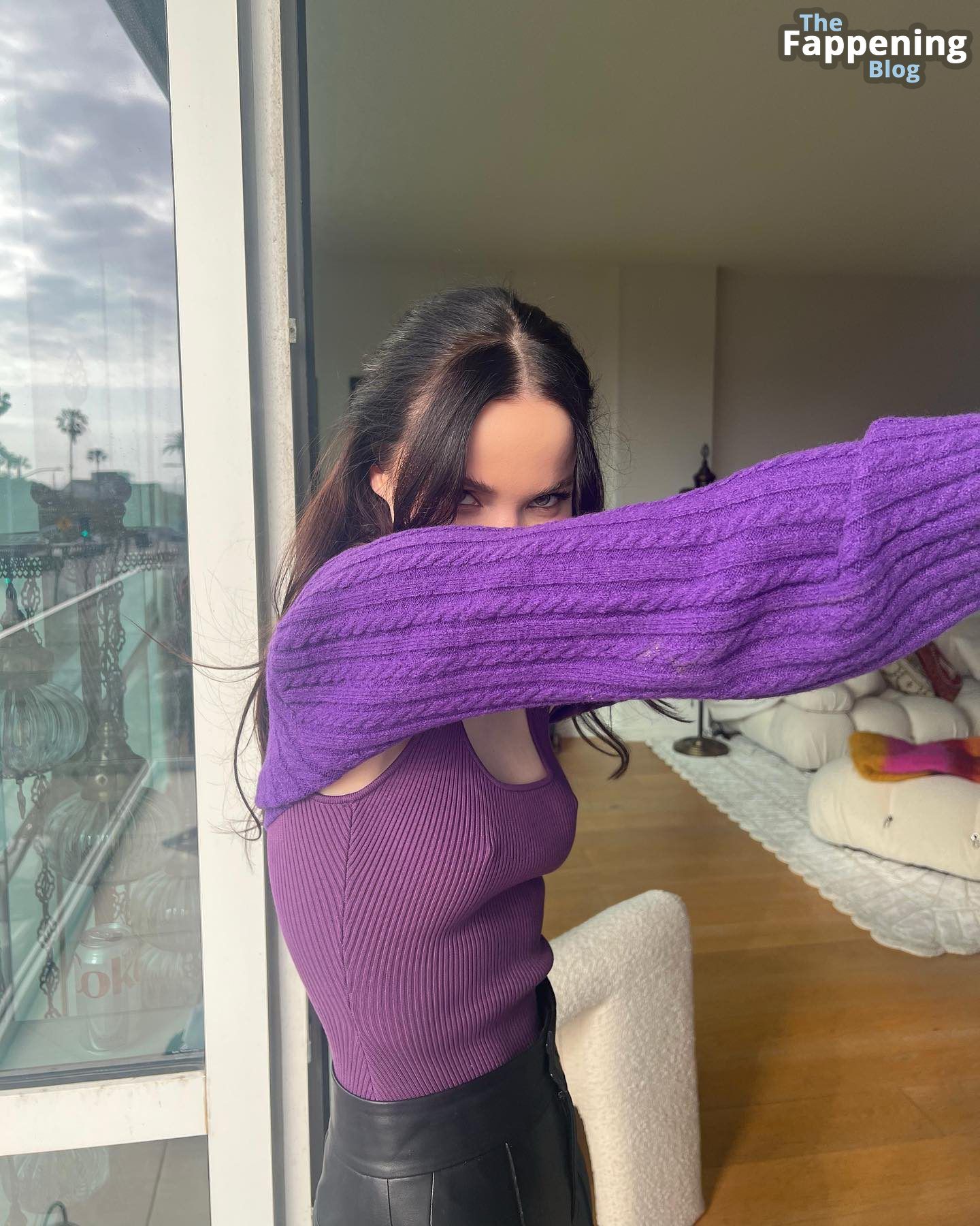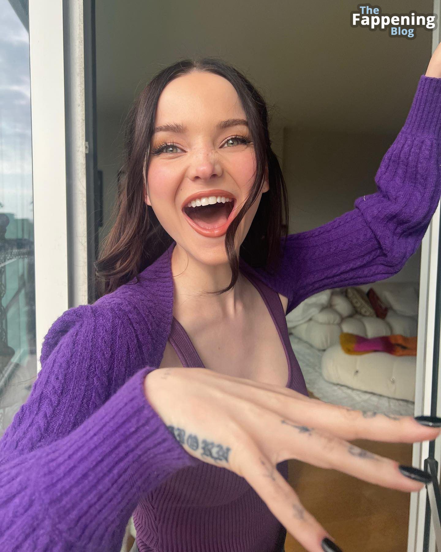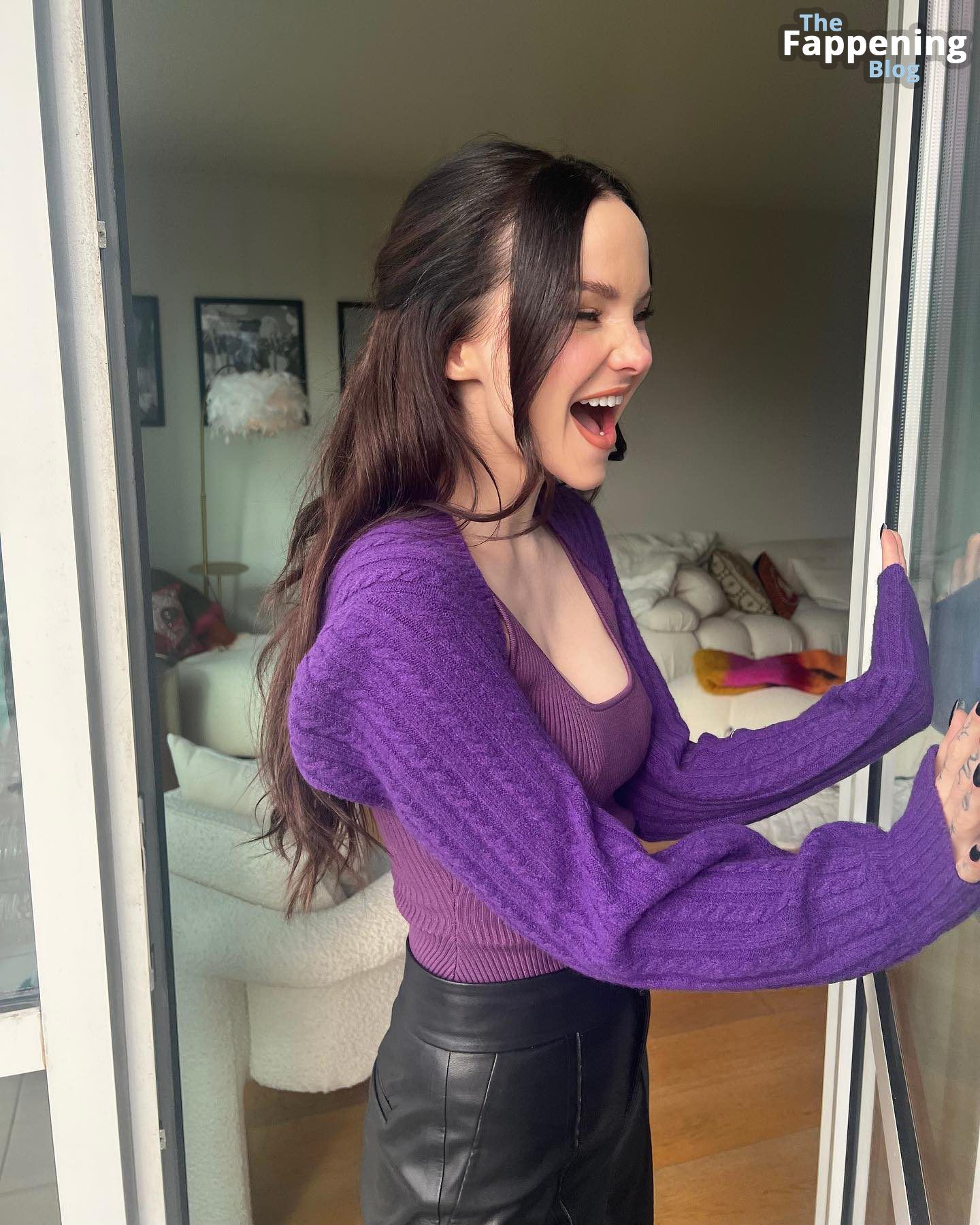 Preparati a scoprire il fascino irresistibile di Dove Cameron in un servizio fotografico accattivante sui social media, dove sfoggia con sicurezza un top viola mostrando la sua bellezza senza reggiseno e le sue allusive curve.