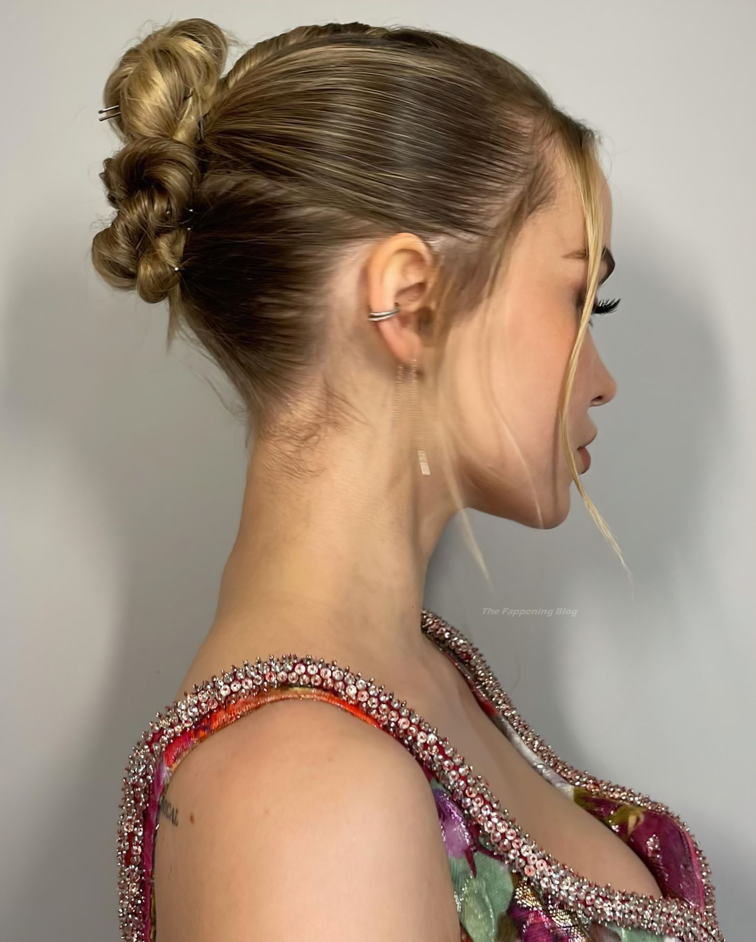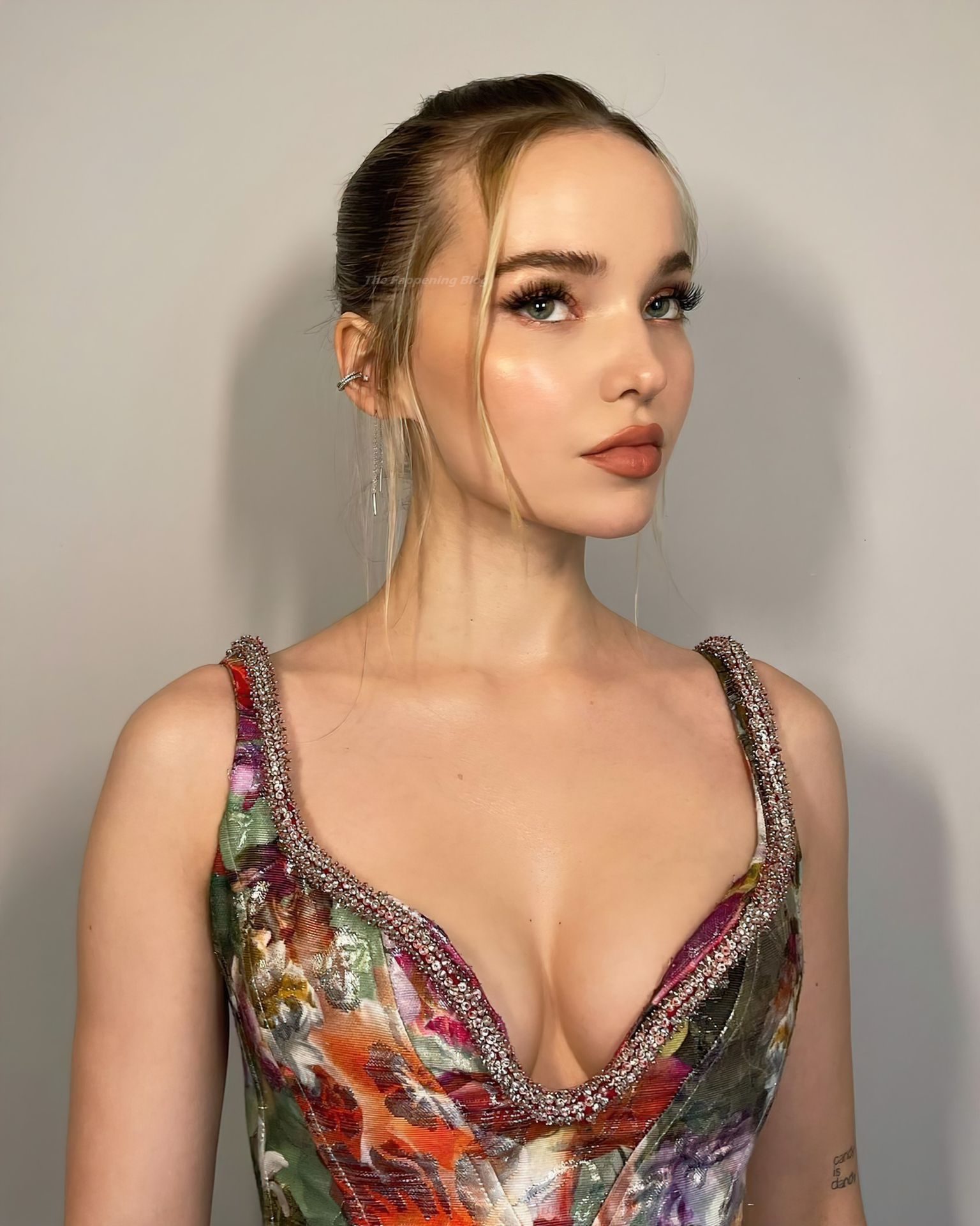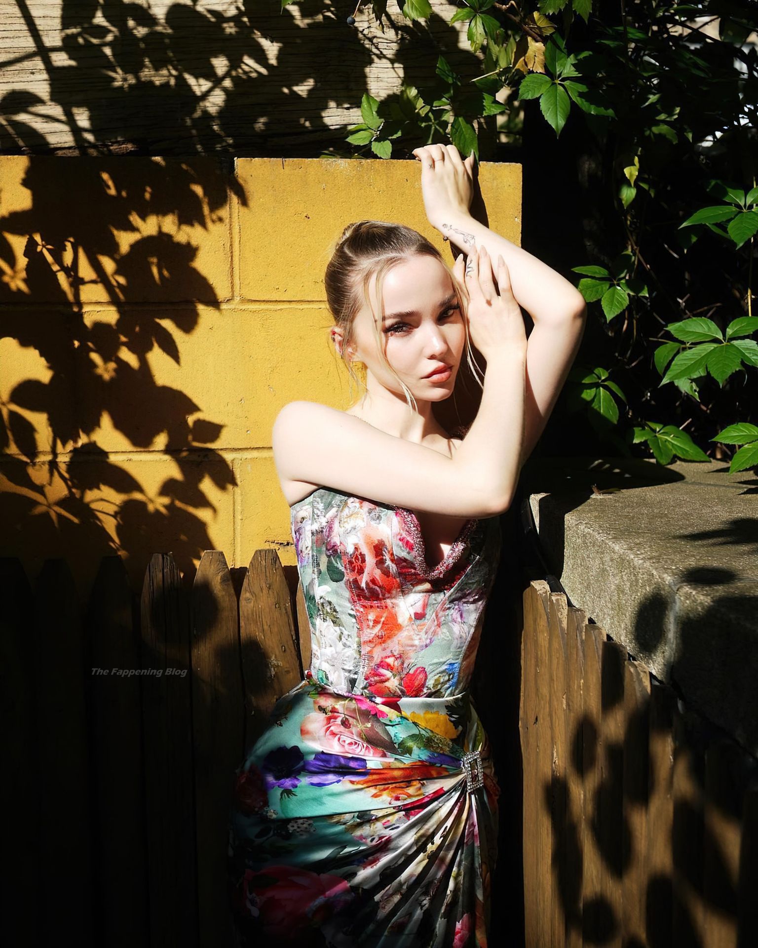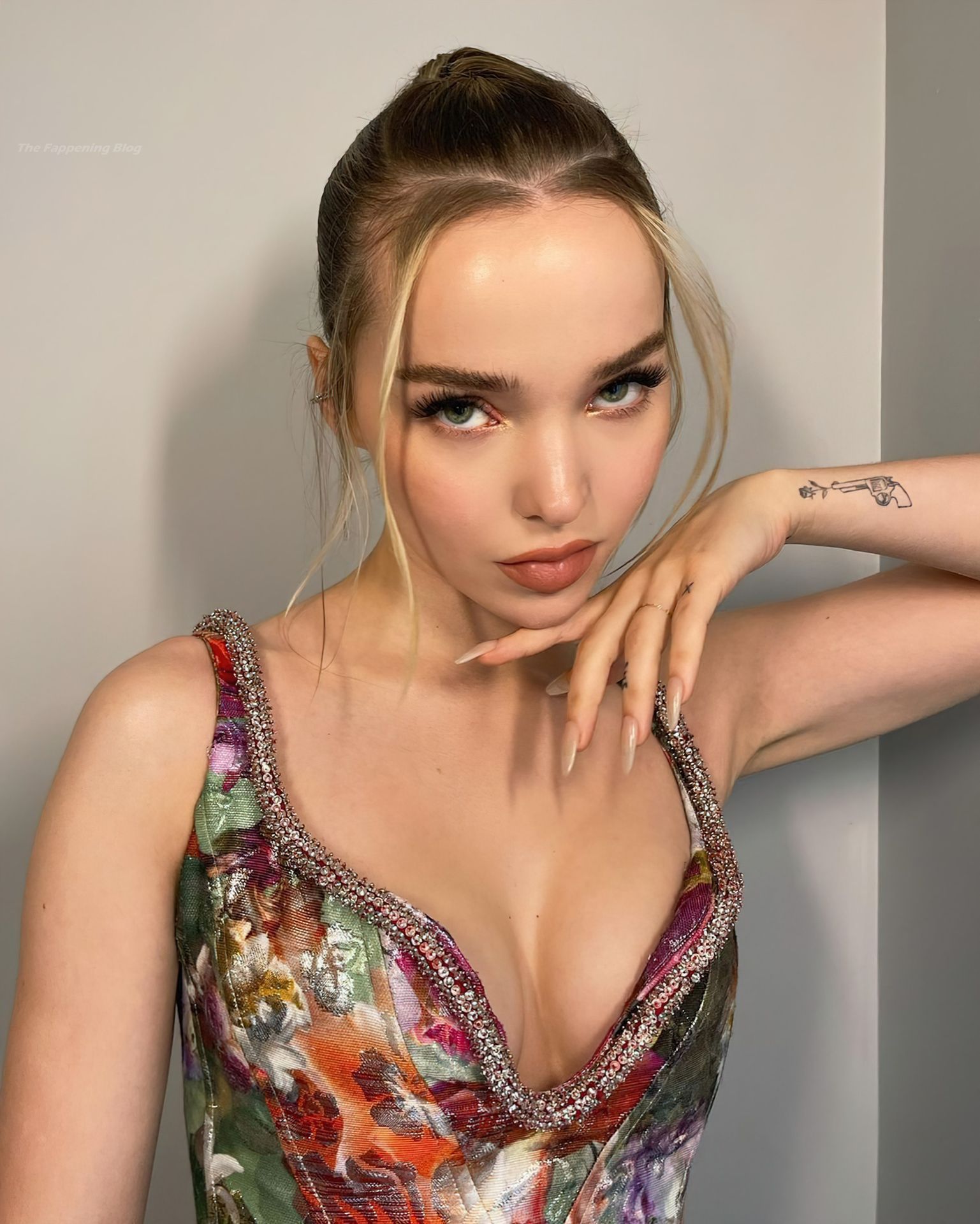 Dove Cameron mostra il suo bel décolleté indossando un bellissimo vestito scollato in un nuovo servizio fotografico sui social media (settembre 2021).