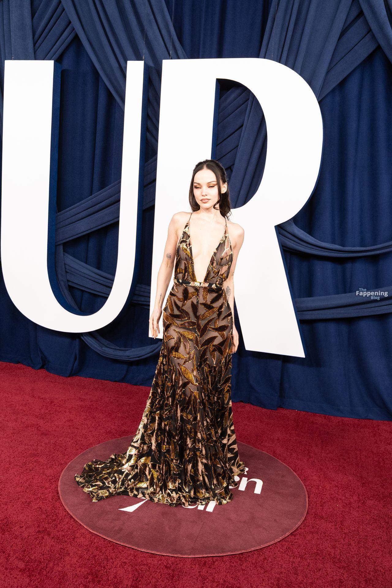 Dove Cameron era ai Glamour Women of the Year Awards 2025 al The Plaza Hotel di New York, sfoggiando un abito trasparente Roberto Cavalli con una scollatura profonda.