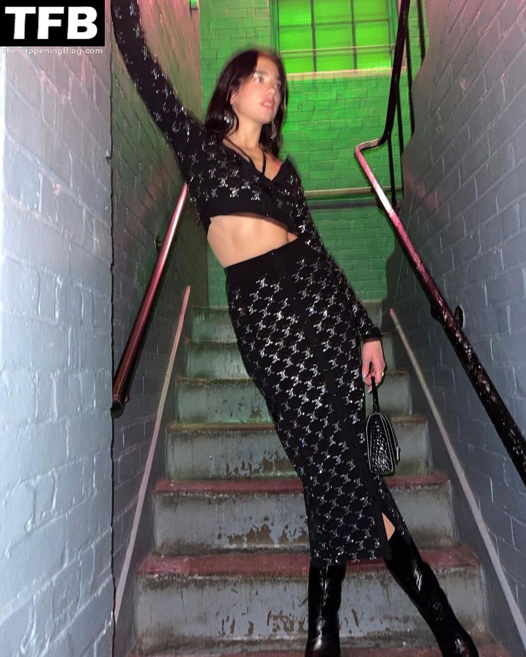 Guarda le foto sui social media della bellissima cantante Dua Lipa che mostra le sue gambe sexy e il seno (novembre 2021).