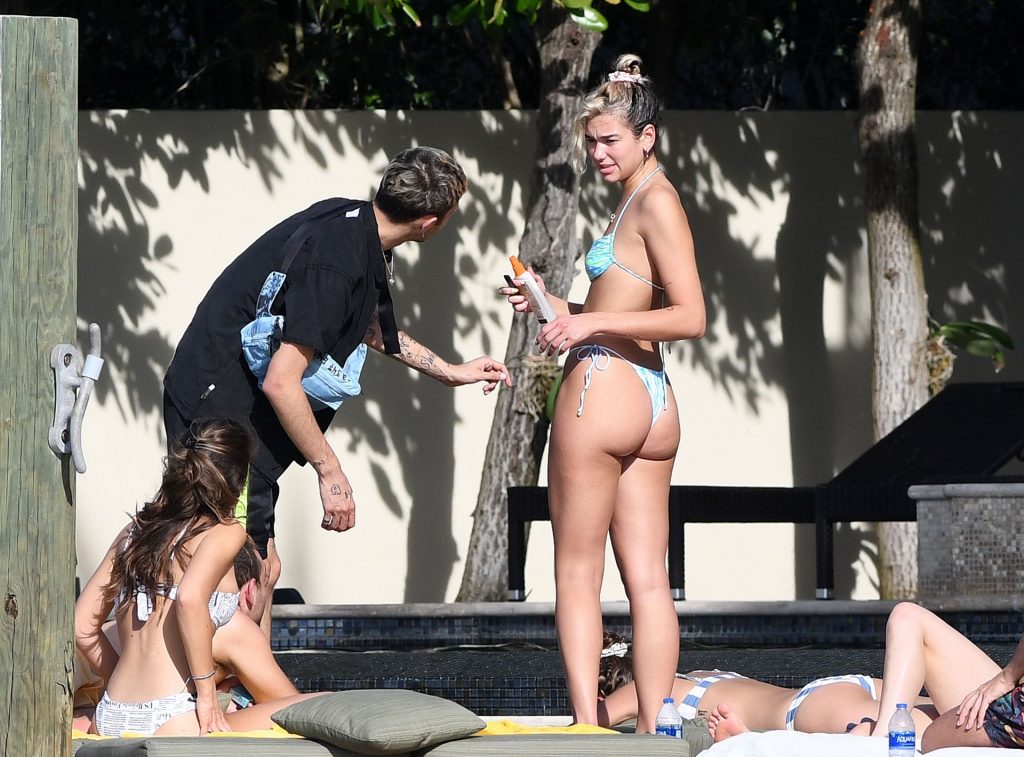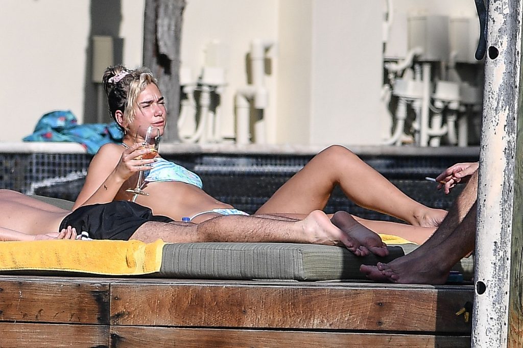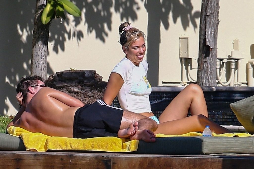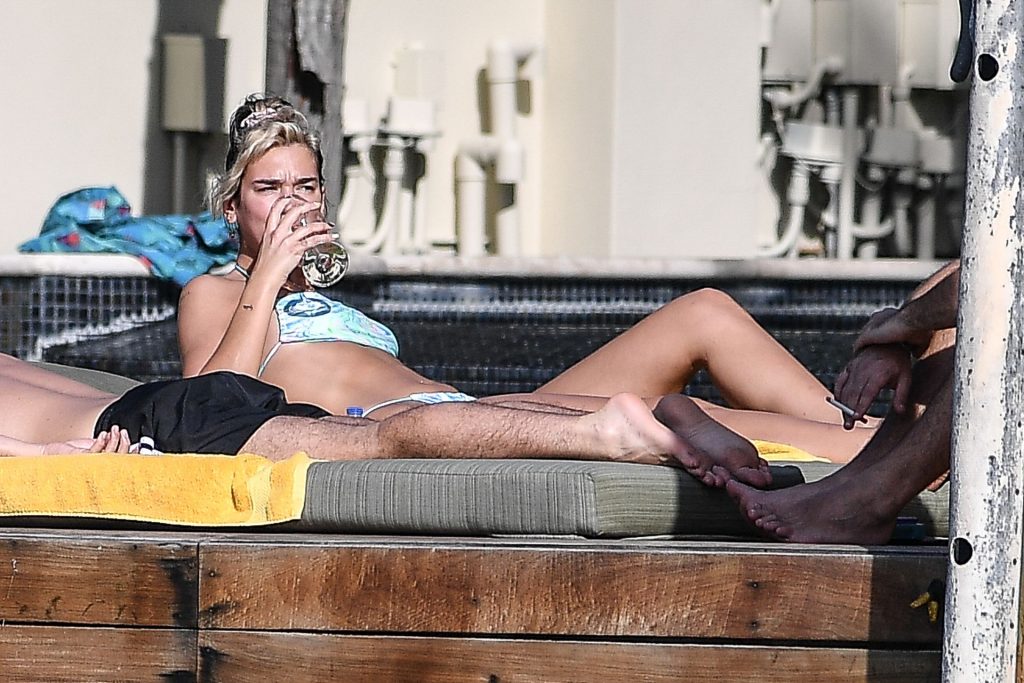 Dua Lipa indossa un bikini minuscolo mentre si gode il sole con il suo fidanzato Anwar Hadid a Miami, 01/04/2020. La coppia sembra molto innamorata, non riescono a tenere le mani lontane l’uno dall’altra mentre si rilassano con gli amici.