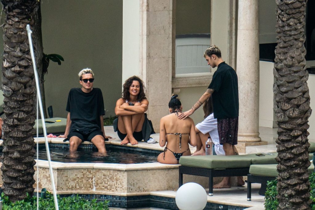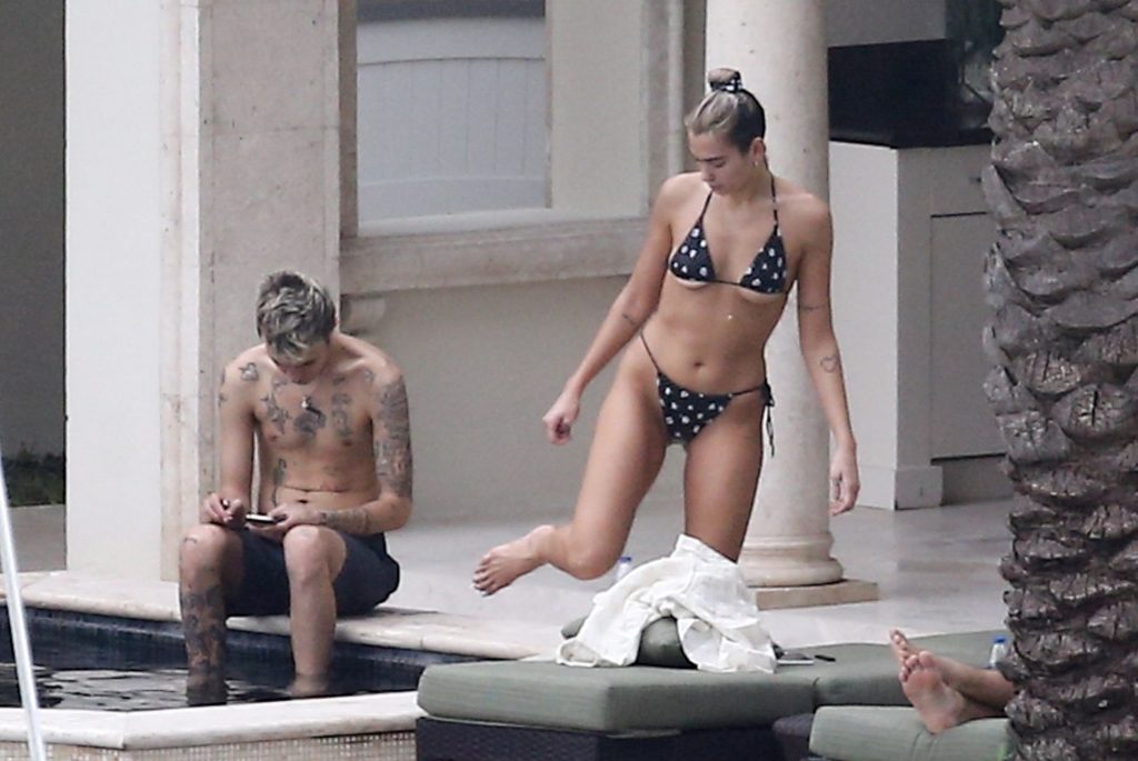 Dua Lipa e Anwar Hadid continuano la loro vacanza insieme a Miami, 30/12/2019. Il duo è visto a bordo piscina con amici mentre Dua sfoggia il suo corpo abbronzato in un minuscolo bikini nero a pois.