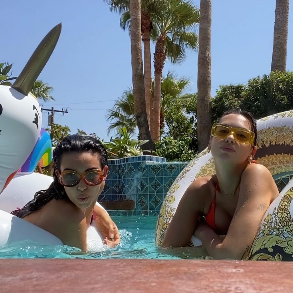 La cantante Dua Lipa si gode una giornata in bikini arancione in piscina con la sua amica – Instagram, 09/09/2020.