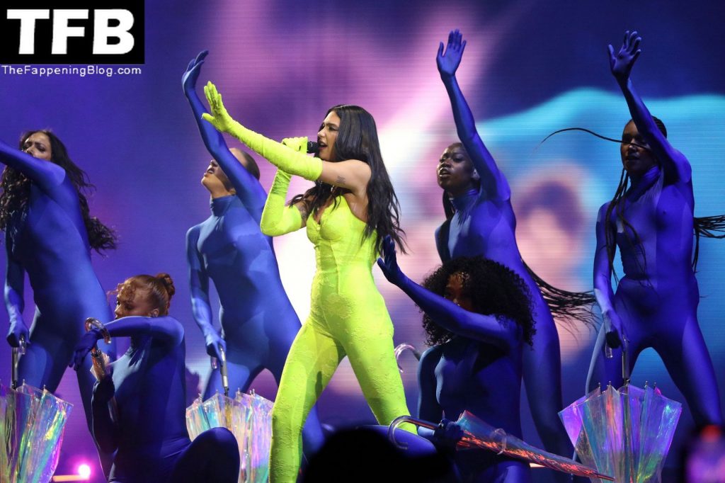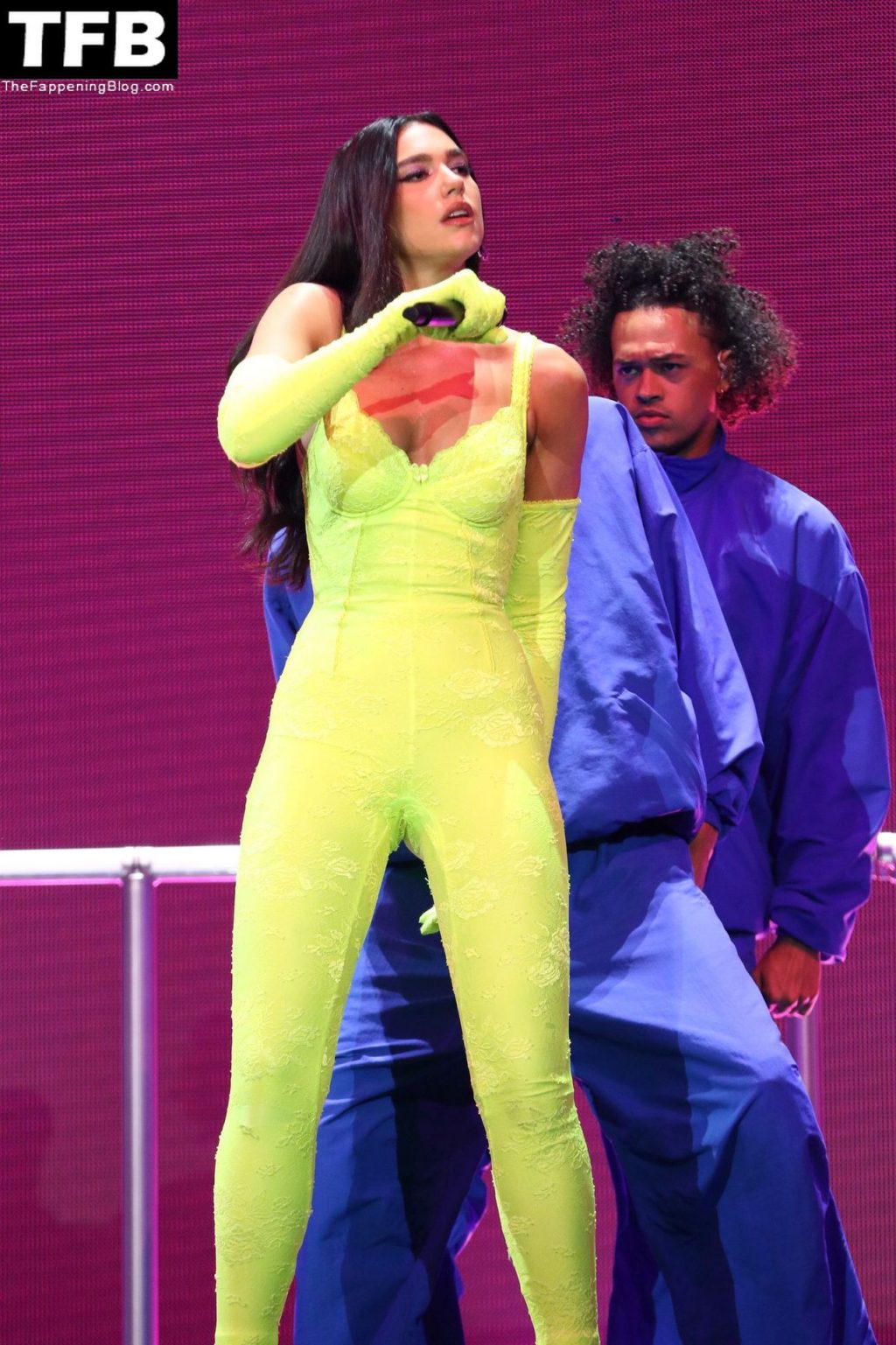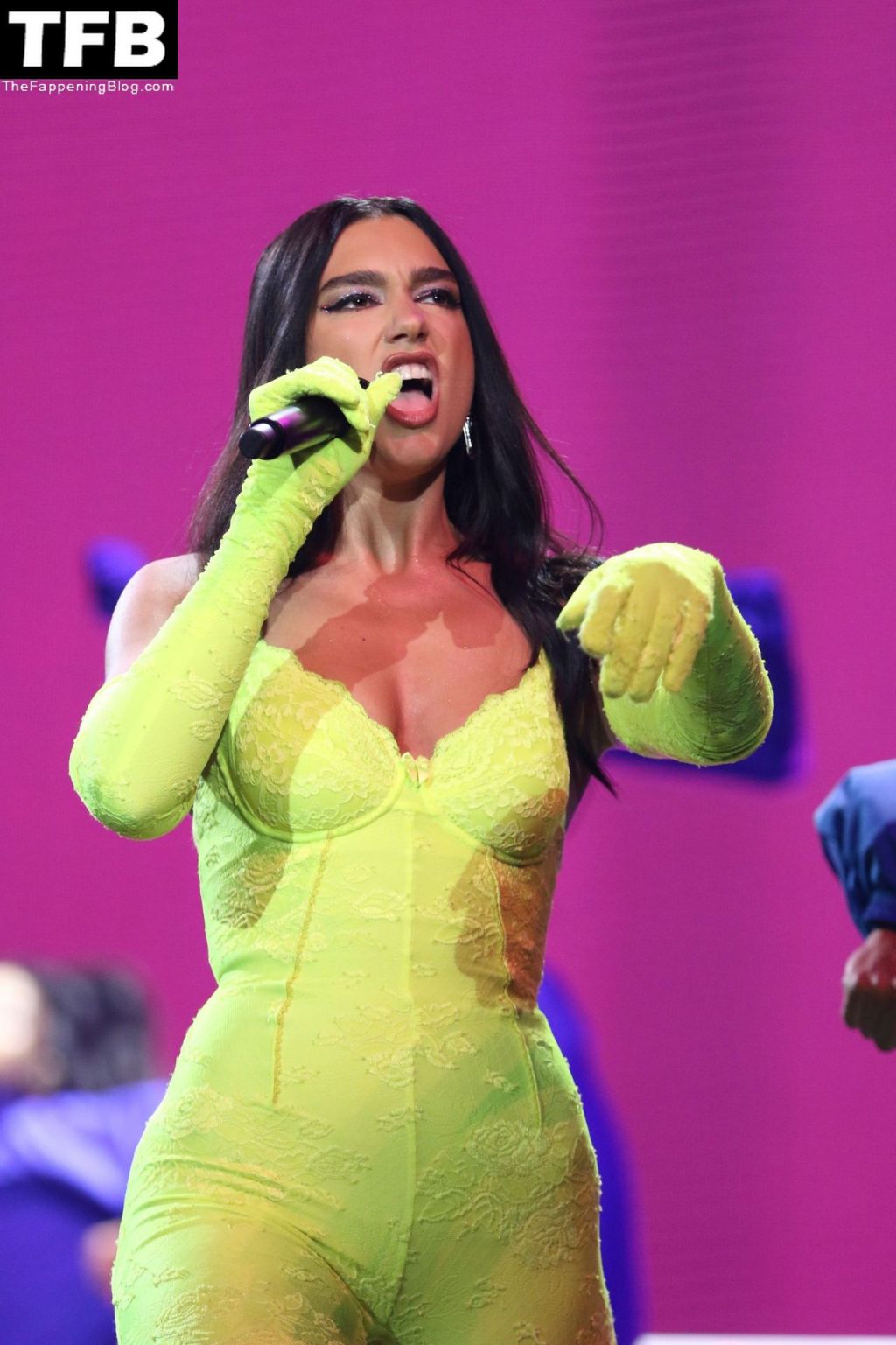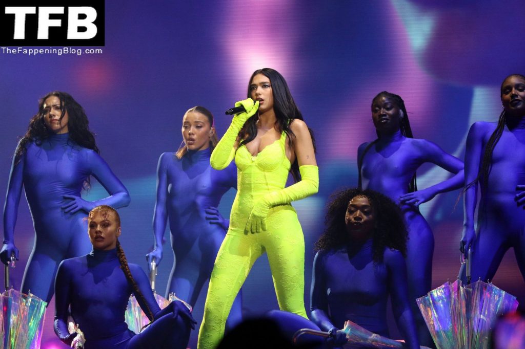 La cantante Dua Lipa si esibisce durante il Future Nostalgia Tour alla State Farm Arena di Atlanta, 13/02/2022.
