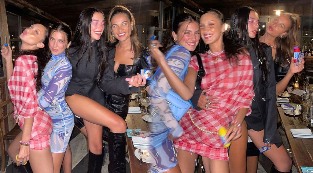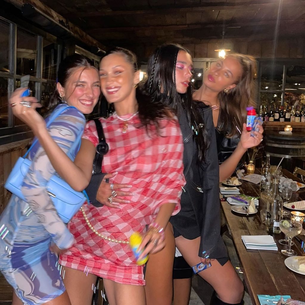 Dua Lipa mostra le sue gambe toniche in una minigonna abbinata a un blazer stravagante e stivali al ginocchio mentre posa in un campo e si gode una festa con i suoi amici (agosto 2021).