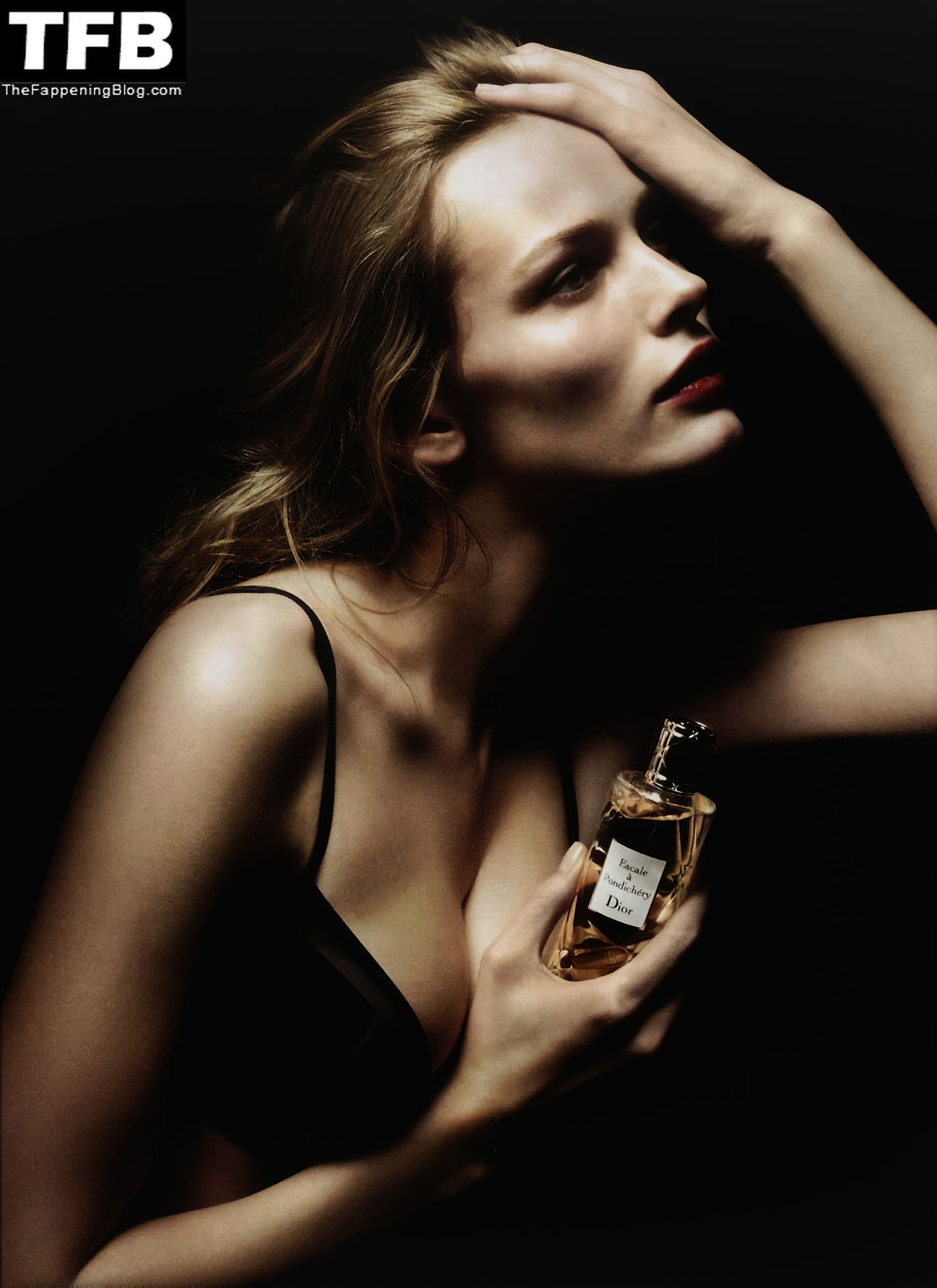 La supermodella lituana Edita Vilkevičiūtė mostra i suoi seni nudi posando in un servizio fotografico per la rivista Numéro (2009).