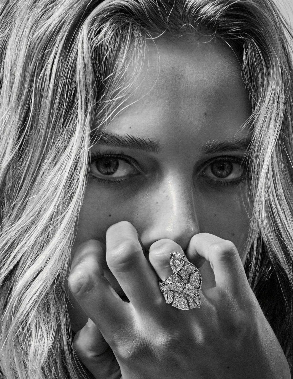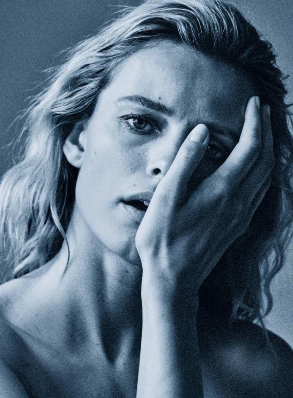 La modella lituana Edita Vilkeviciute cerca di lavare i suoi bellissimi seni in un servizio fotografico di Alique per Vogue Germania (novembre 2018).