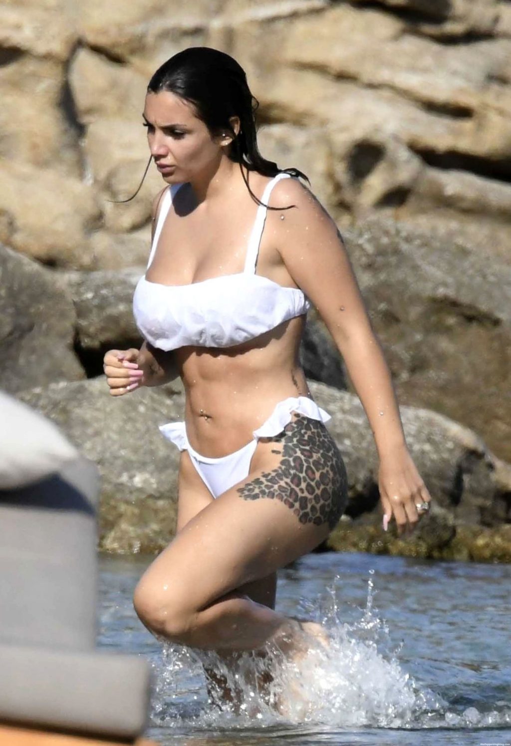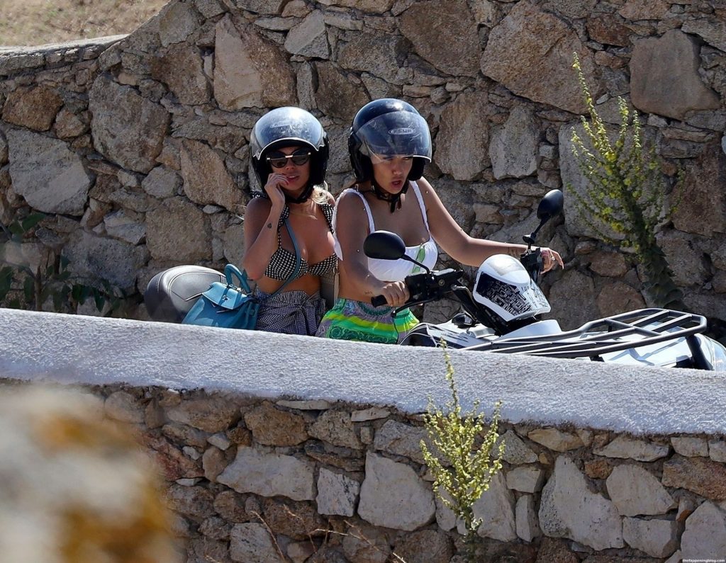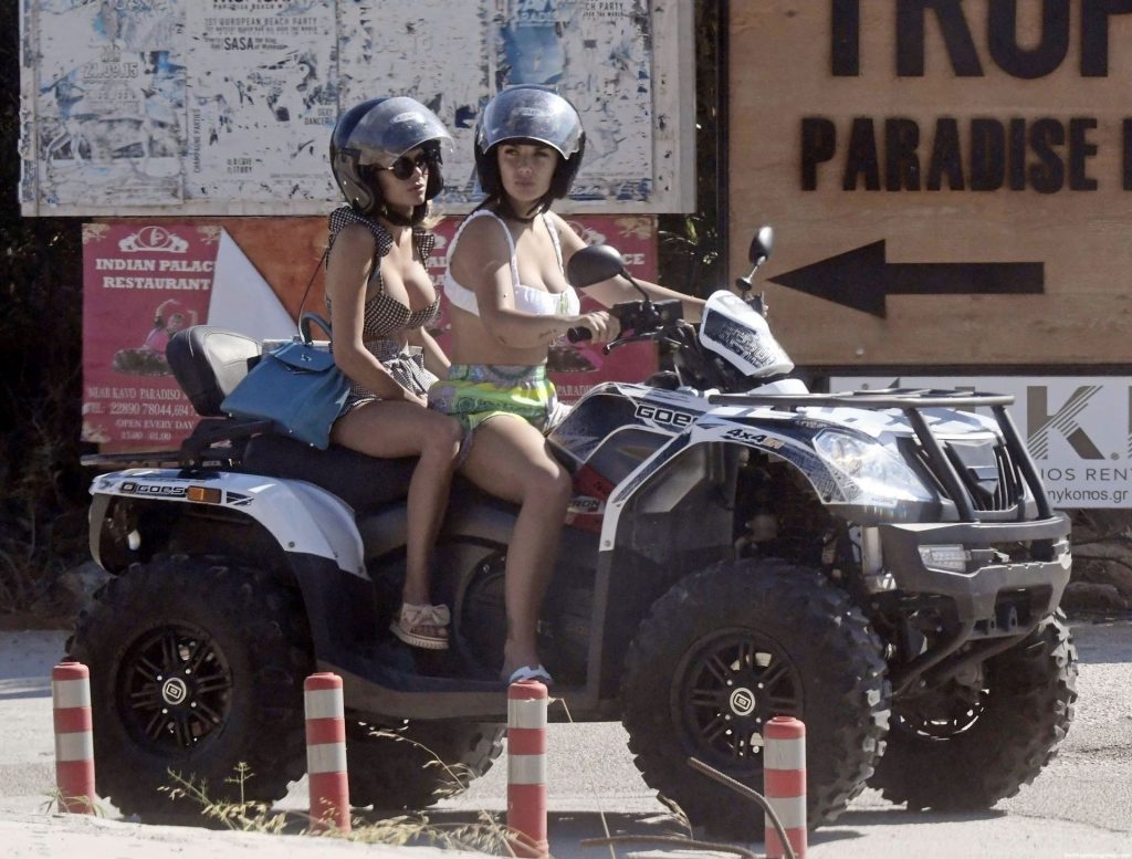 La cantante italiana Elettra Lamborghini mostra un’anteprima del suo sottoseno mentre si diverte guidando un ATV con la sua amica Ludovica Pagani a Mykonos, 15/06/2021.