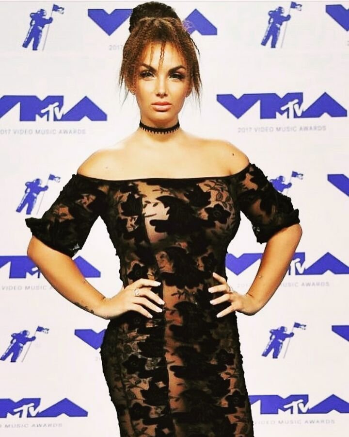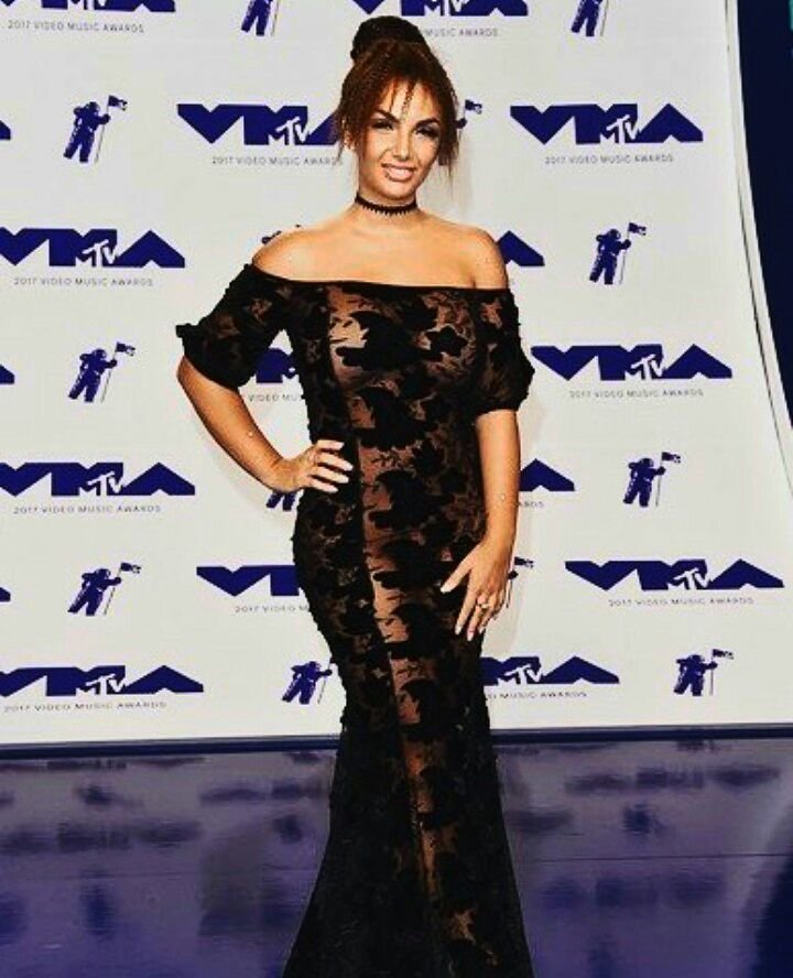 Elettra Lamborghini prosperosa indossa un abito nero trasparente agli MTV Video Music Awards a Los Angeles, 27/08/2017. Elettra Lamborghini è una modella e star della tv reality (Super Shore) dall’Italia. Età: 23 (17 maggio 1994).