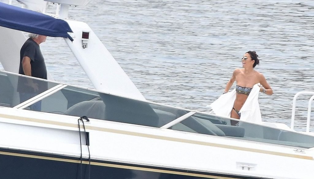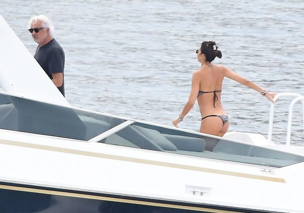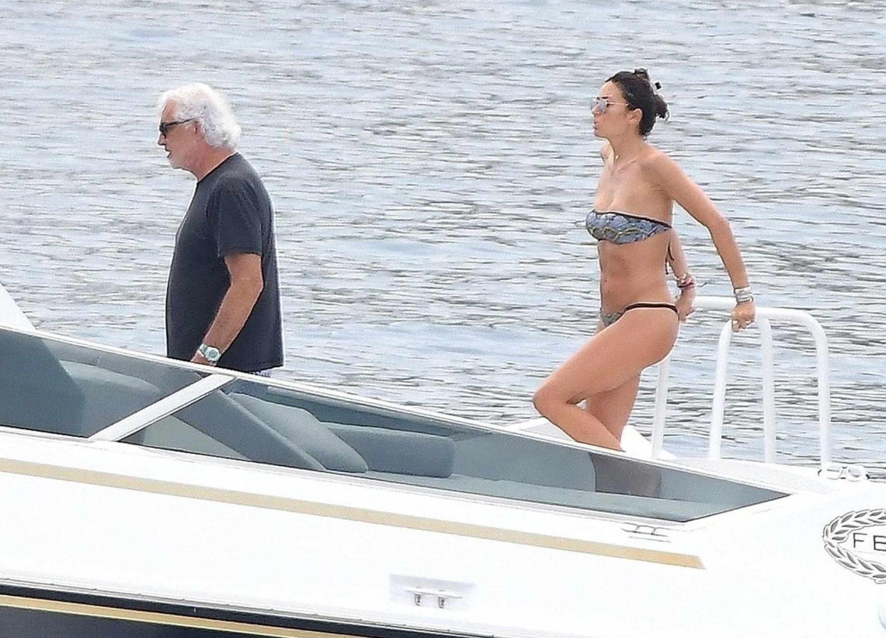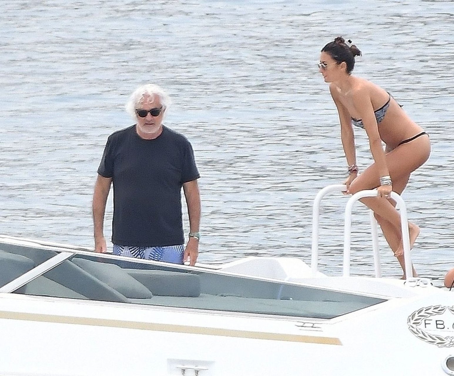 Il miliardario Flavio Briatore e la sua ex moglie Elisabetta Gregoraci con il loro figlio Falco sono stati visti mentre si godevano una giornata a bordo di uno yacht a Monaco, 14/07/2019. La coppia sembra felice di stare insieme per la prima volta dopo il divorzio.