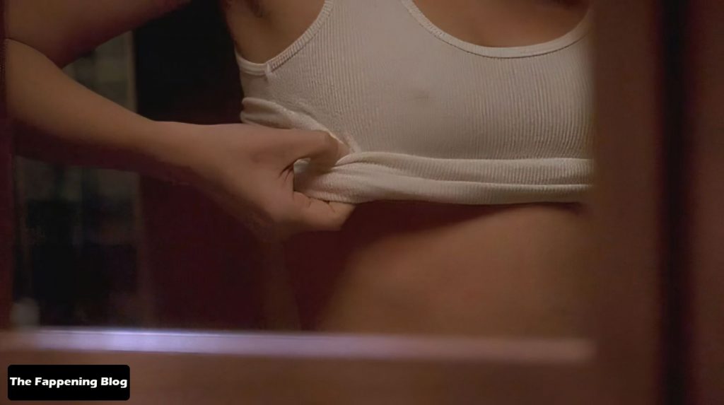 Elisha Cuthbert of “Old School” fame is doing an interview and posing in a white see-through top with a red bra underneath and then wearing a white tanktop with hard nipples during a clip from her TV show “24”.