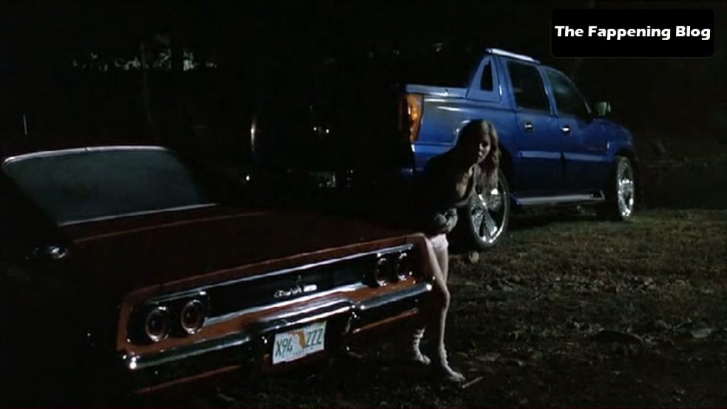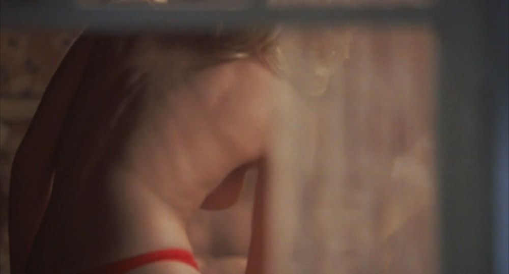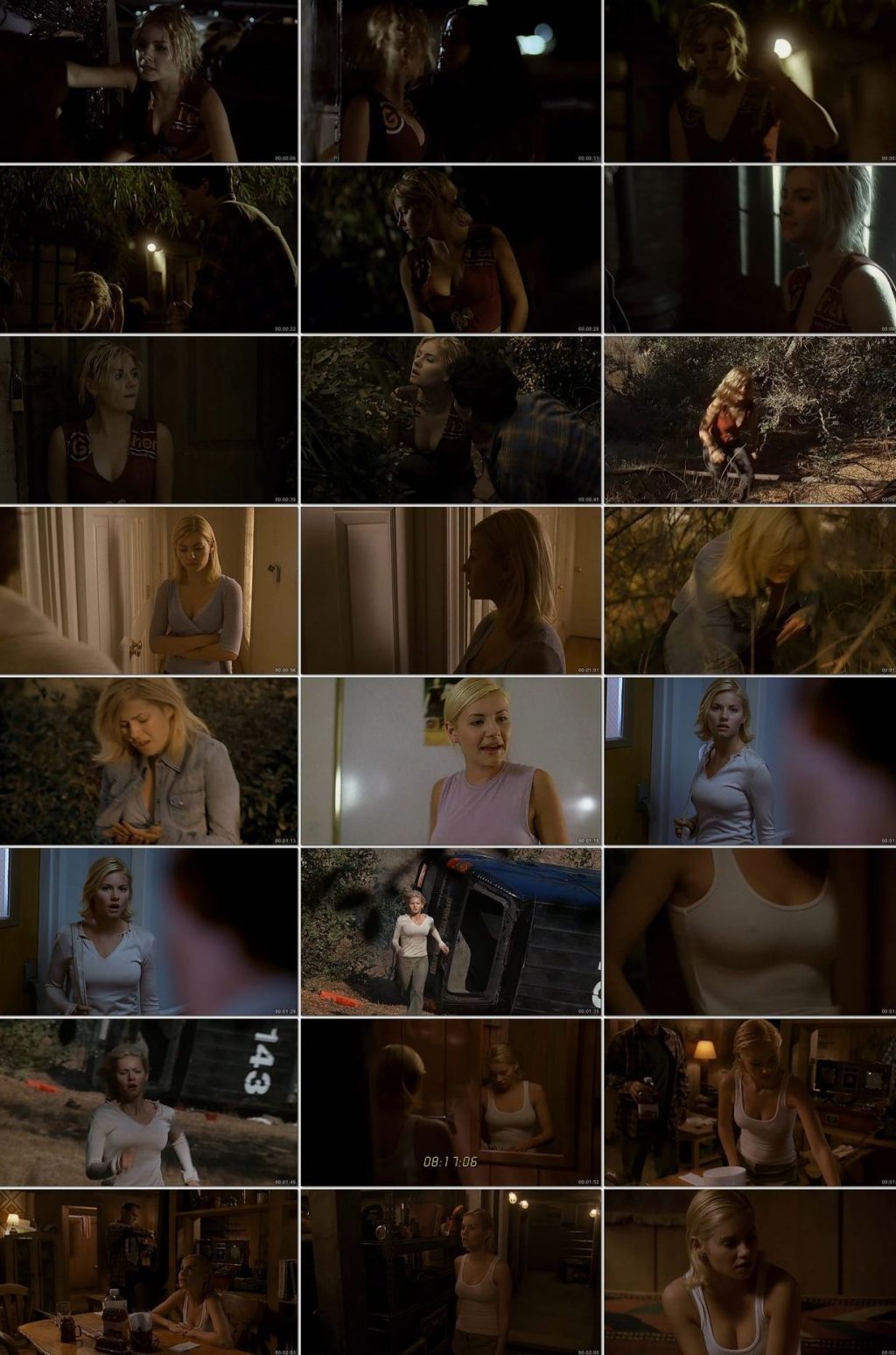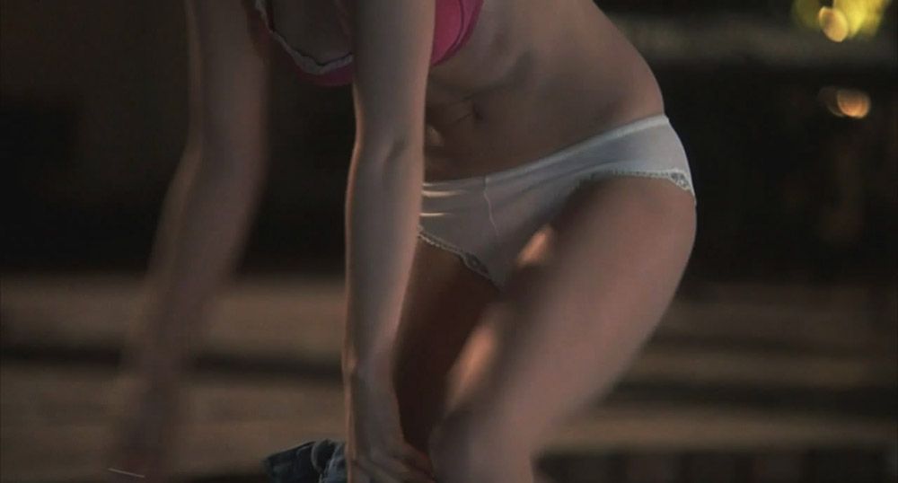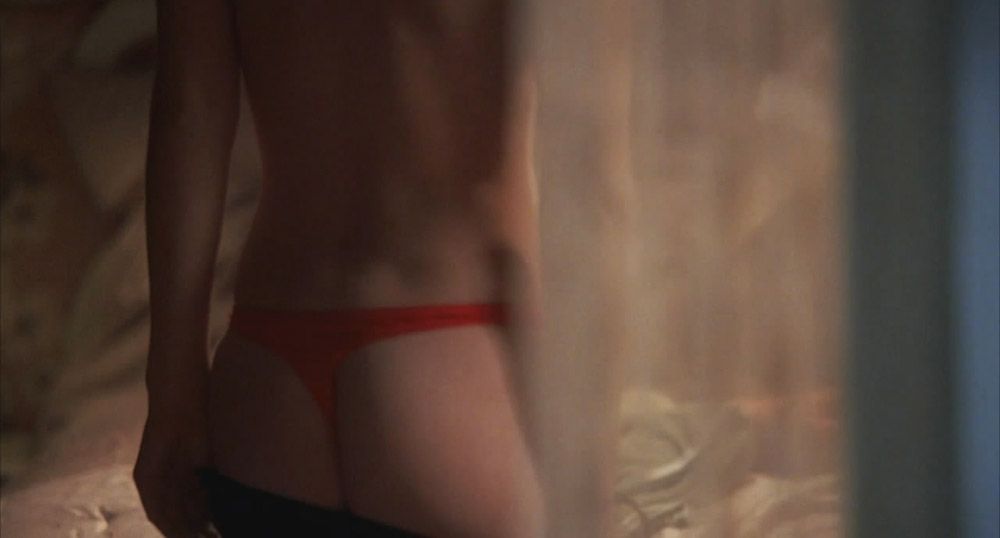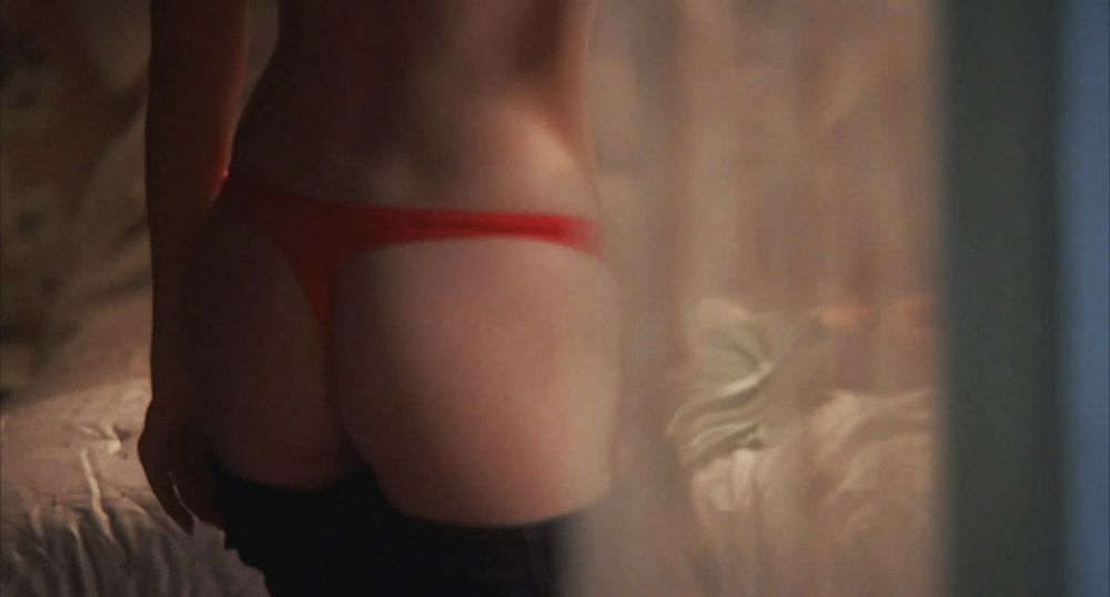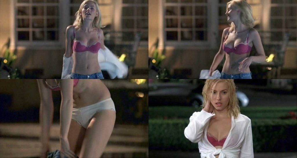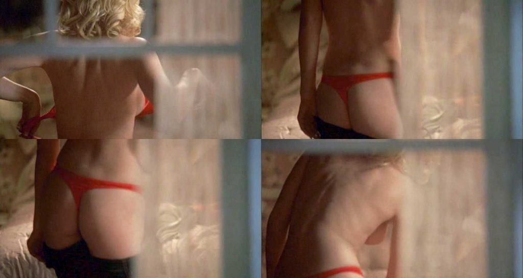 There’s Elisha Cuthbert, who was seen through the window while he was undressing. She takes off her bra to show her naked breasts and then leans over to take off her pants and show her sexy ass in red thongs.