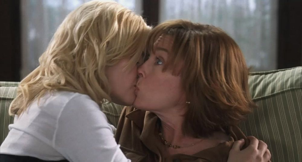In the last scene, Elisha Cuthbert wonders when Brooke Lyons grabs her. They start gay kissing each other, and then they sit in her and kiss her back.