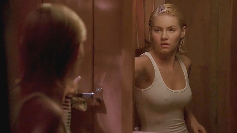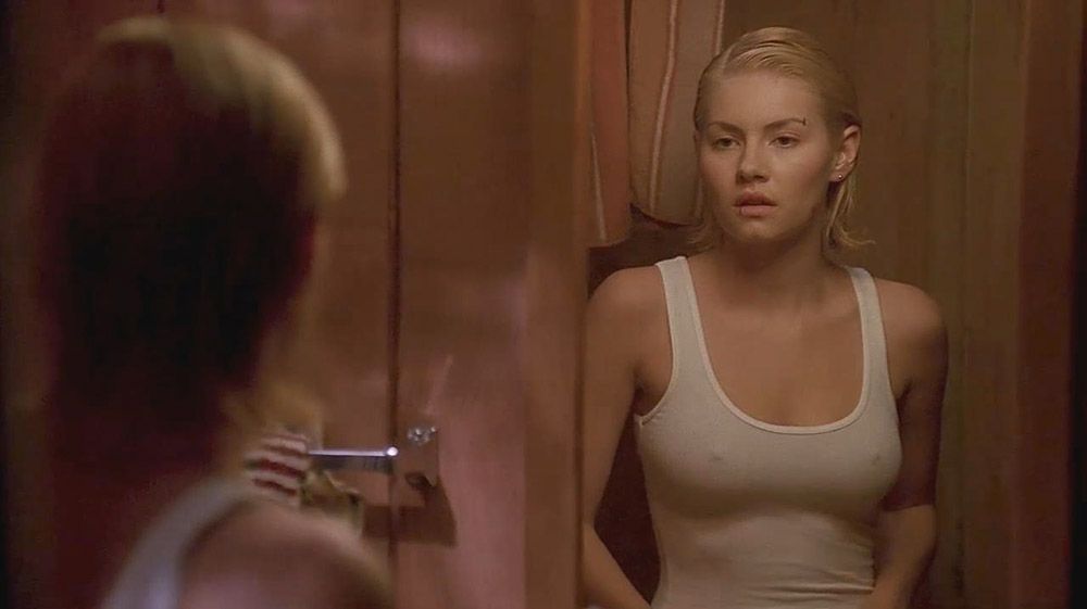 Here’s another hot scene from Elisha Cuthbert’s movie. In a white shirt, she shows her hard nipples looking at herself in the mirror. Then she comes out of the bathroom, still wearing her shirt.
