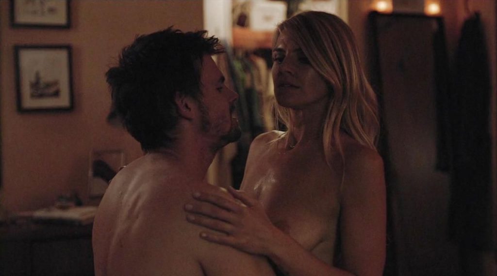 Eliza is seen having sex with a guy in a montage where we see her wearing a white tank top that lets her left nipple peek out into view when she is on her back. This alternates with footage of Eliza in the same tank top kissing the guy, this time with some pink panties on.