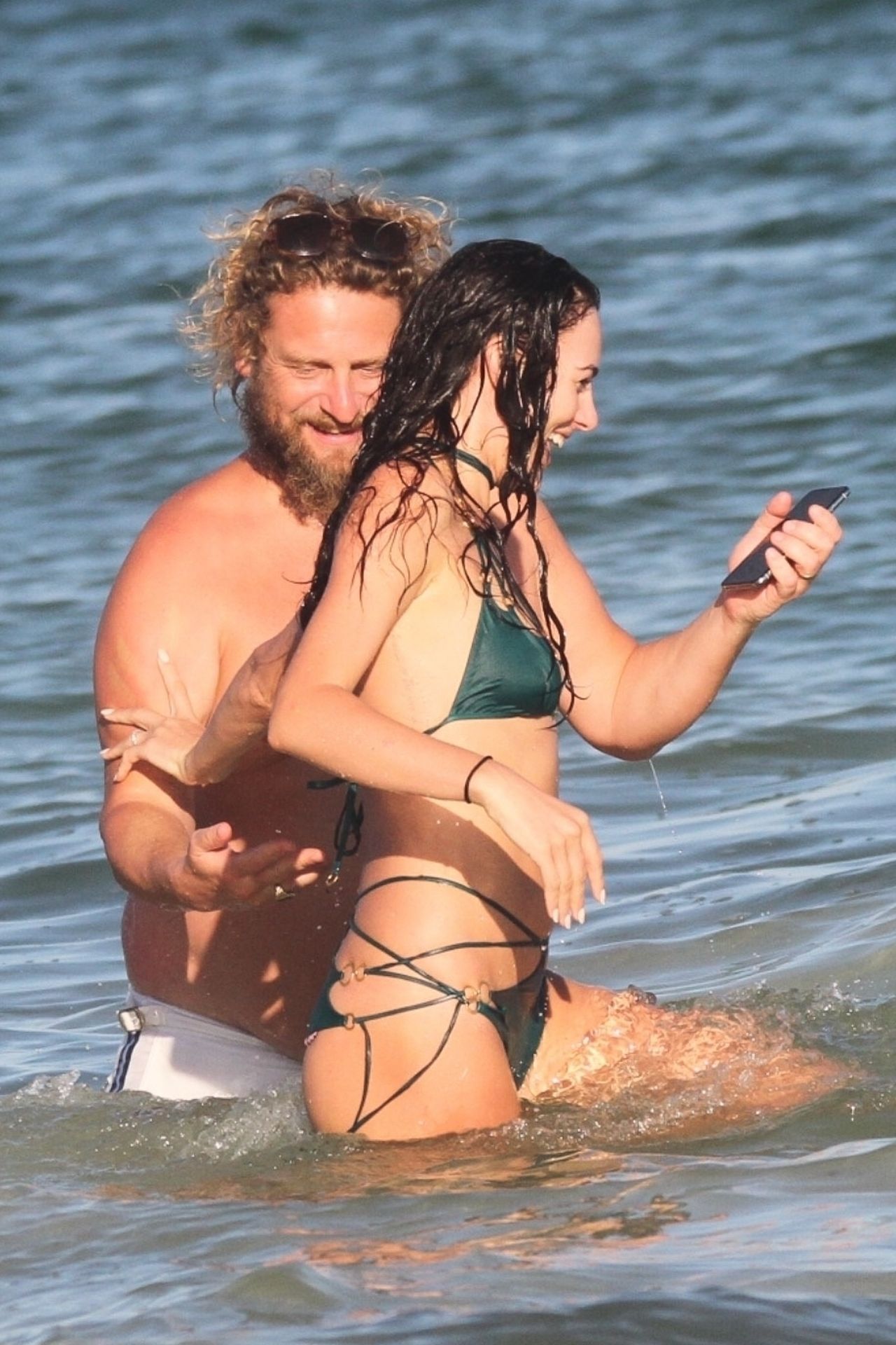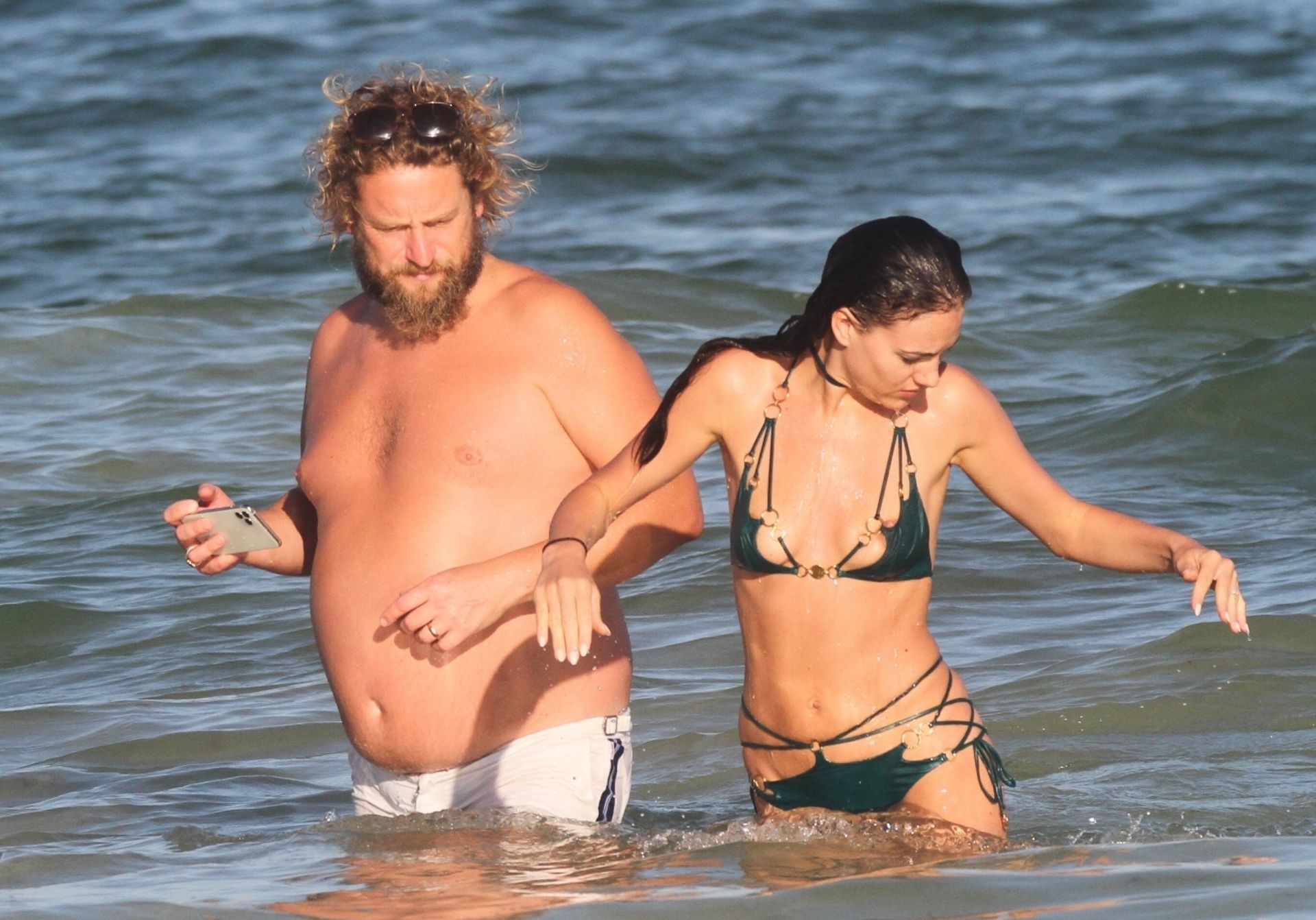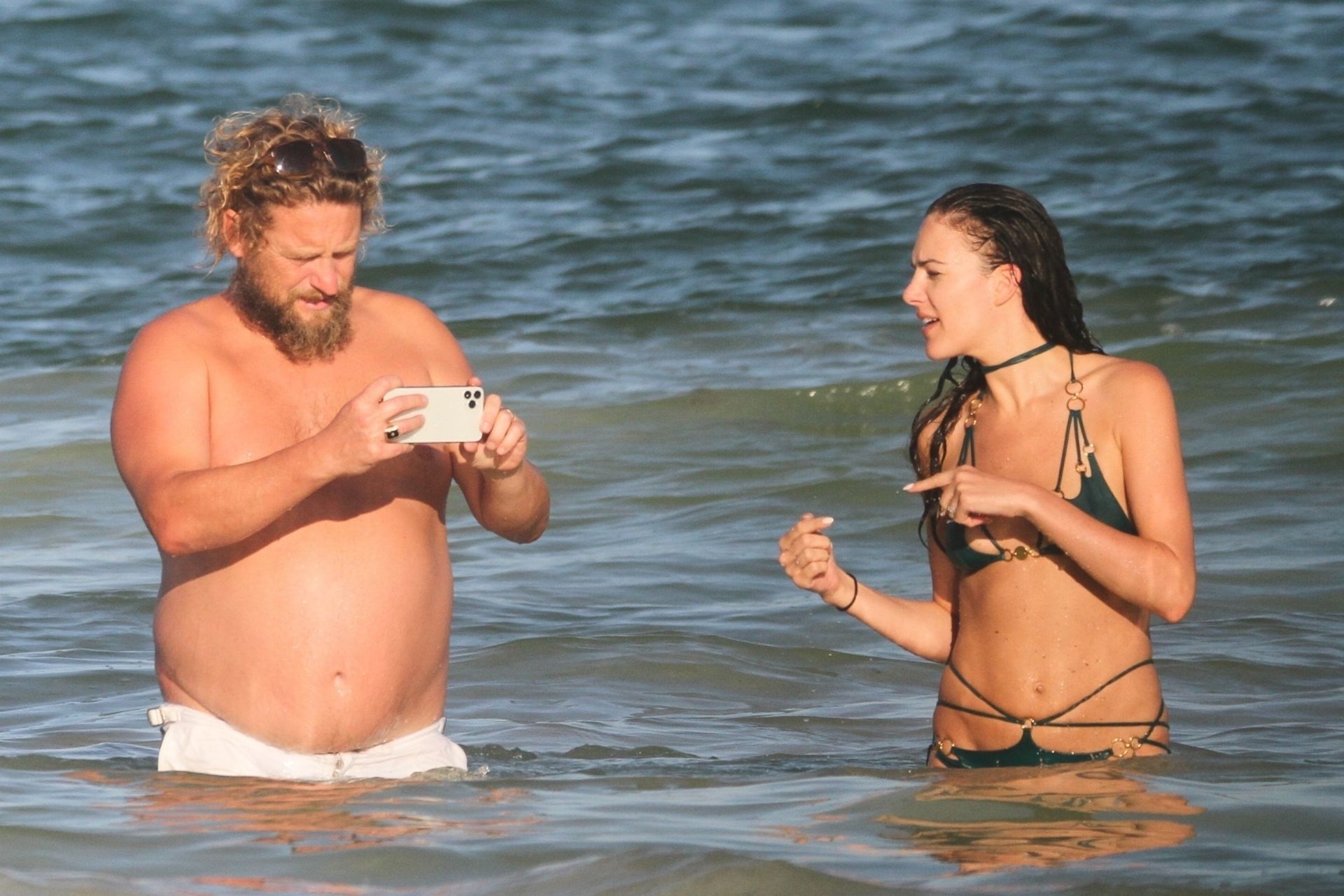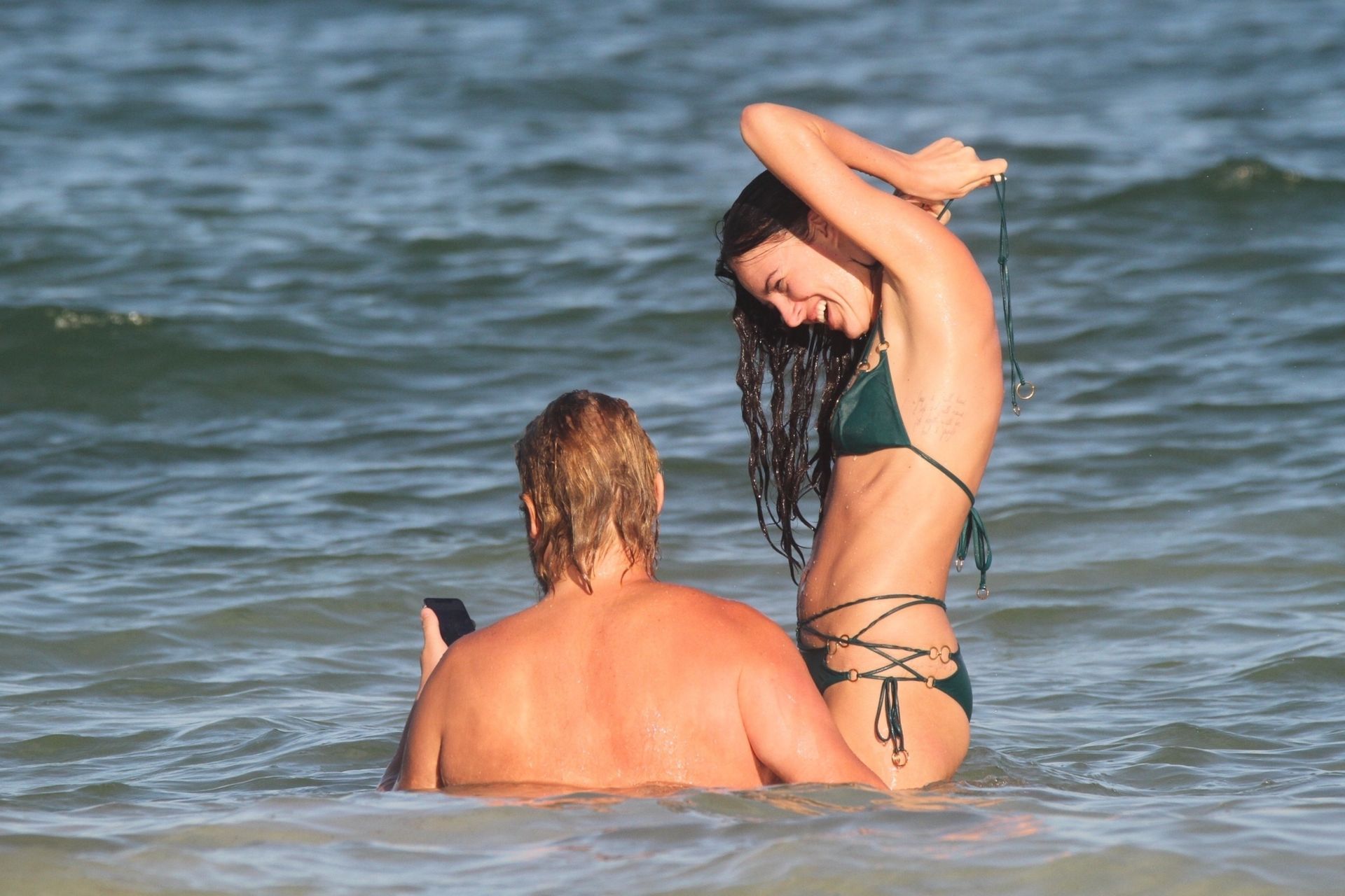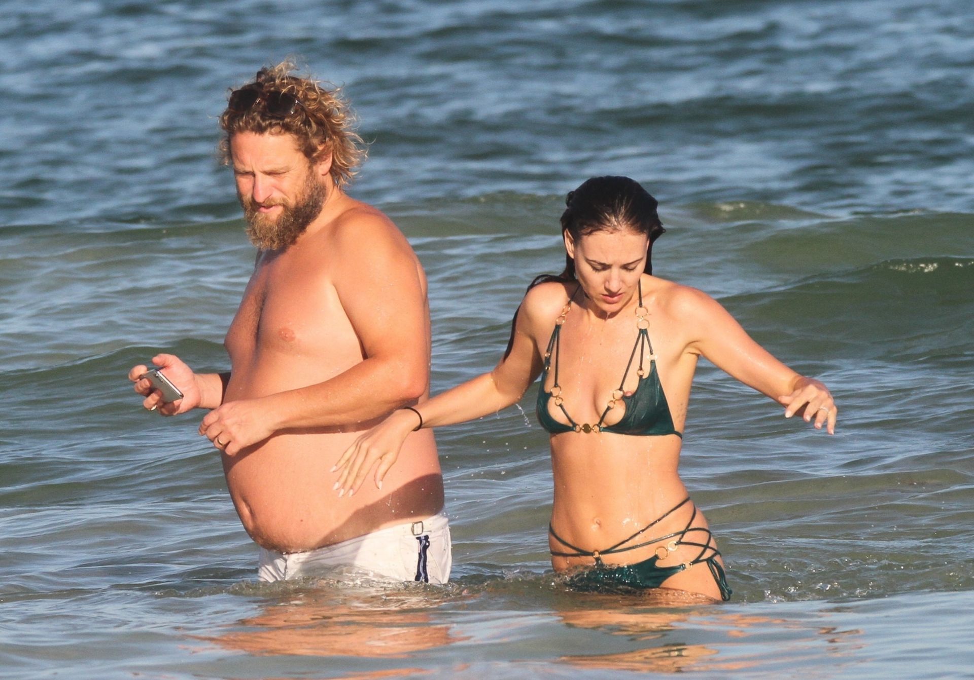 Modella Eliza Cummings e il fotografo hollywoodiano Greg Williams sono stati visti mentre si godevano la luna di miele a Tulum, Messico, il 24/11/2019. Eliza si è bagnata sulla spiaggia, indossando un minuscolo bikini verde.