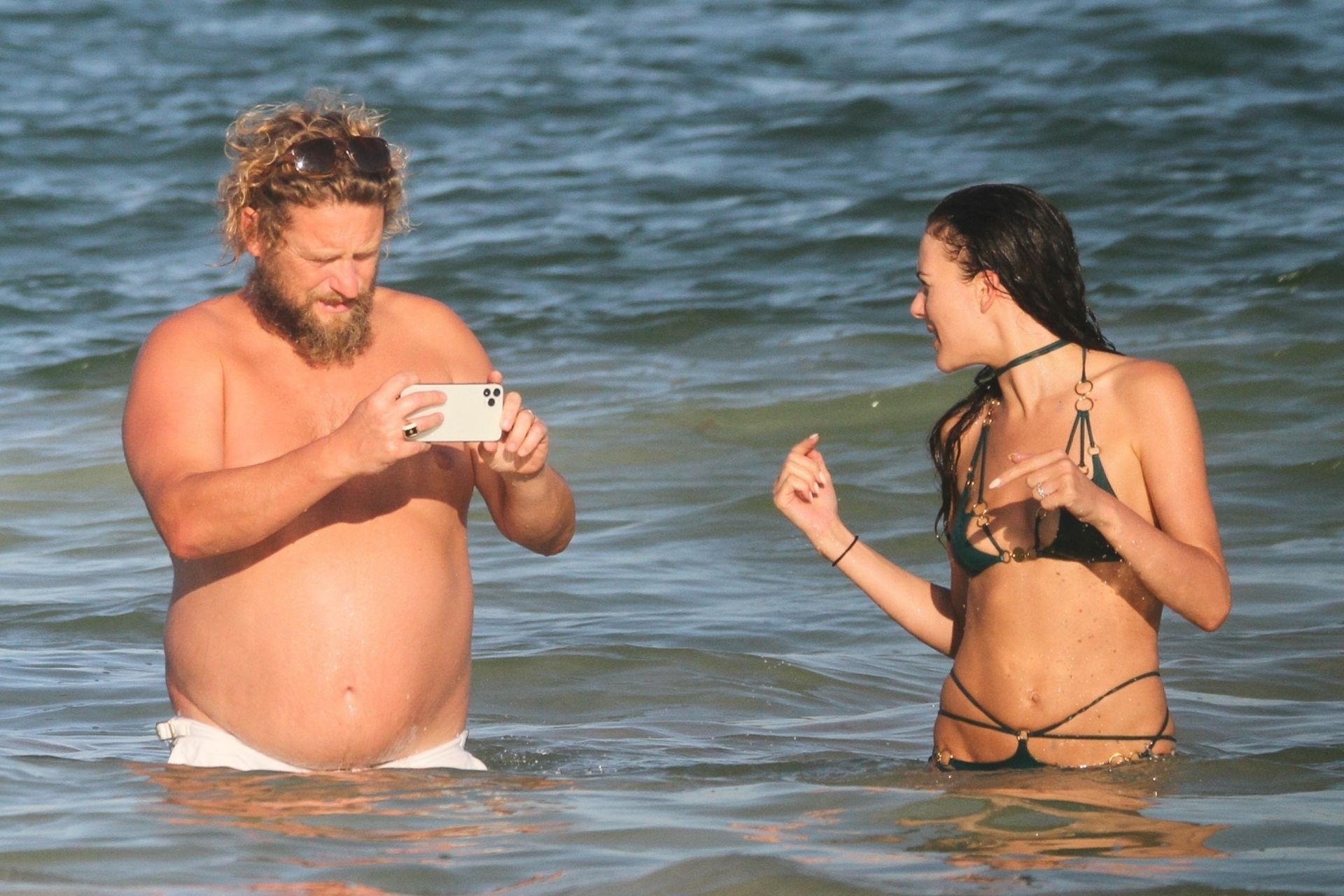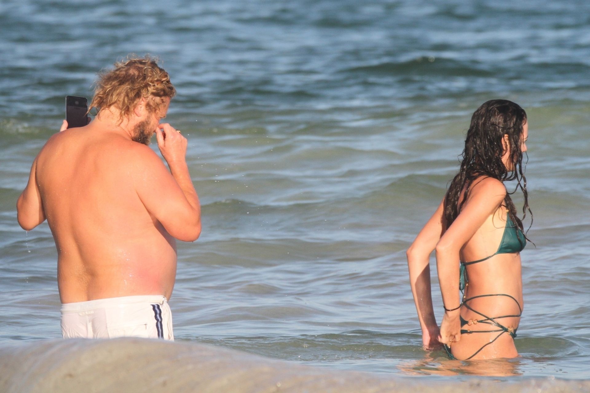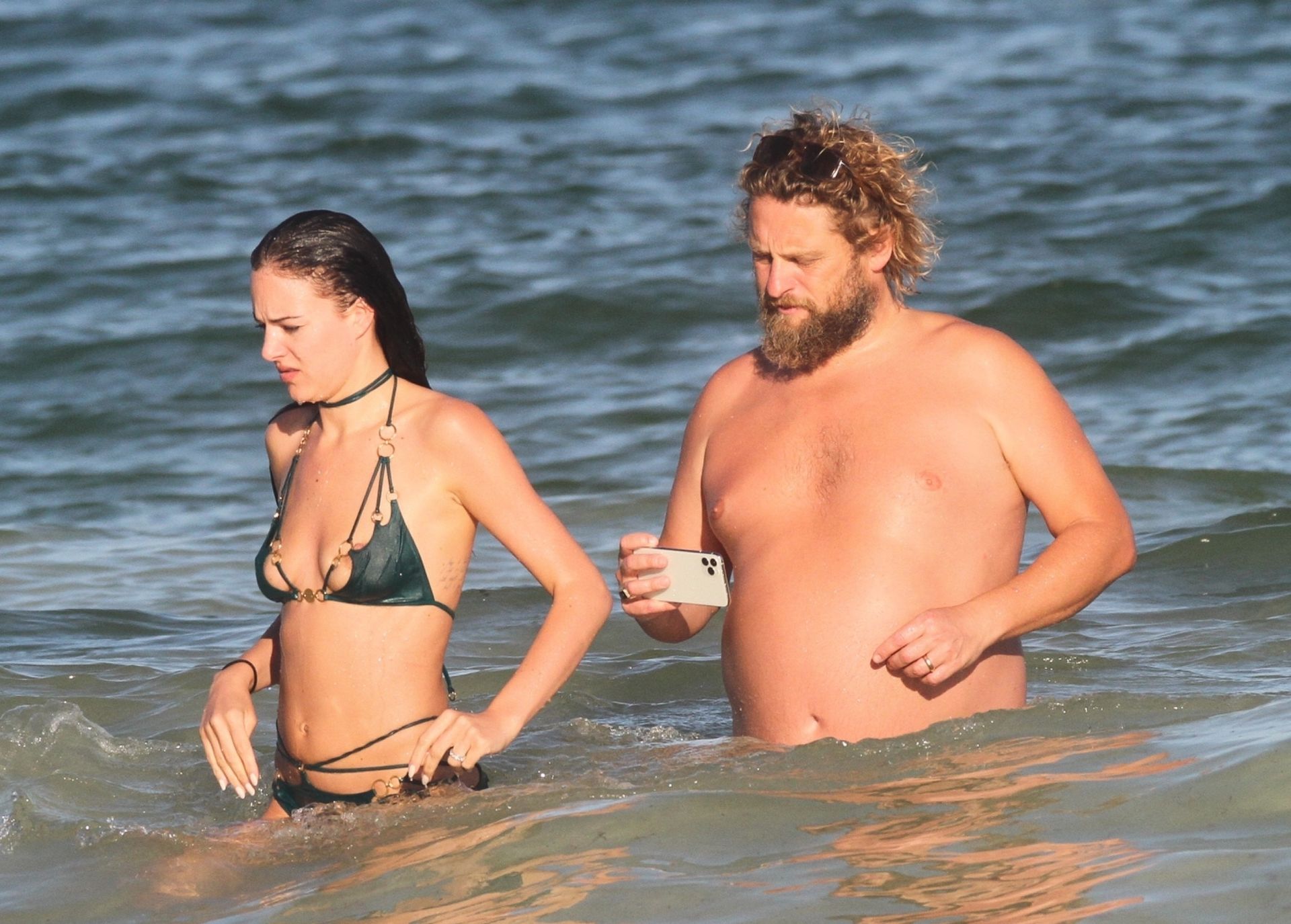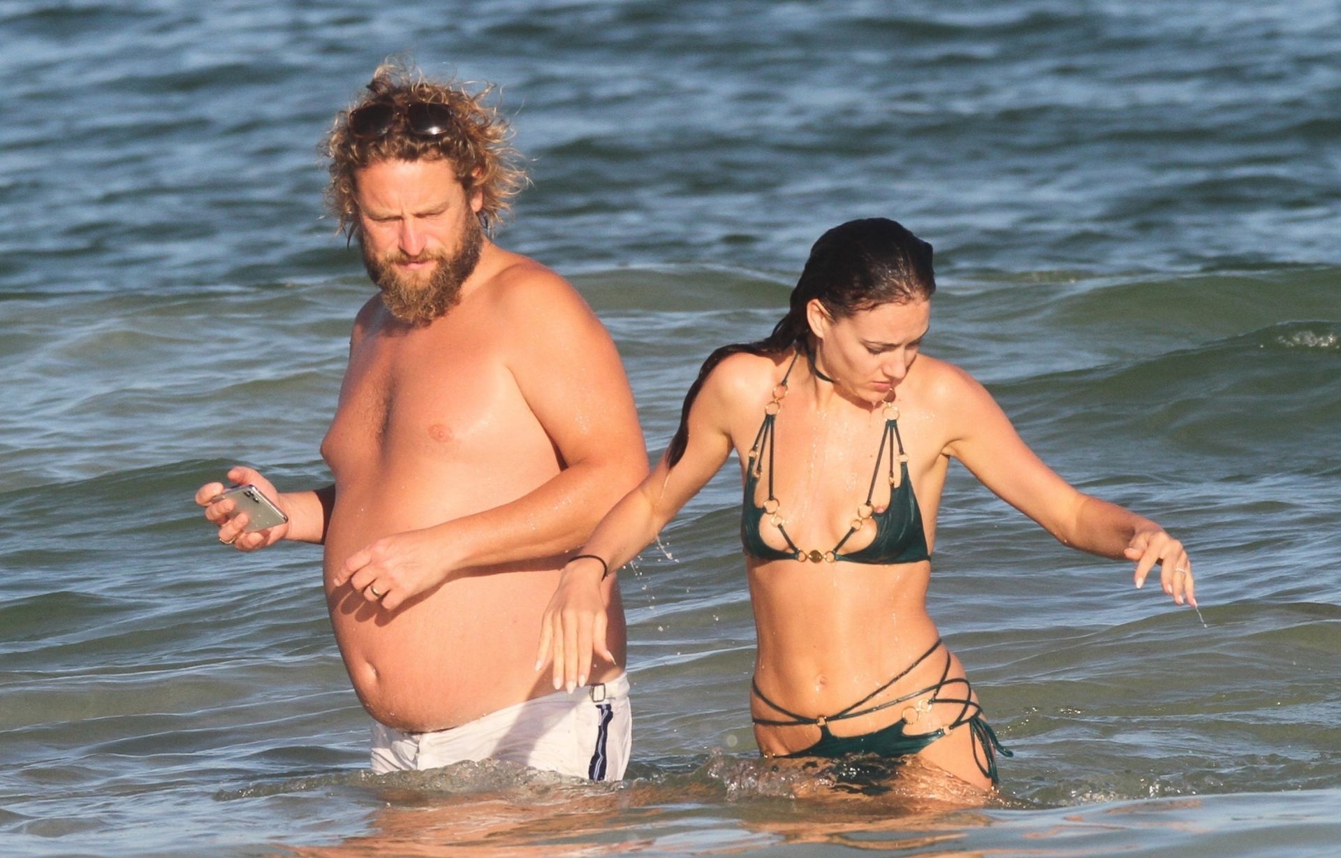 Modella Eliza Cummings e il fotografo hollywoodiano Greg Williams sono stati visti mentre si godevano la luna di miele a Tulum, Messico, il 24/11/2019. Eliza si è bagnata sulla spiaggia, indossando un minuscolo bikini verde.
