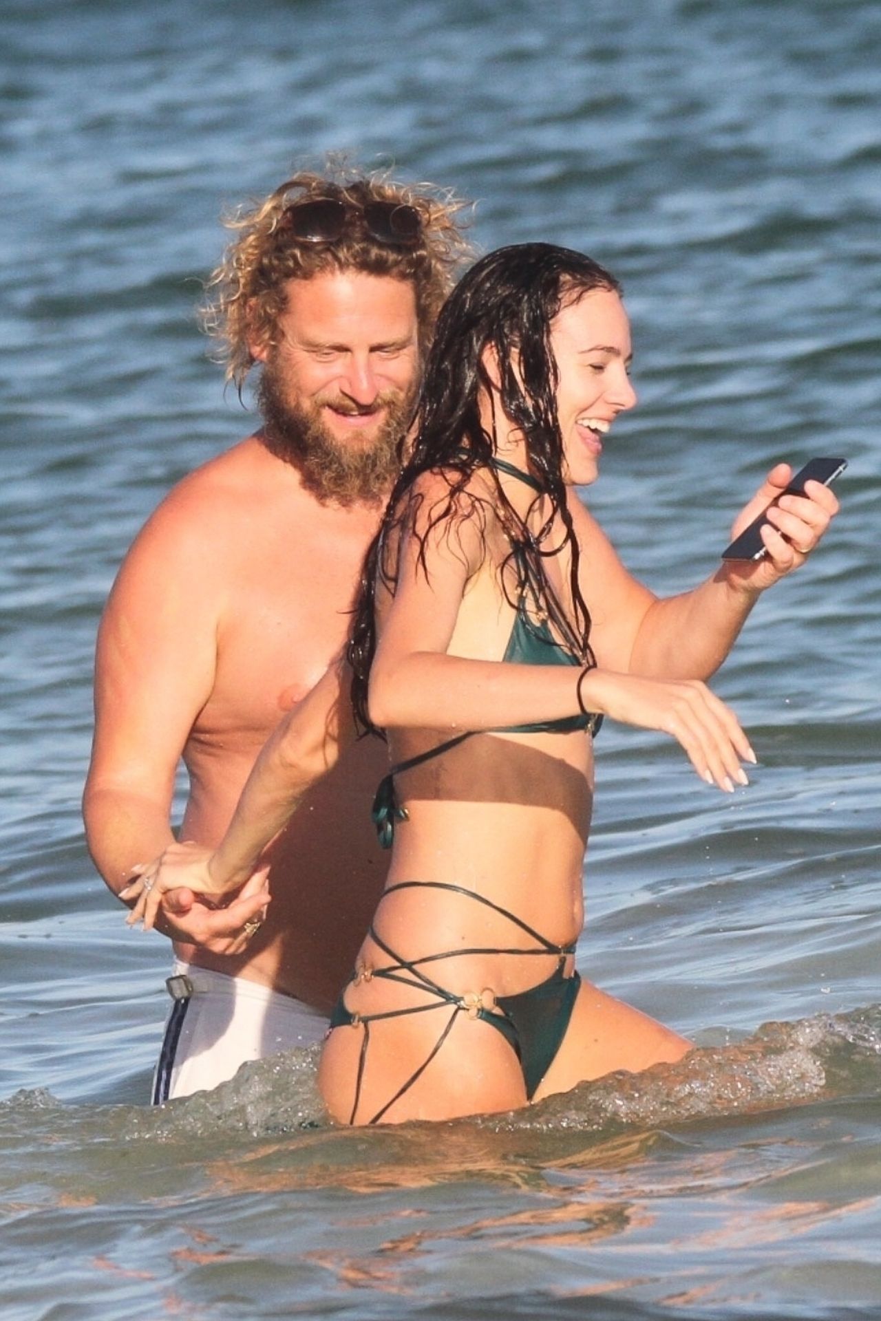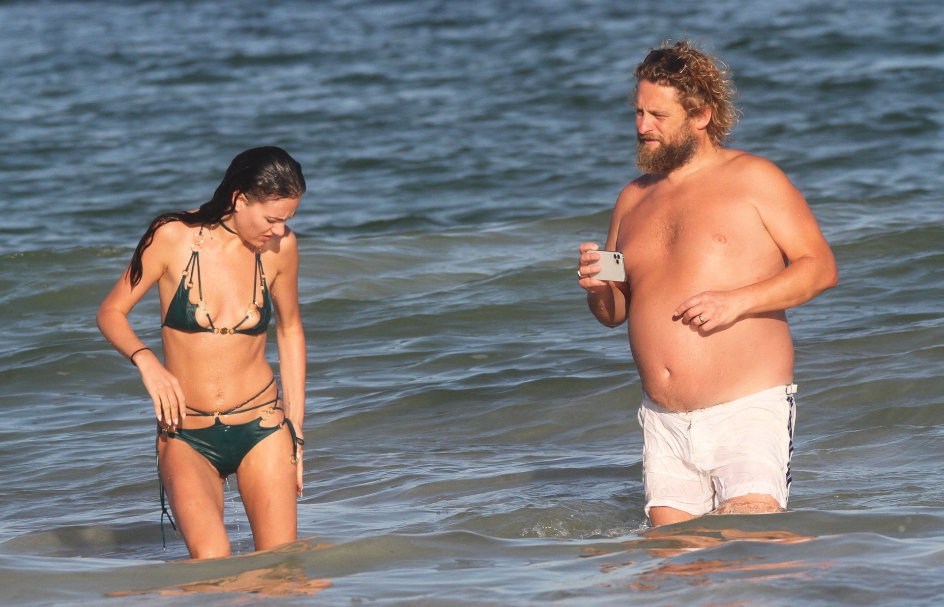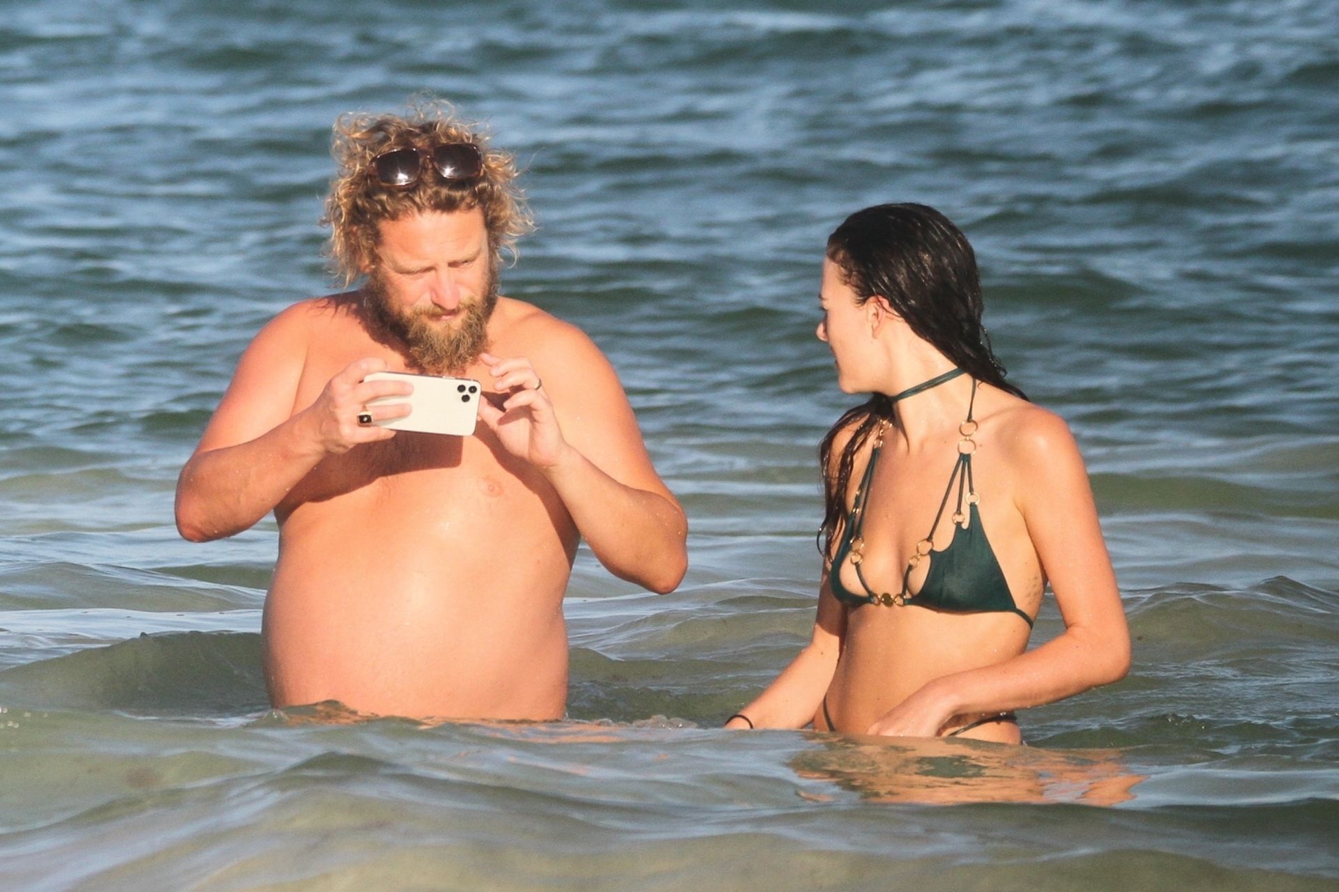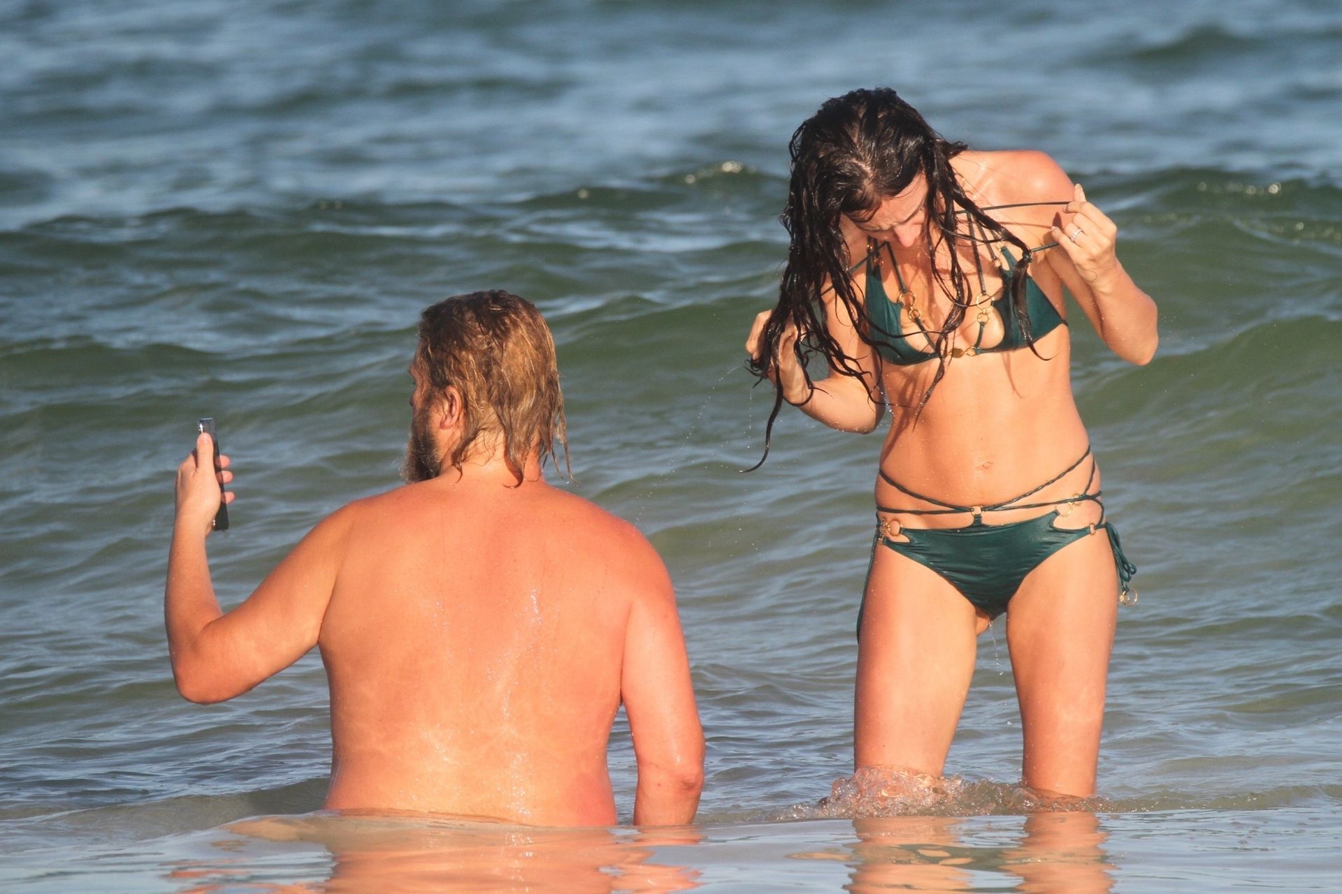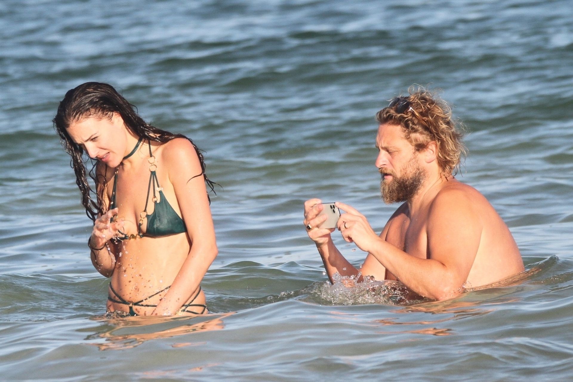 Modella Eliza Cummings e il fotografo hollywoodiano Greg Williams sono stati visti mentre si godevano la luna di miele a Tulum, Messico, il 24/11/2019. Eliza si è bagnata sulla spiaggia, indossando un minuscolo bikini verde.