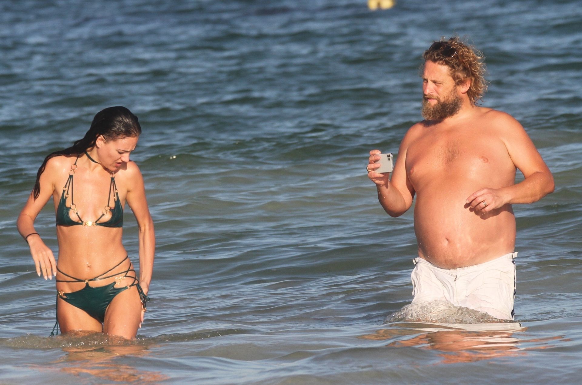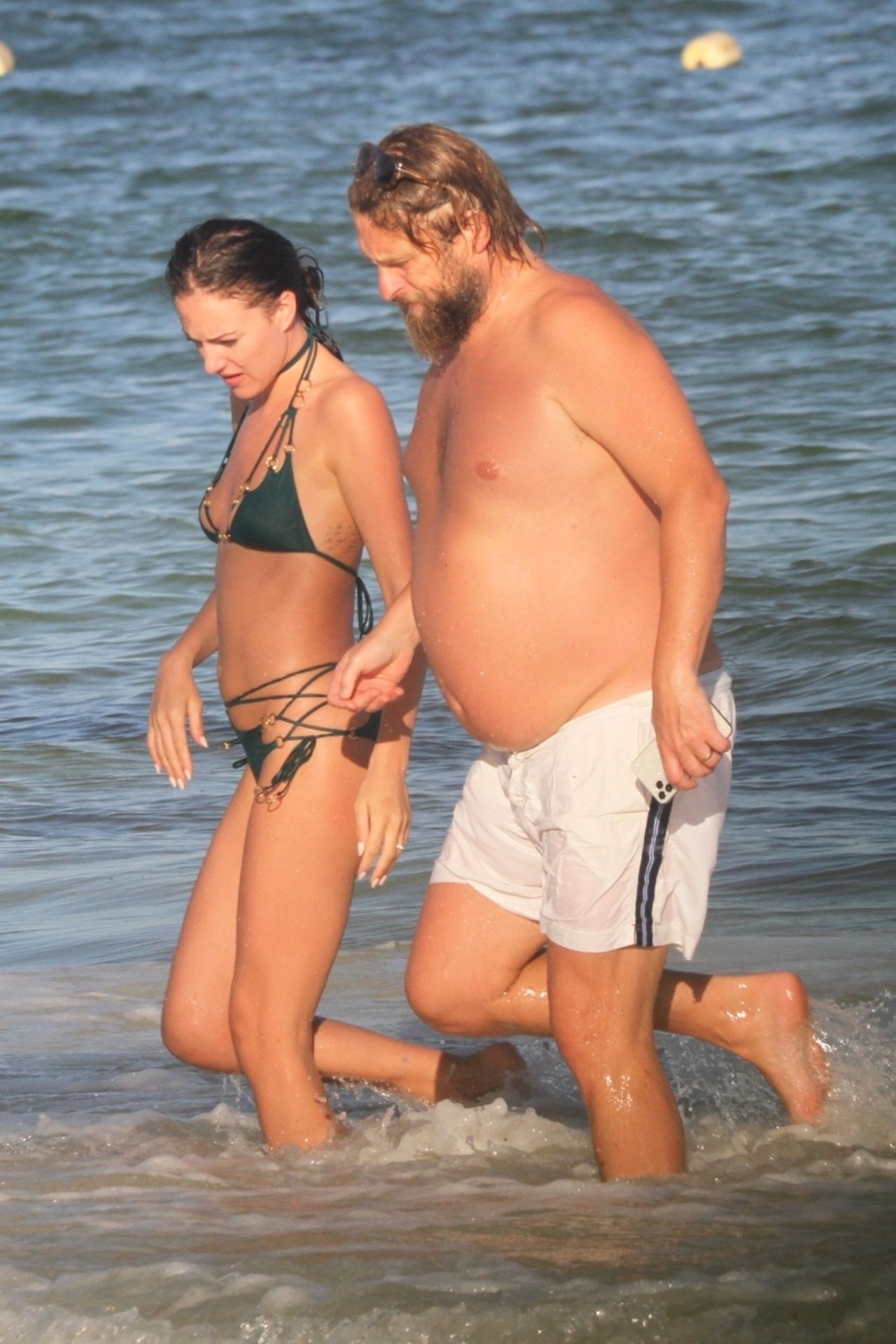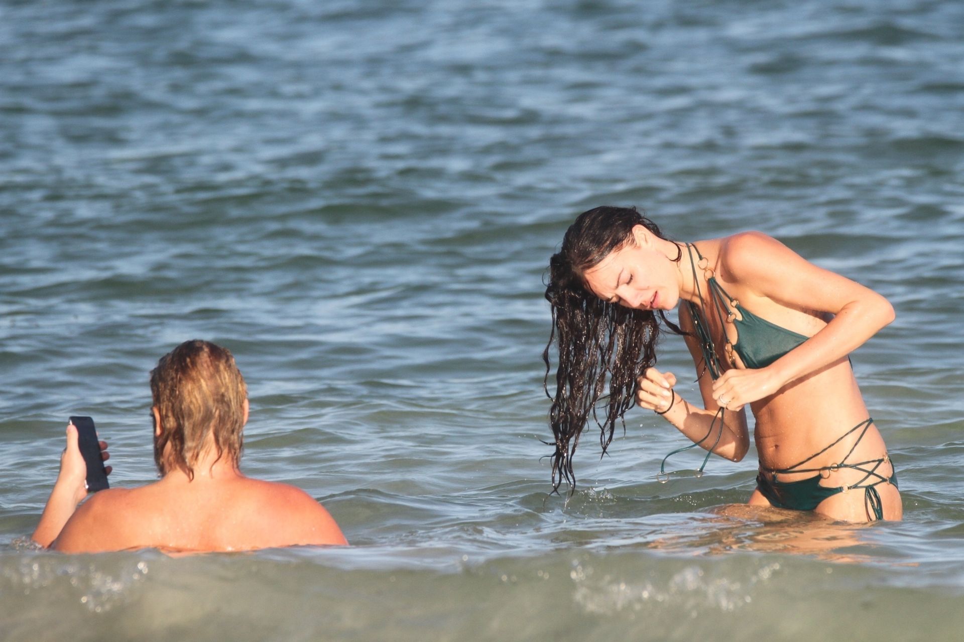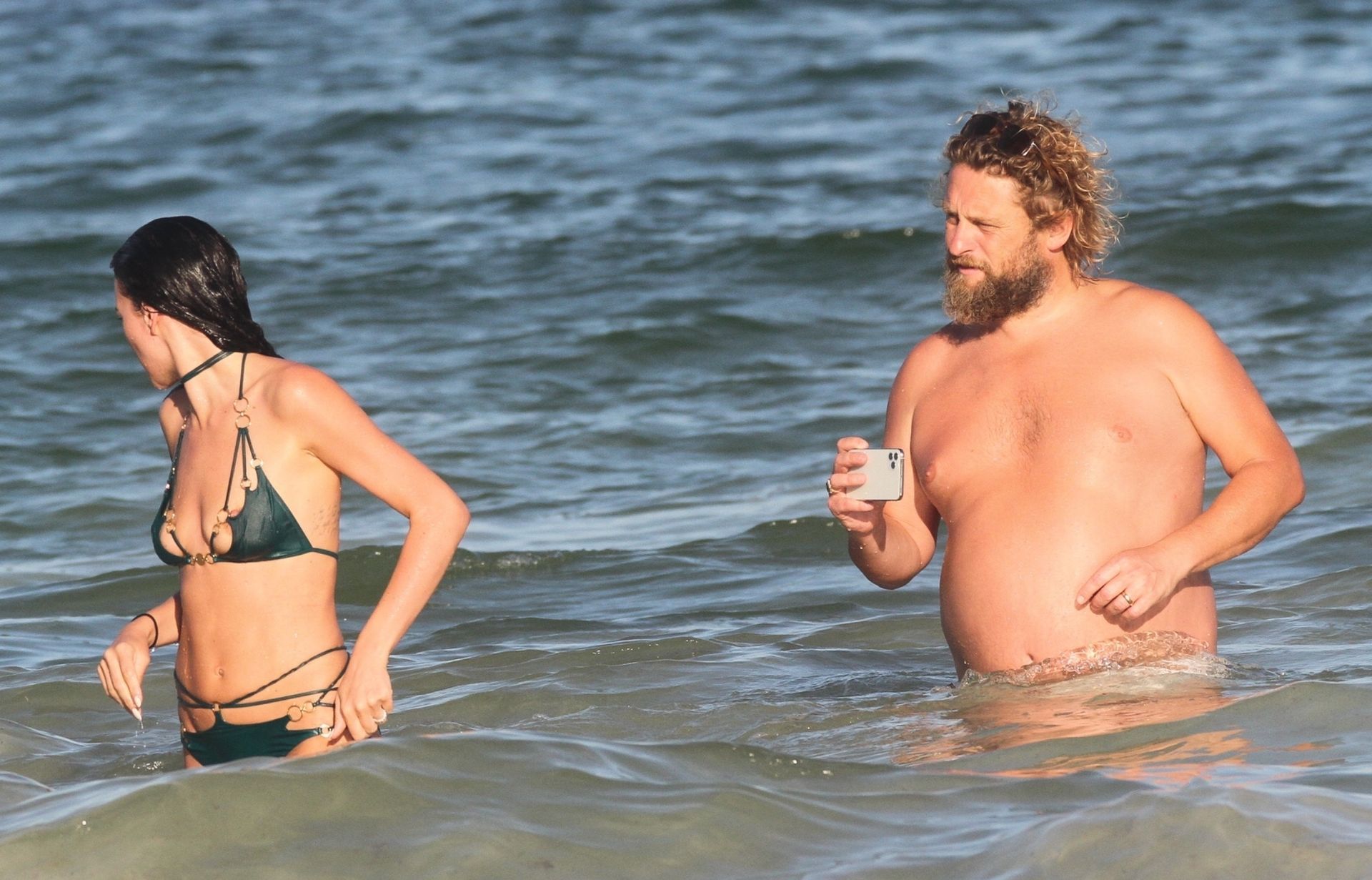 Modella Eliza Cummings e il fotografo hollywoodiano Greg Williams sono stati visti mentre si godevano la luna di miele a Tulum, Messico, il 24/11/2019. Eliza si è bagnata sulla spiaggia, indossando un minuscolo bikini verde.