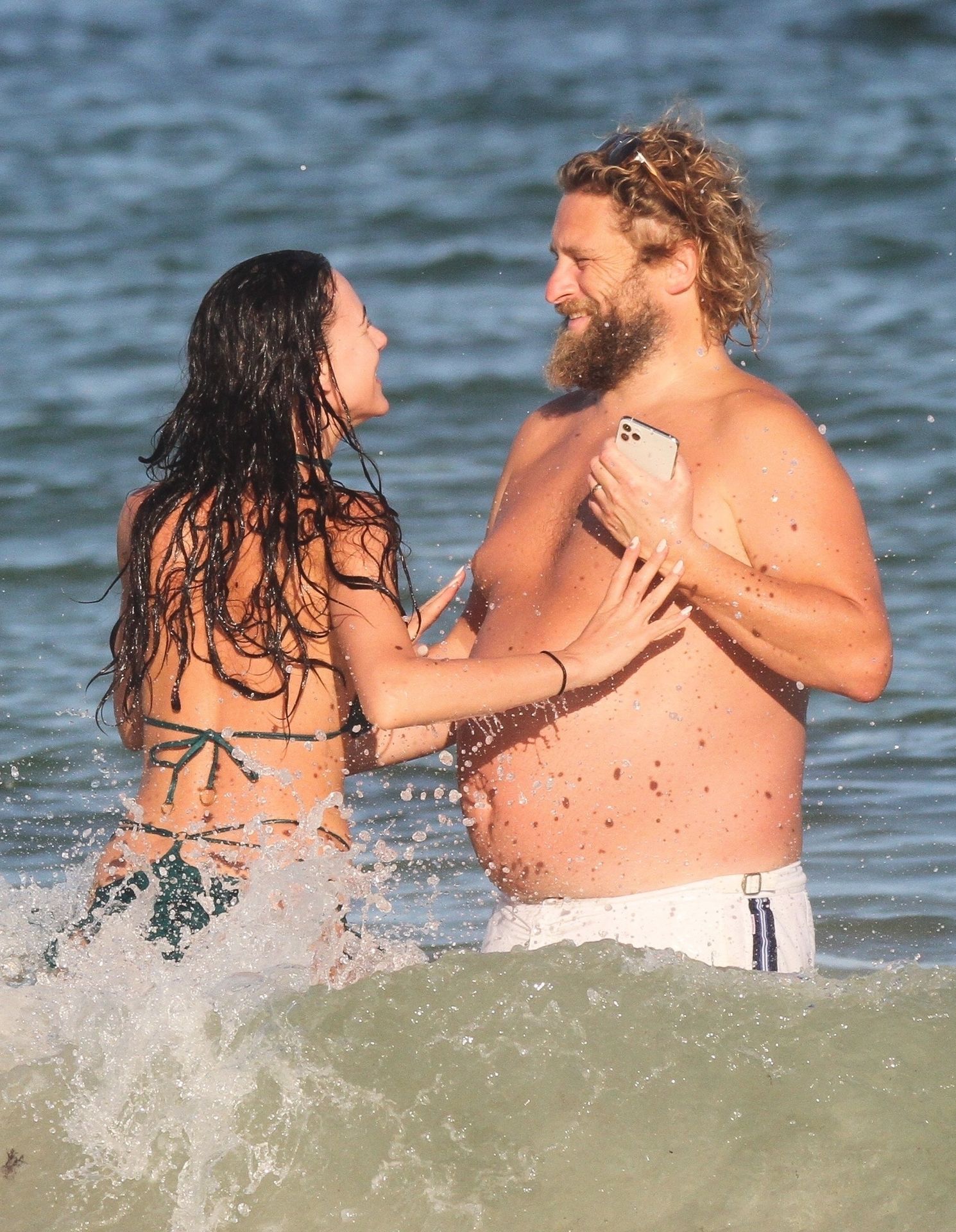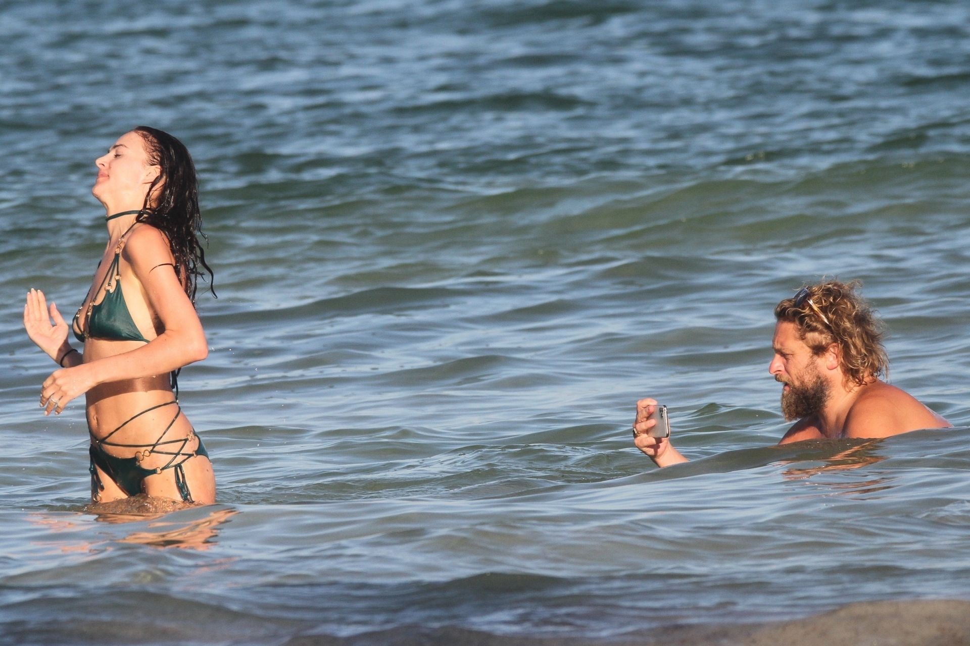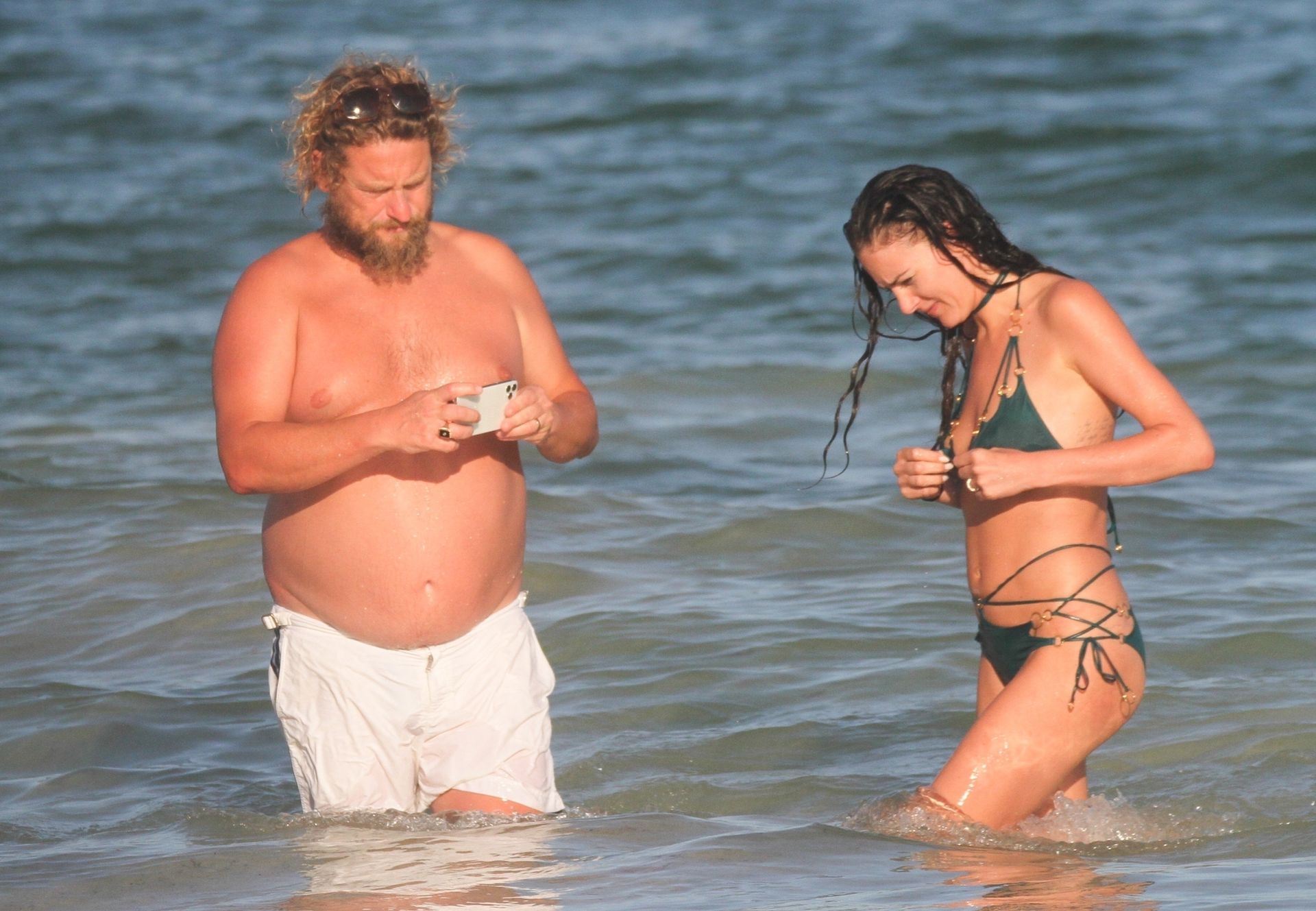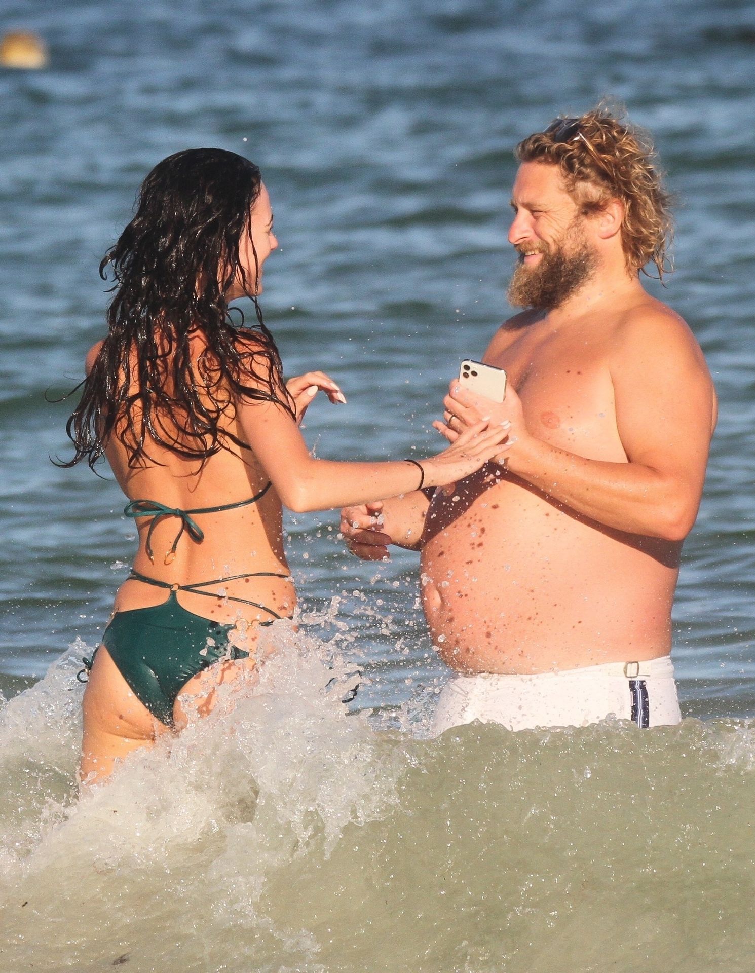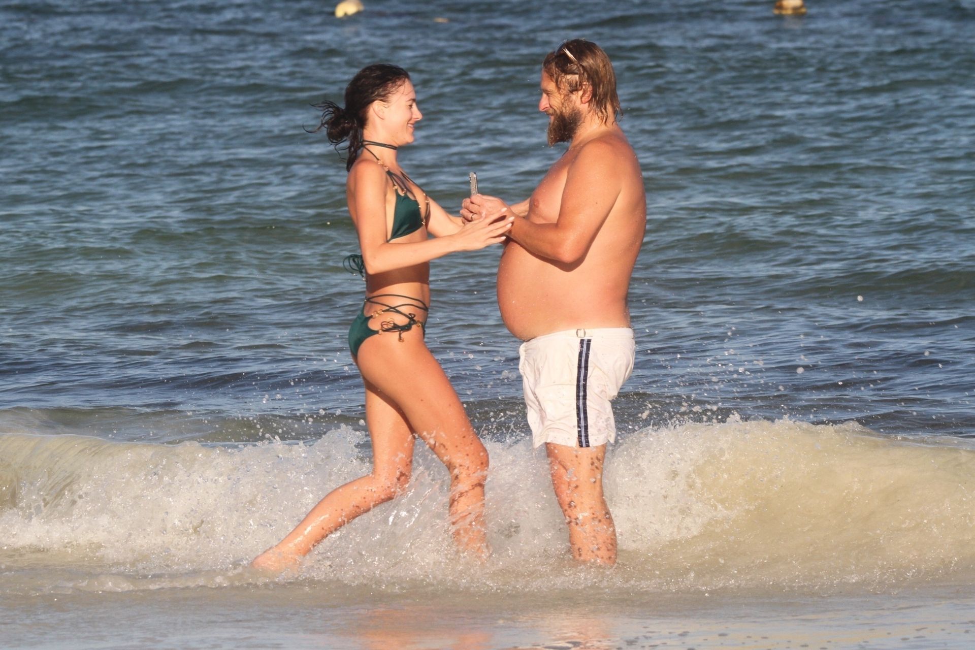 Modella Eliza Cummings e il fotografo hollywoodiano Greg Williams sono stati visti mentre si godevano la luna di miele a Tulum, Messico, il 24/11/2019. Eliza si è bagnata sulla spiaggia, indossando un minuscolo bikini verde.