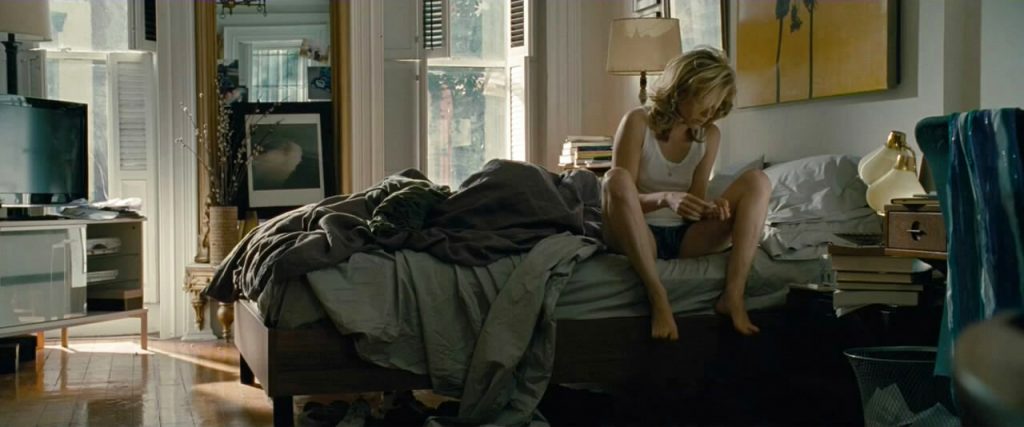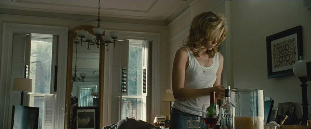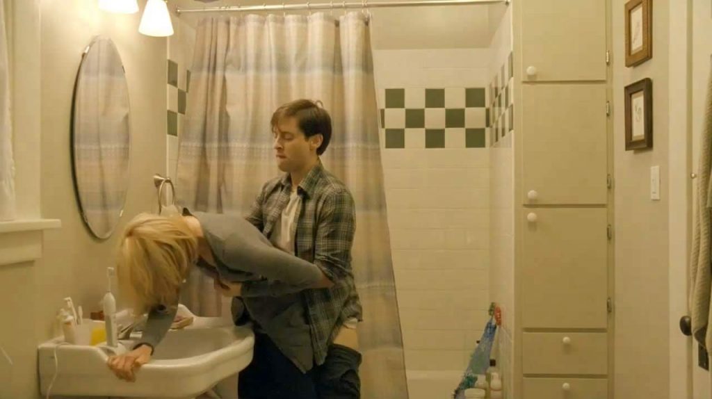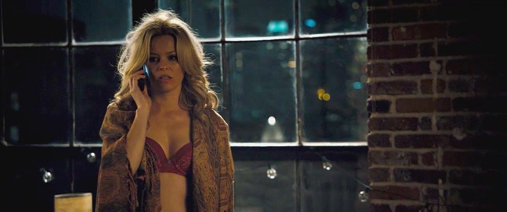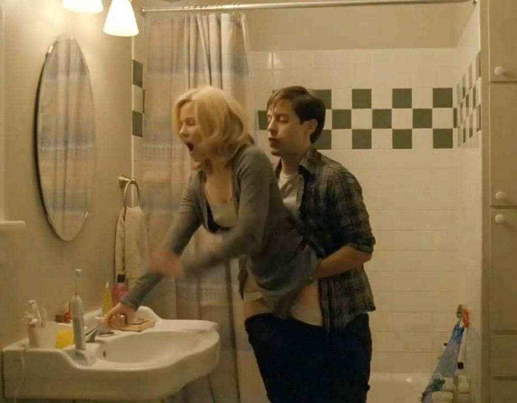 Elizabeth Banks si bacia con un uomo e poi fa sesso con lui in piedi in un bagno. Banks finisce piegata sul lavandino con l’uomo dietro che la penetra. La maggior parte dell’azione è accelerata, ma vediamo in tempo reale quando l’uomo le abbassa i pantaloni e le stringe il sedere nudo.