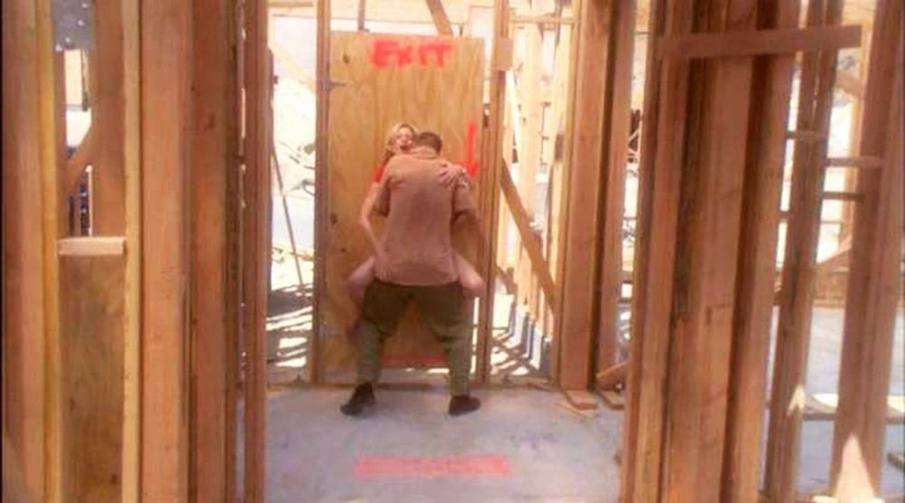 Then Elizabeth Banks is kissing a guy on a construction site. She jumps up and wraps her legs around him as he carries her over to a wall and has sex with her up against it all as she starts to think about what to do about the house.