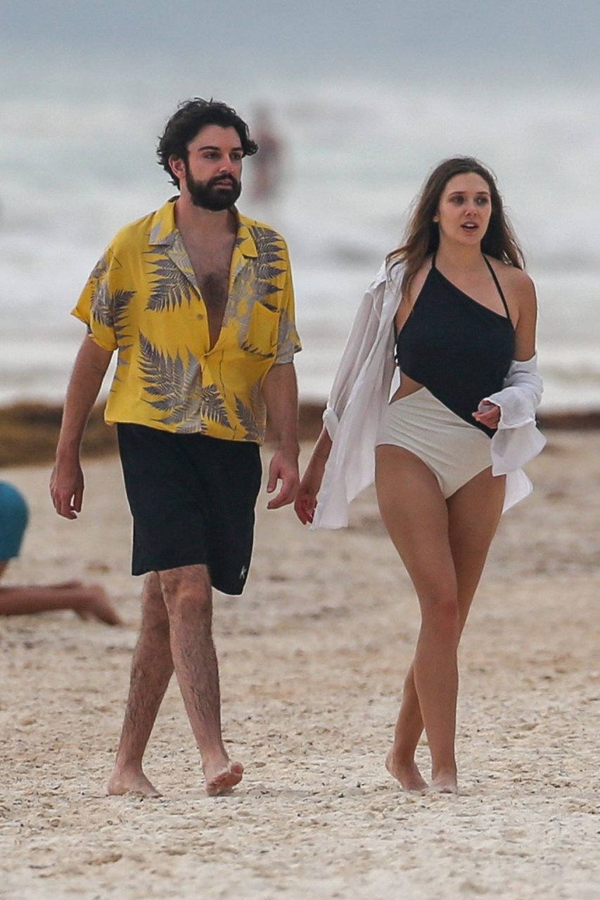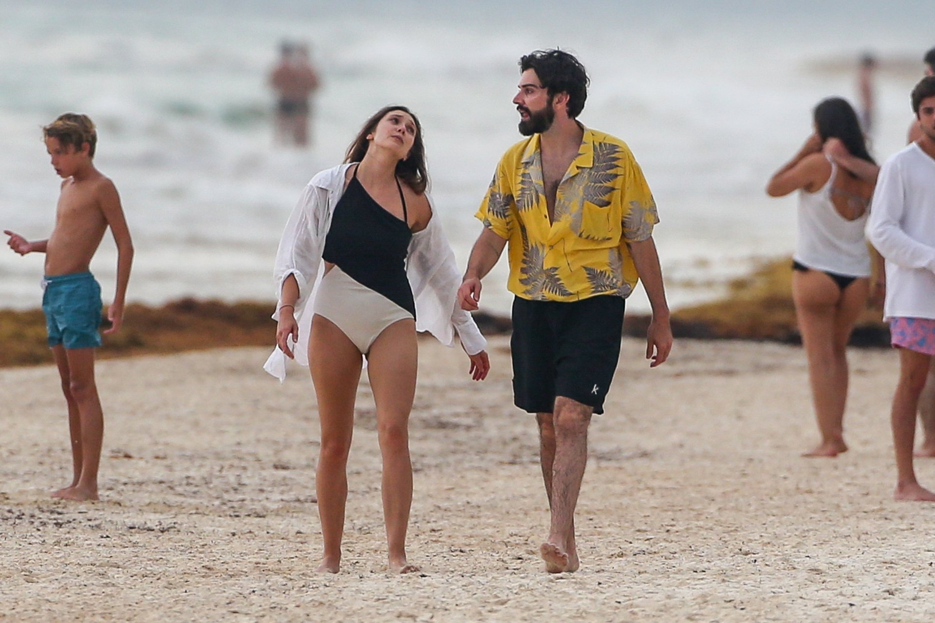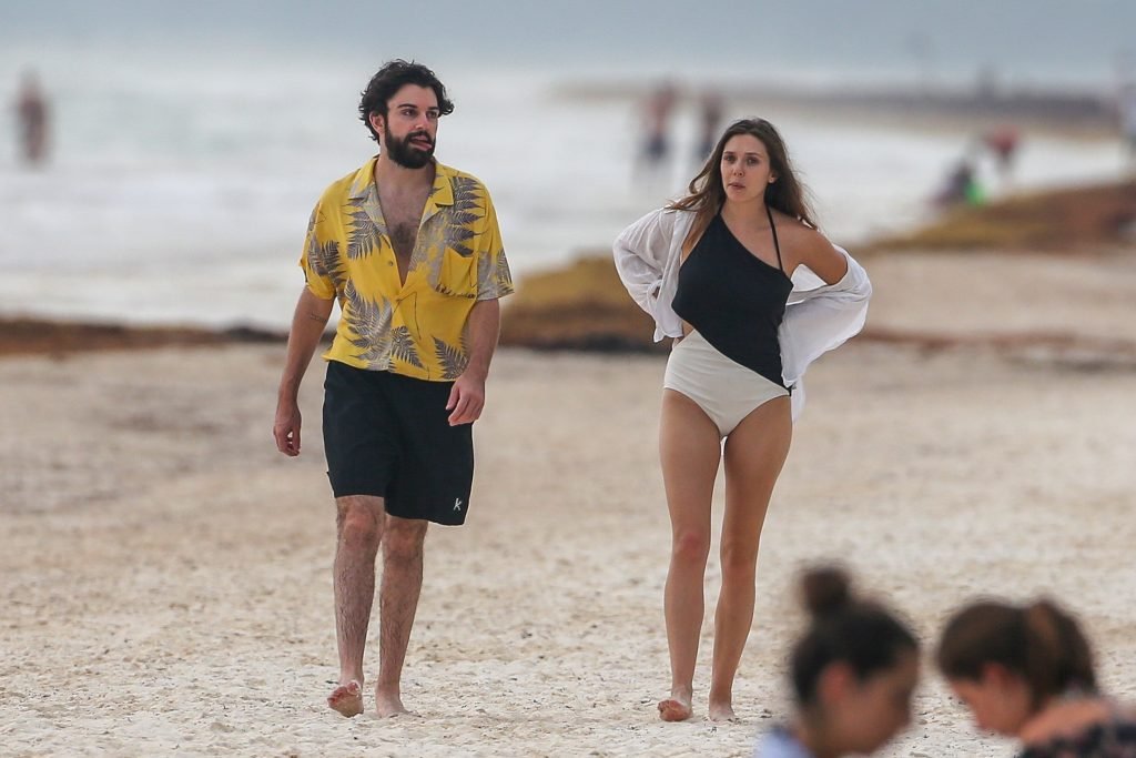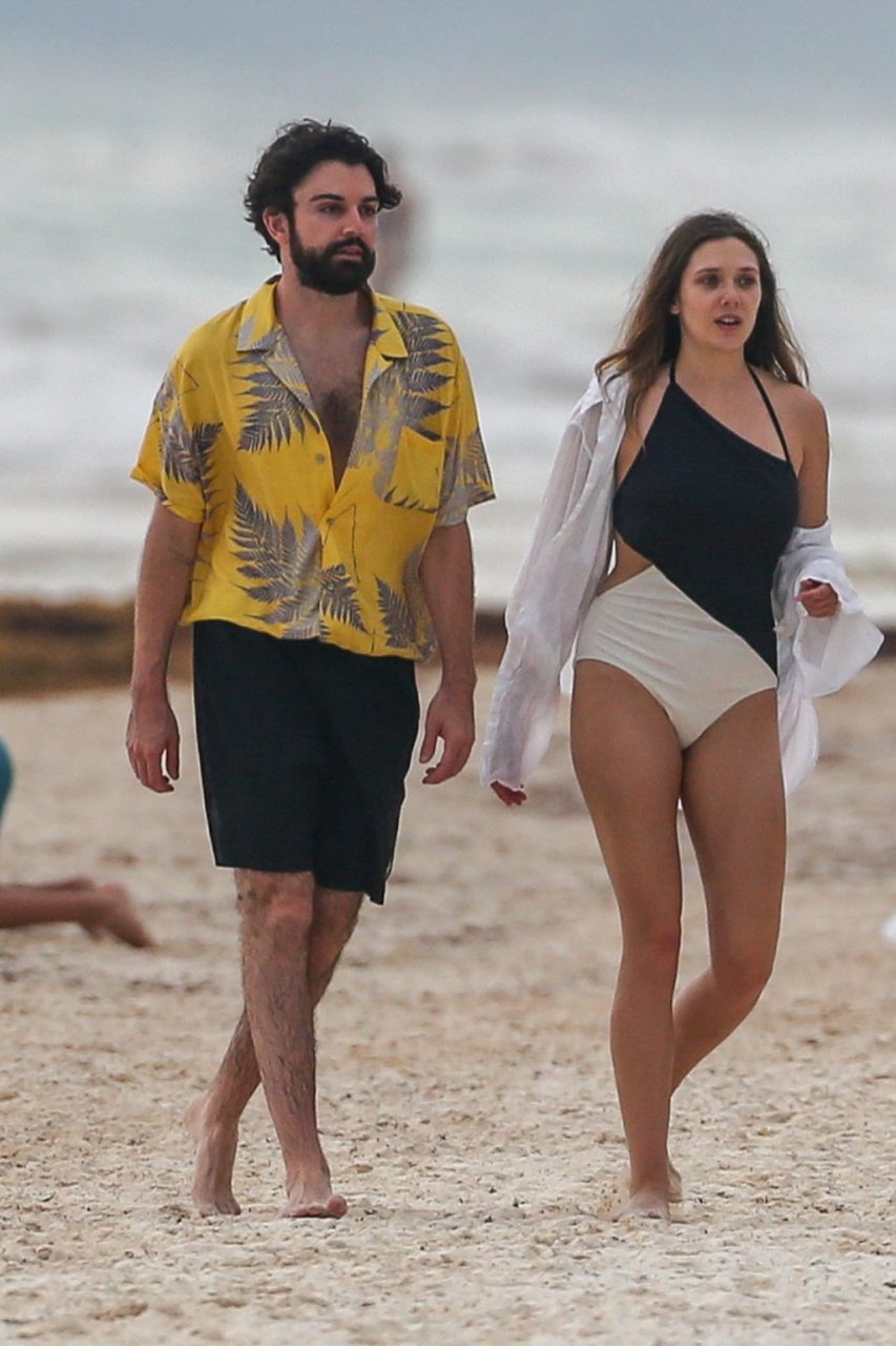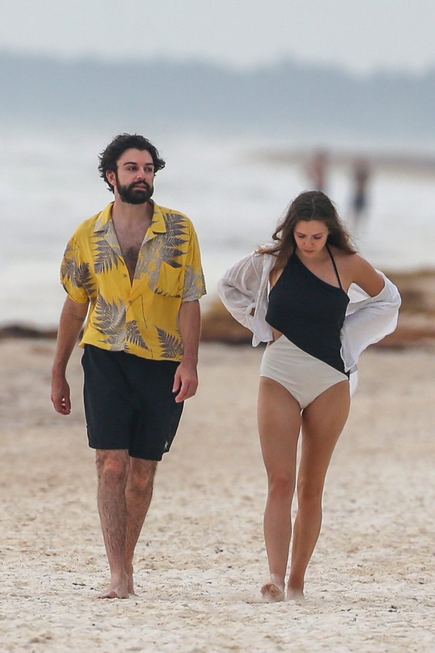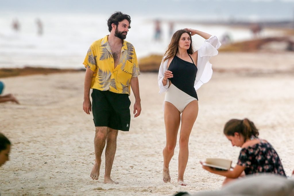 L’attrice americana Elizabeth Olsen (29) è stata vista indossare un costume da bagno bianco e nero con il fidanzato Robbie Arnett sulla spiaggia in Messico, 28/07/2018.