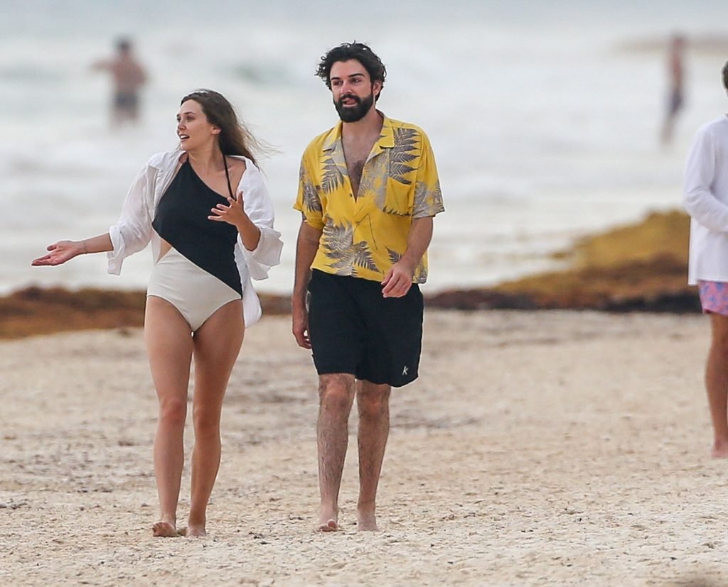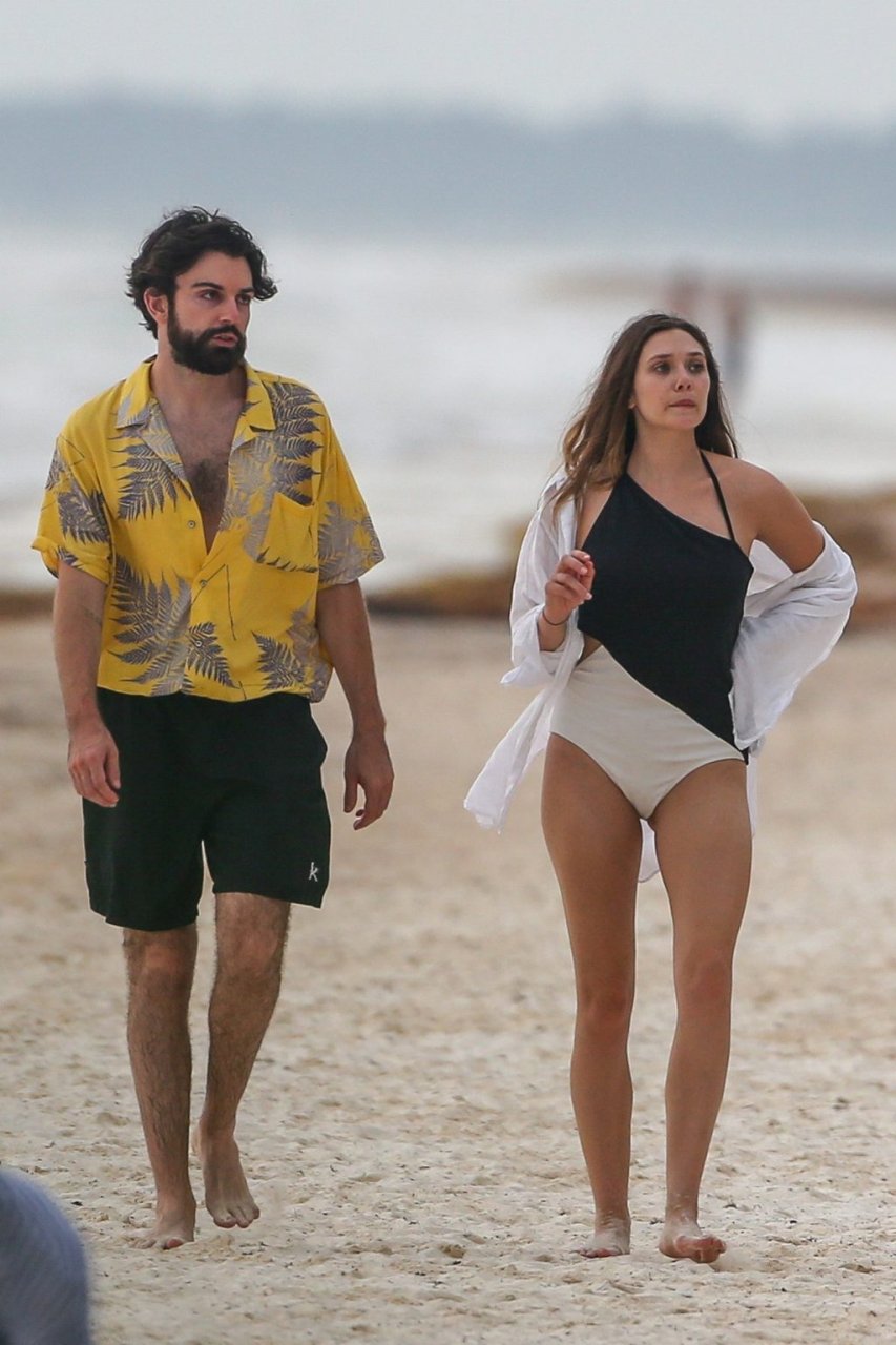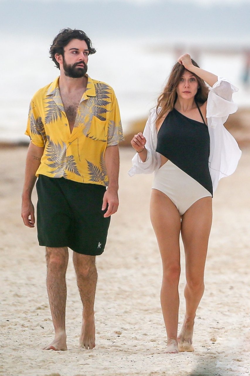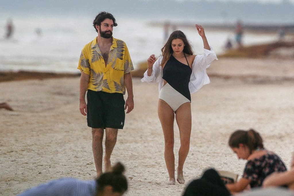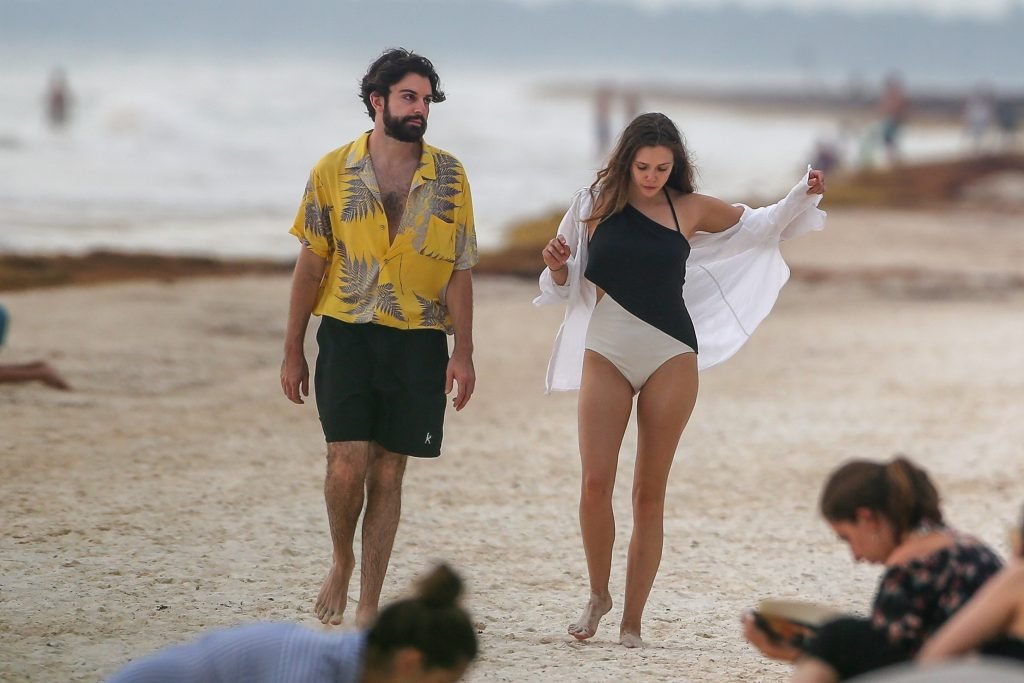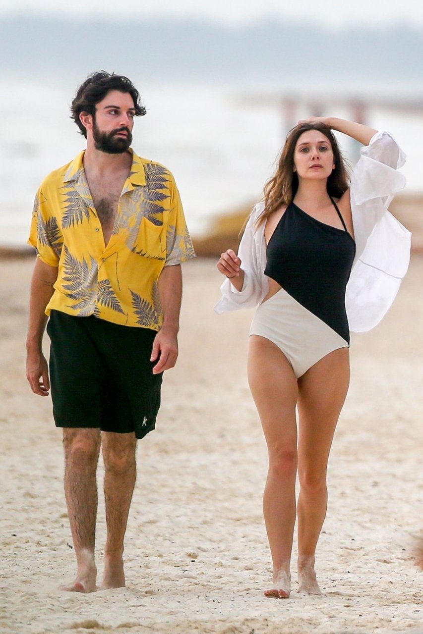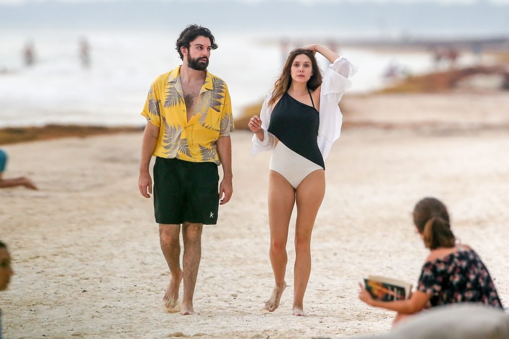 L’attrice americana Elizabeth Olsen (29) è stata vista indossare un costume da bagno bianco e nero con il fidanzato Robbie Arnett sulla spiaggia in Messico, 28/07/2018.