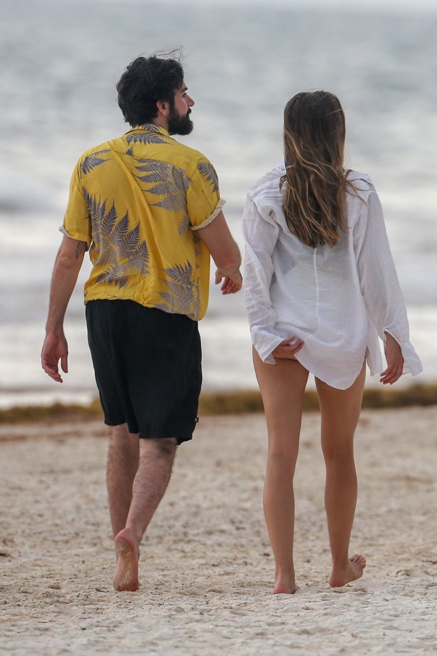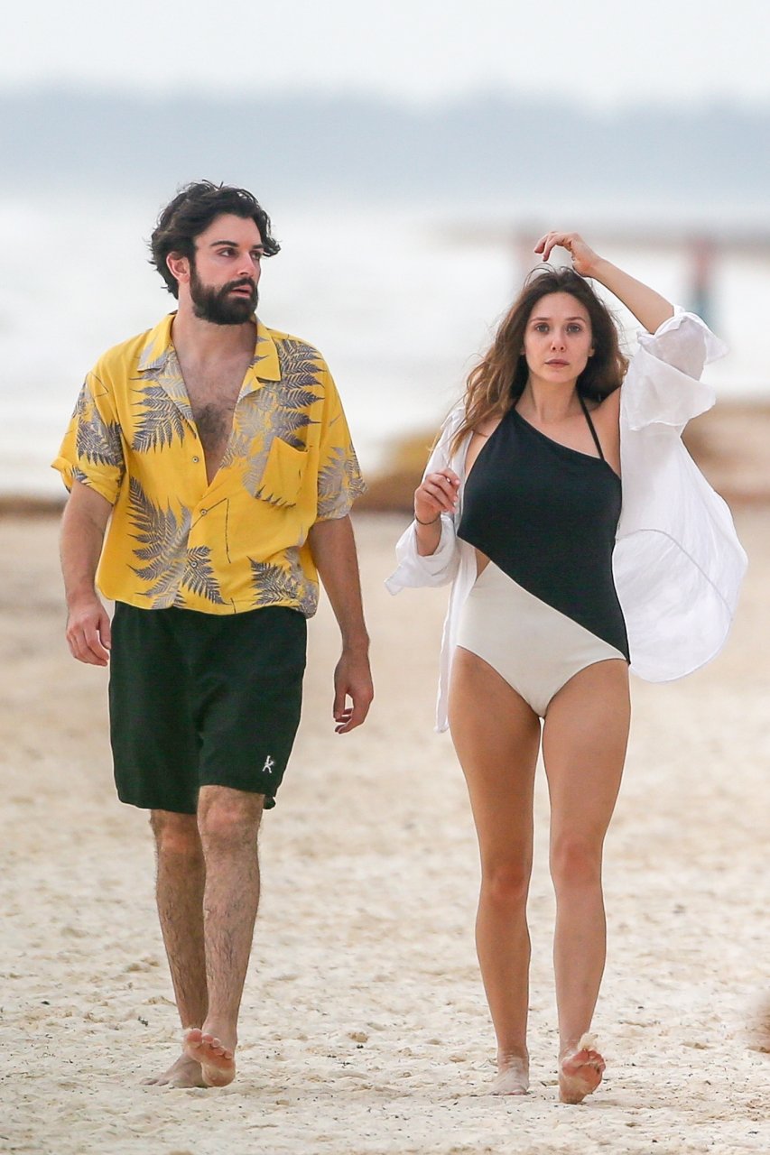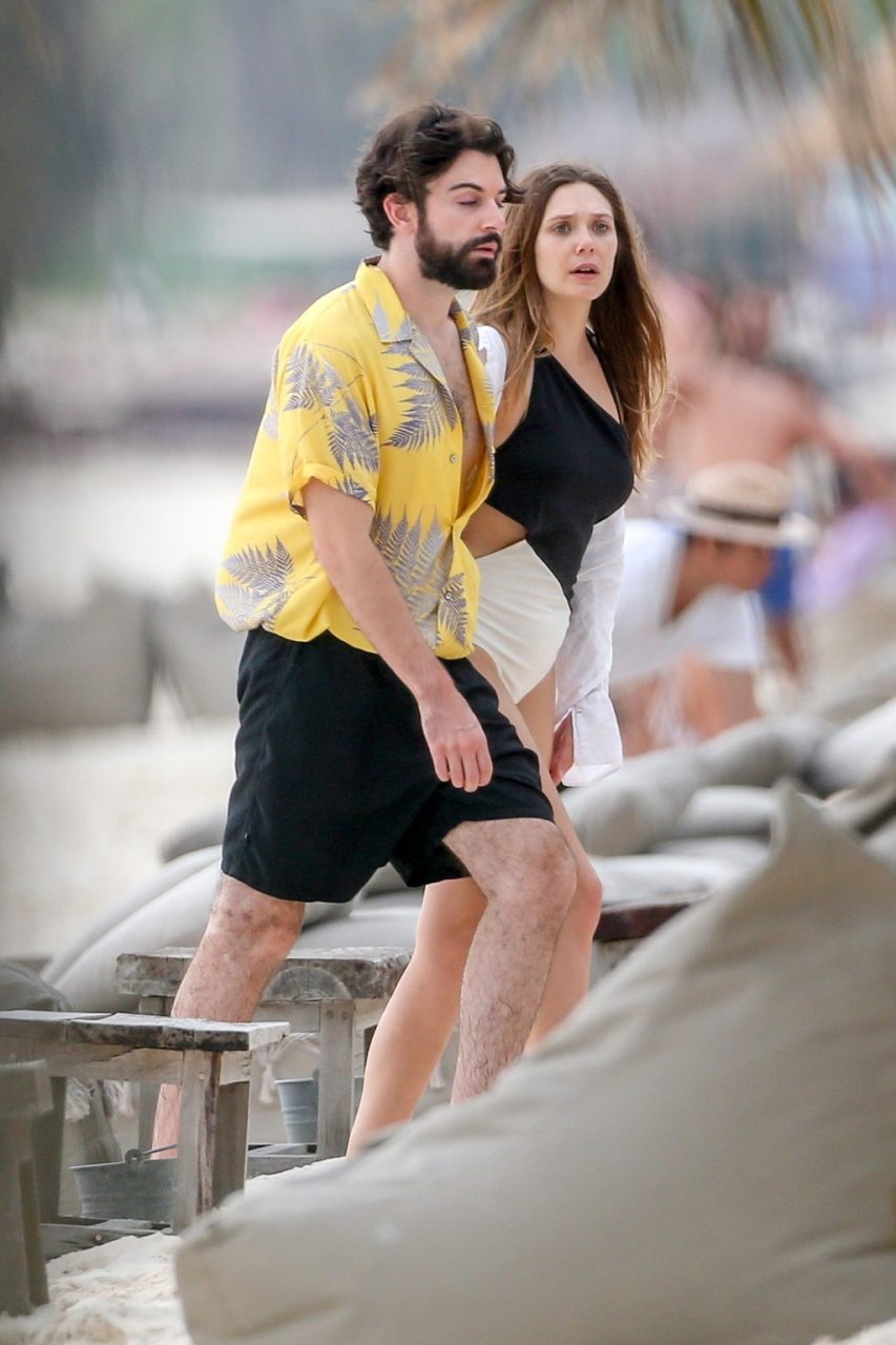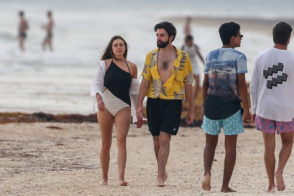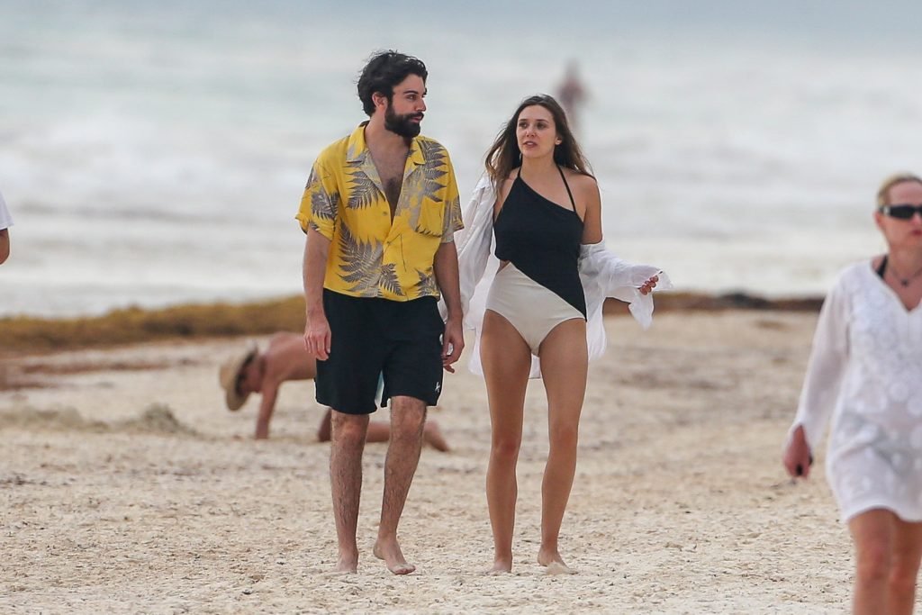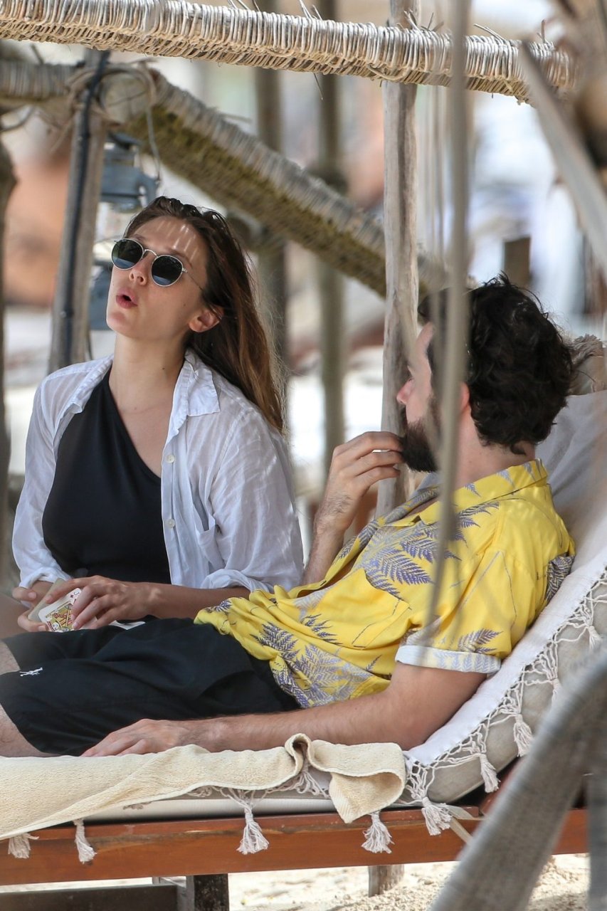 L’attrice americana Elizabeth Olsen (29) è stata vista indossare un costume da bagno bianco e nero con il fidanzato Robbie Arnett sulla spiaggia in Messico, 28/07/2018.