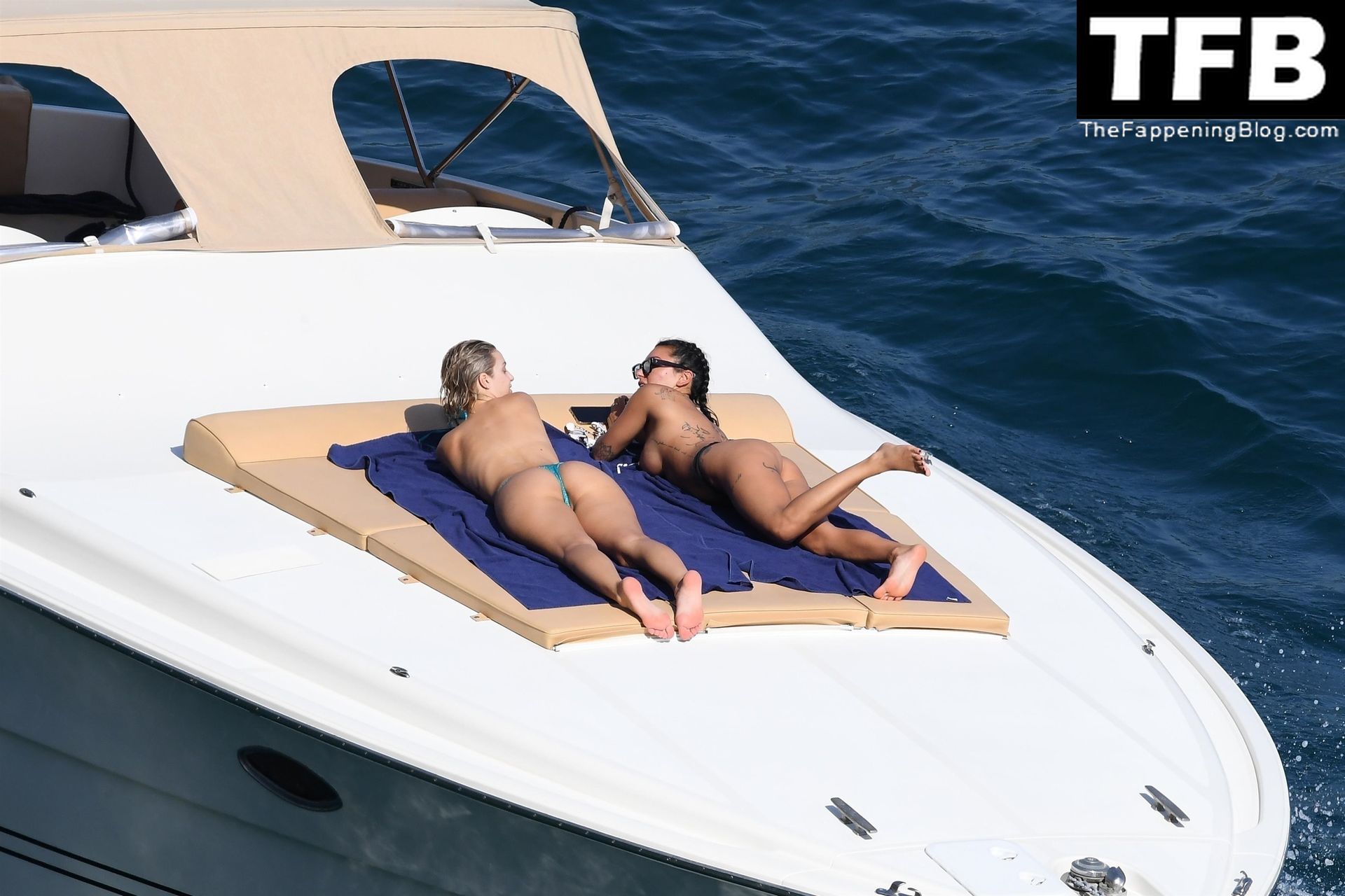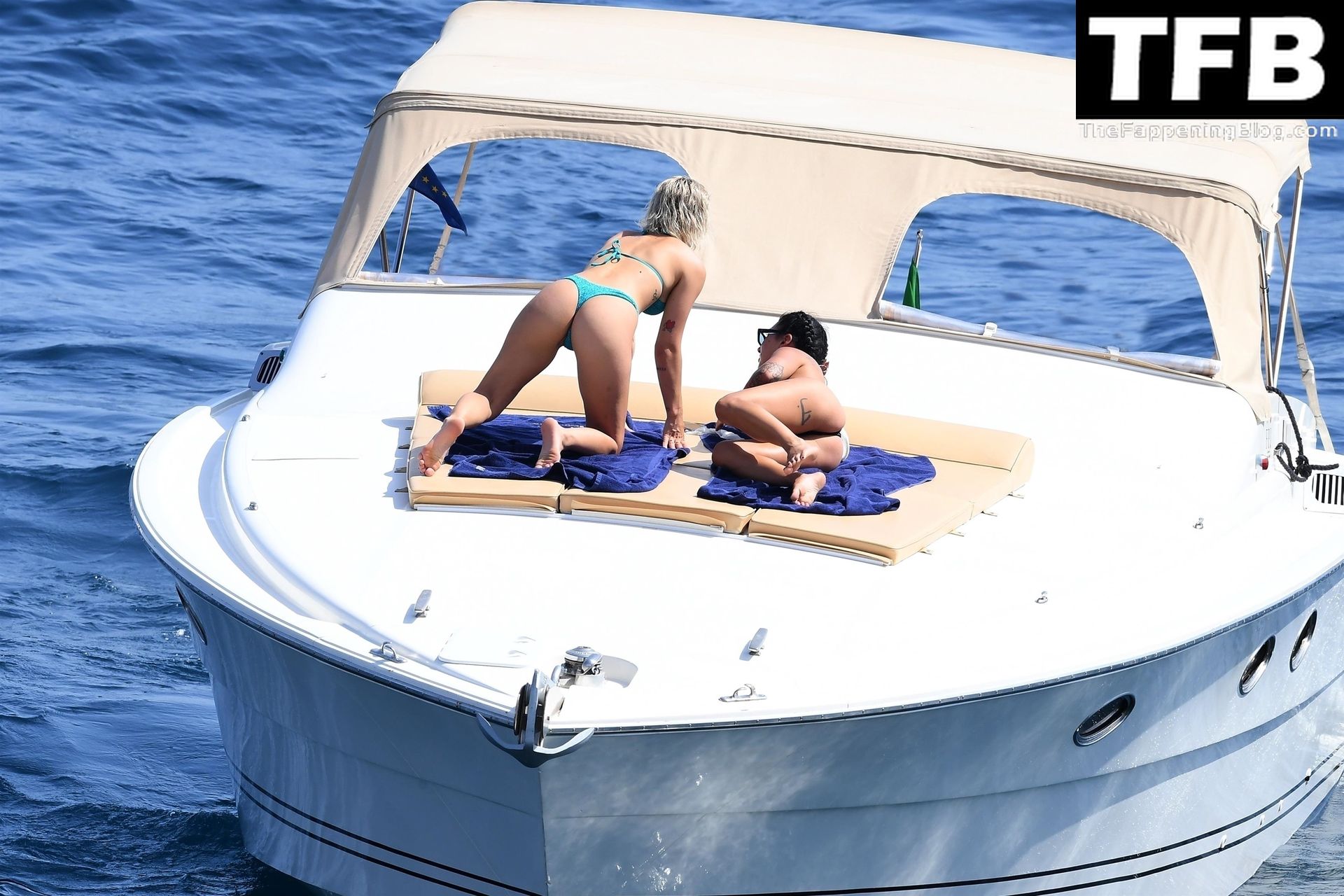 Married At First Sight Ella Ding e Domenica Calarco mostrano la loro bellezza naturale durante una gita in barca mentre sono in vacanza sulla Costiera Amalfitana, 16/08/2022.