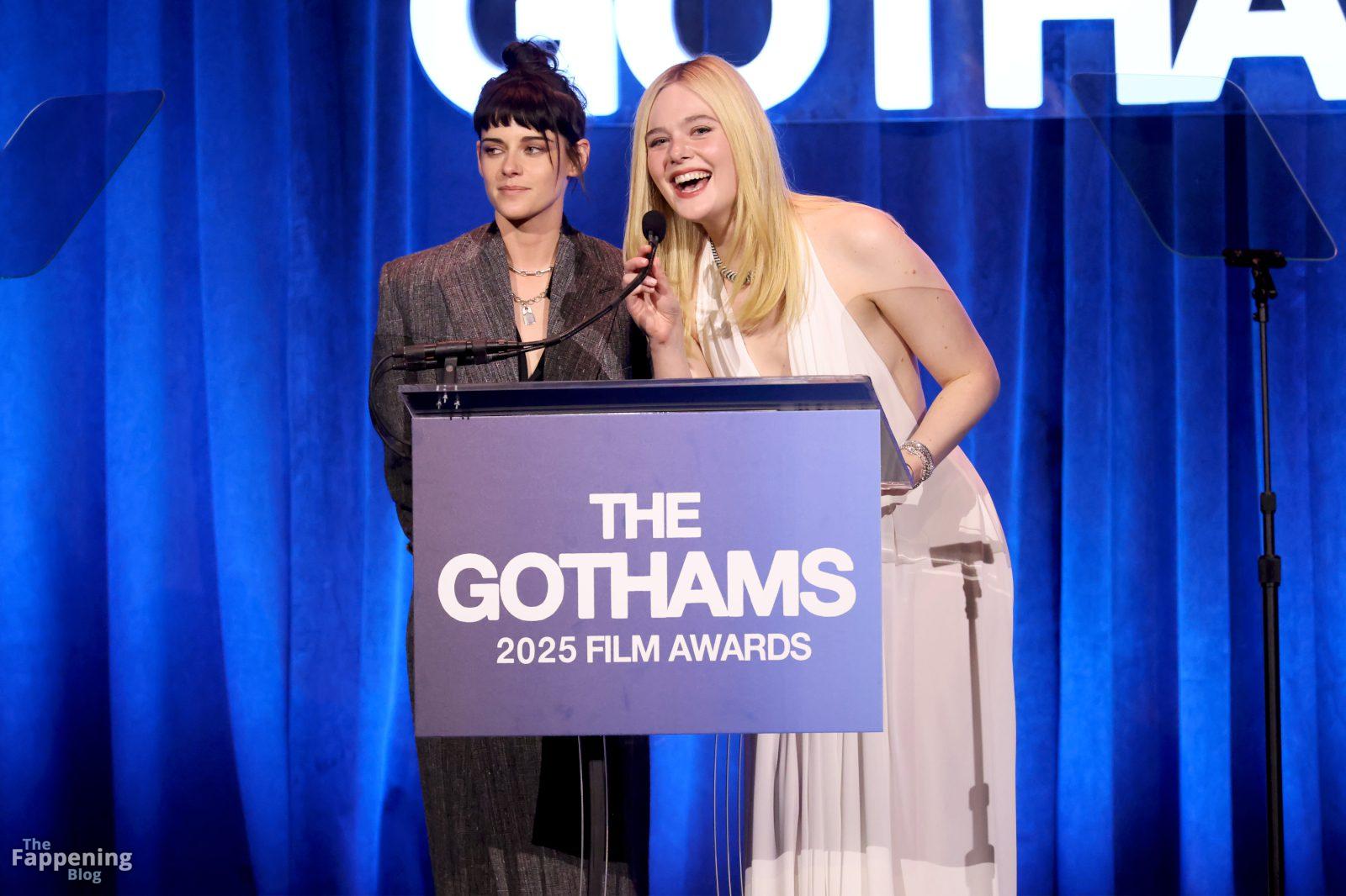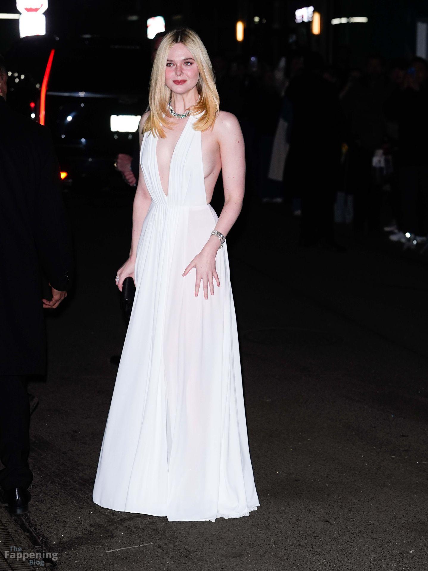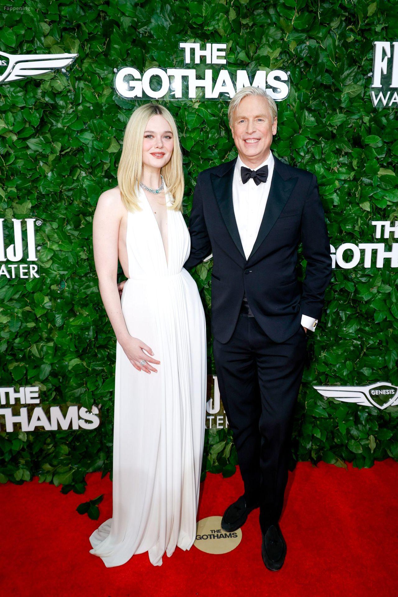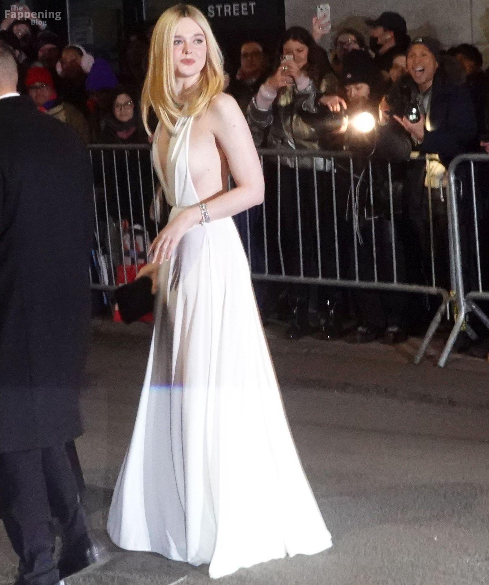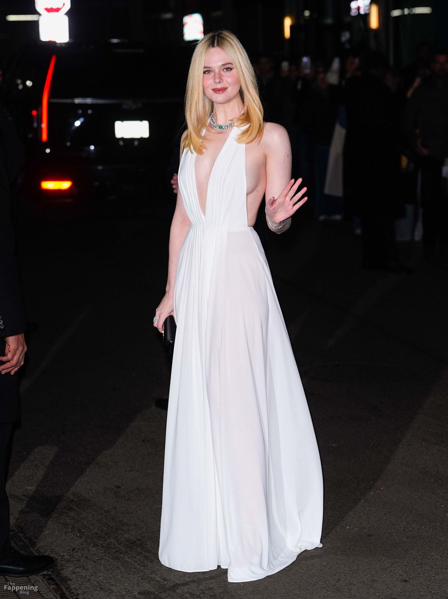 Elle Fanning è apparsa senza reggiseno ai Gotham Awards – scollatura profonda, schiena scoperta e un lampo di sideboob sul red carpet. Poi ha colpito Wall Street sembrando una dea in un abito bianco fluente con collo all’americana.