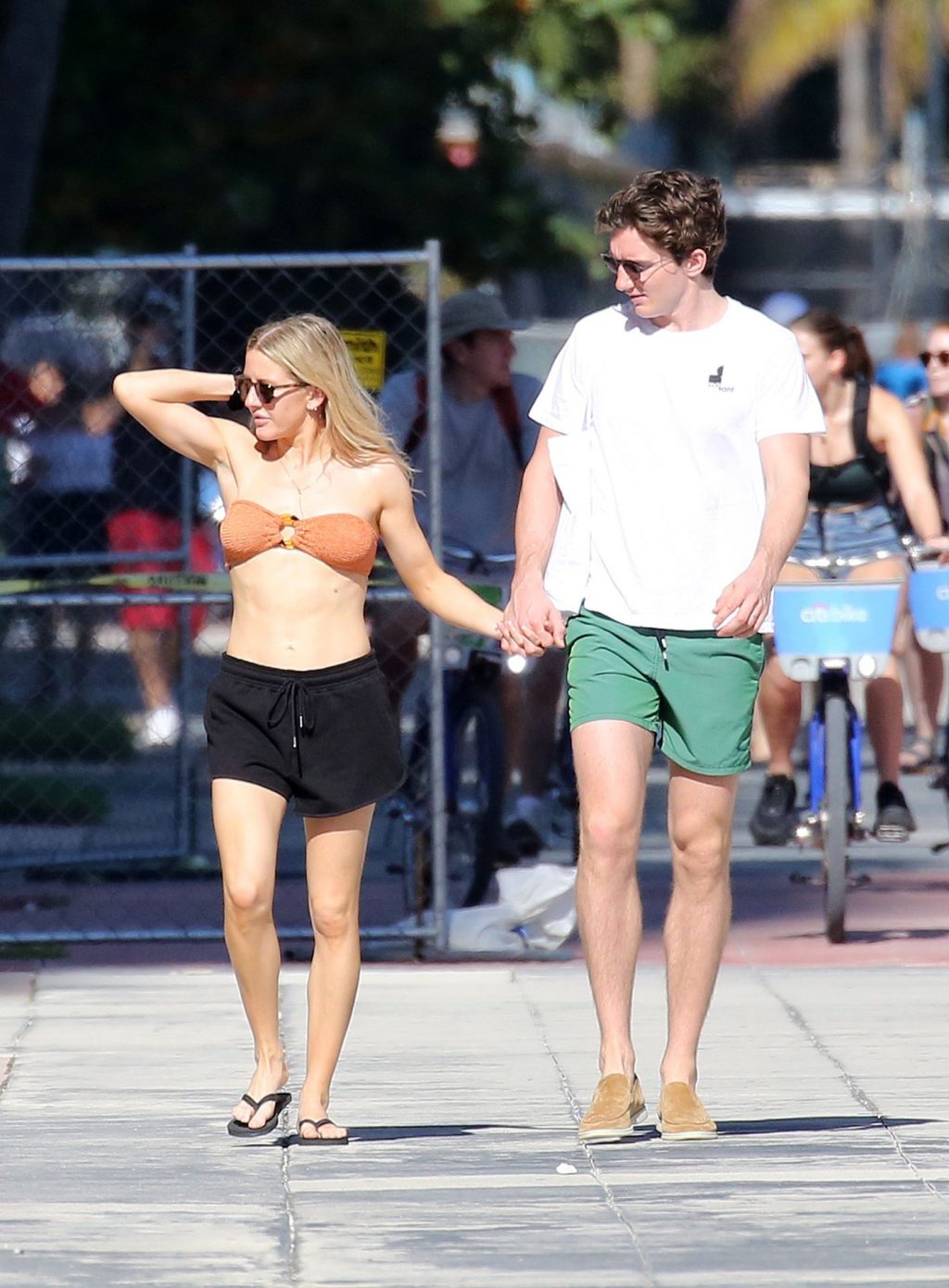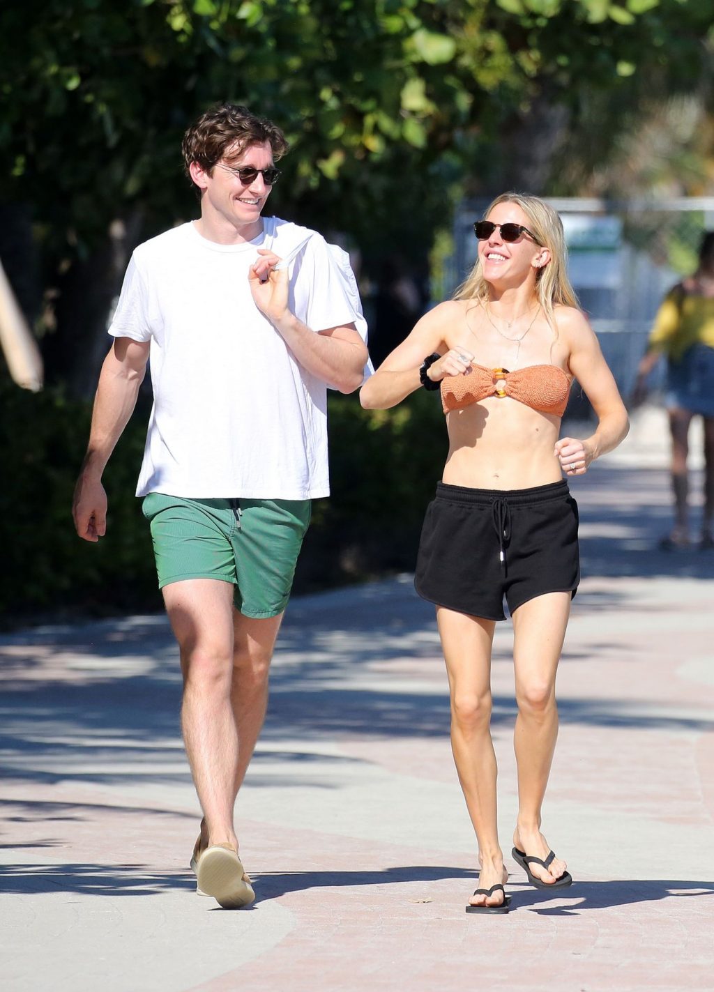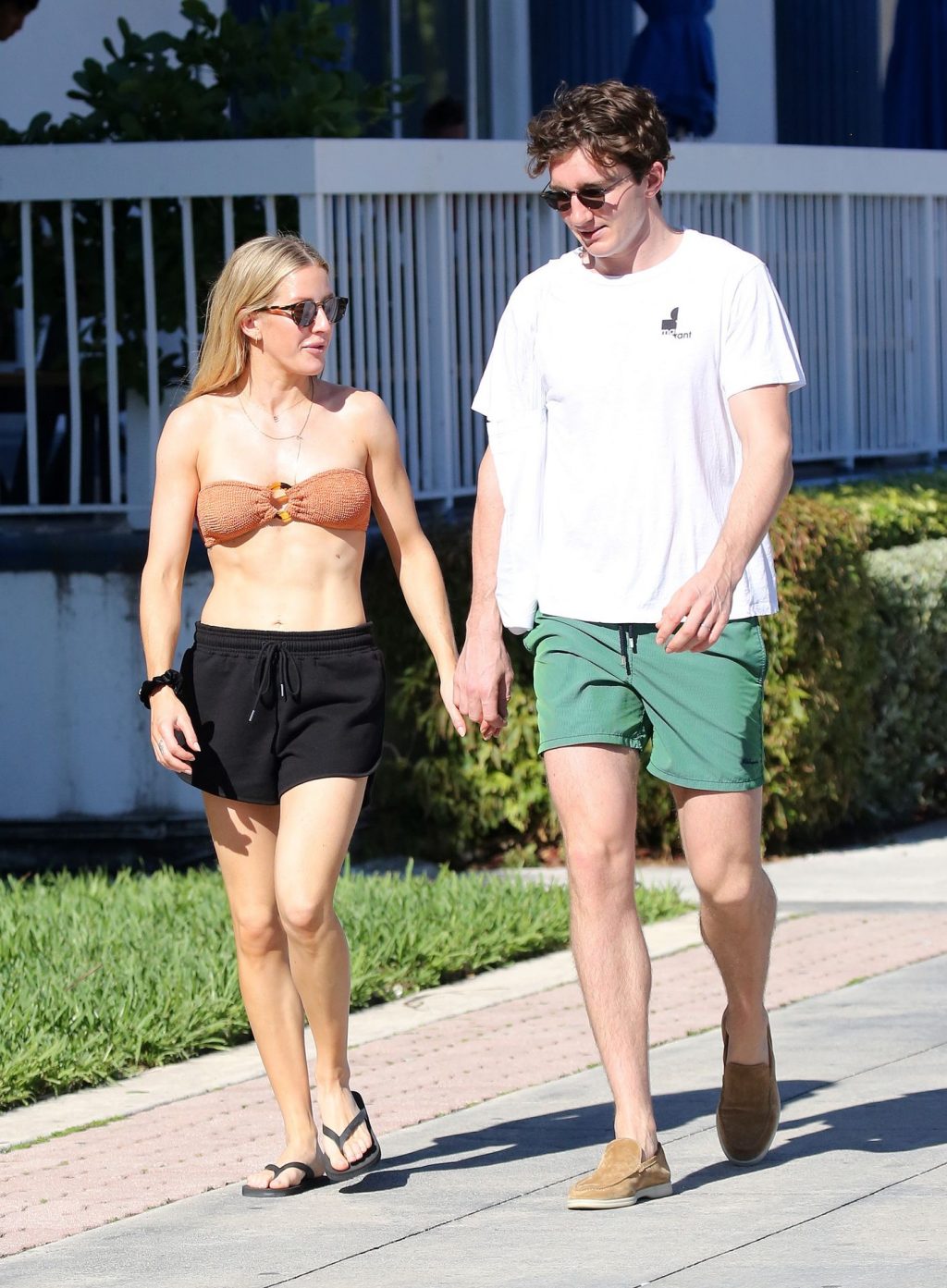 La cantante e star di The Fappening Ellie Goulding indossa un top bikini a fascia mentre passeggia con il marito Caspar Jopling a Miami nel giorno di Capodanno, 01/01/2020.