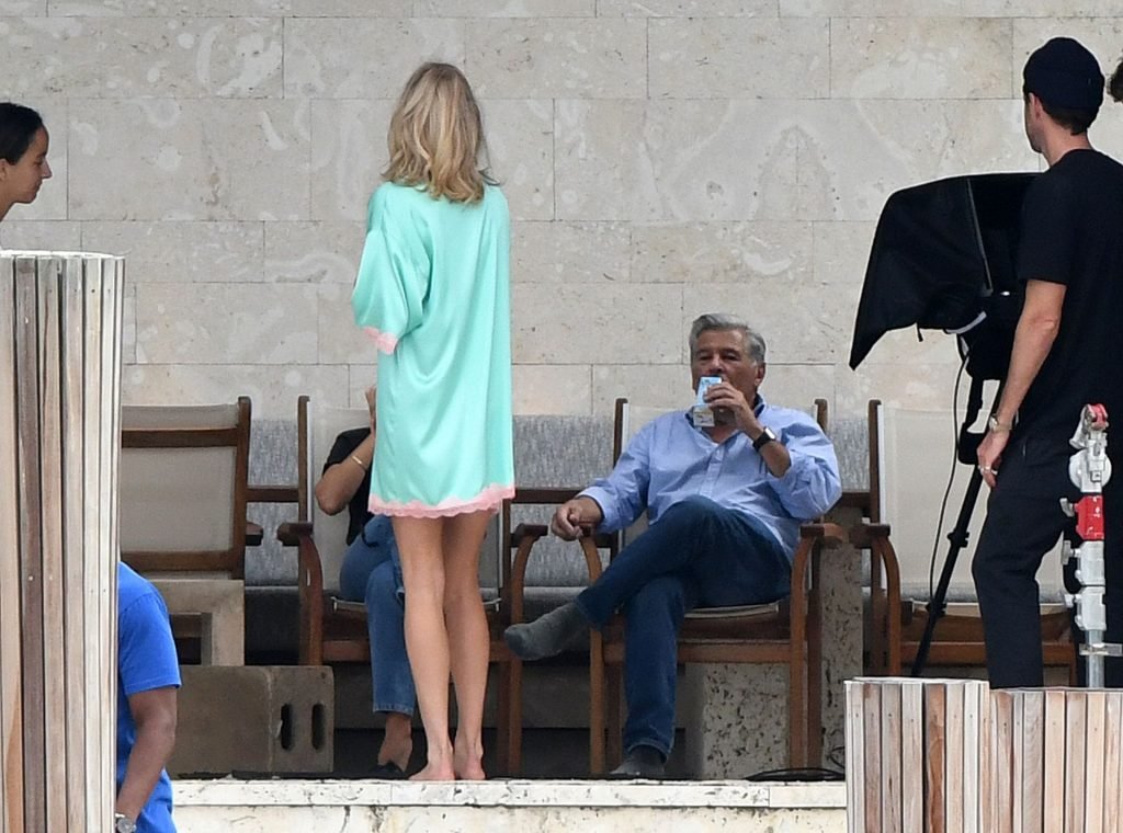 Le bellezze di Victoria’s Secret Elsa Hosk, Barbara Palvin e Alexina Graham posano in lingerie mentre il direttore marketing Ed Razek prende posto in prima fila per il servizio fotografico, 30/11/2018. Razek è recentemente finito sotto accusa per le sue dichiarazioni controverse riguardo alle modelle che sceglie per rappresentare il marchio.